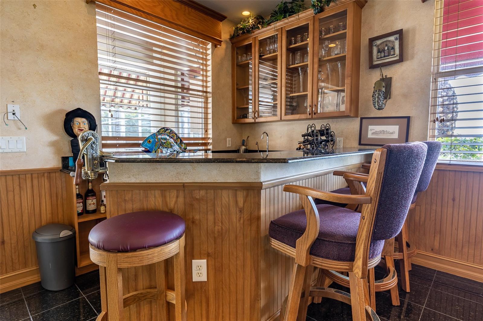 - Built-in Features, Cathedral Ceiling(s), Ceiling Fans(s), Eat-in Kitchen, High Ceilings, Open Floorplan, Primary Bedroom Main Floor, Solid Wood Cabinets, Split Bedroom, Stone Counters, Window Treatments