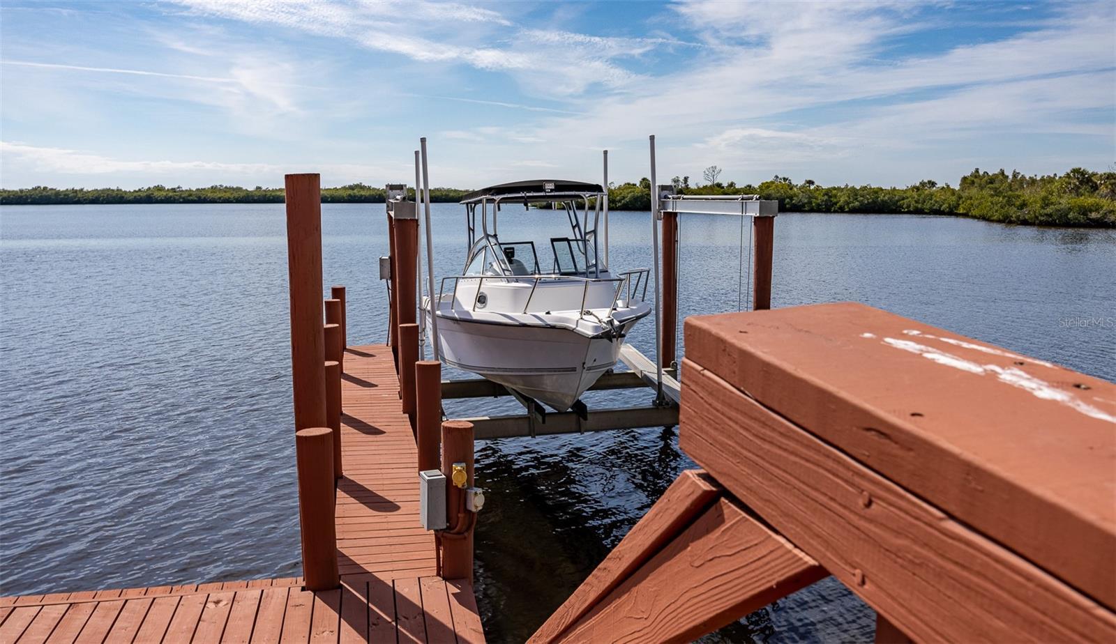 Please view the video tour. This luxury estate home boasts expansive water views. A haven for boaters, it features 116 feet of waterfront, a large wooden dock equipped with water and electricity, and a 16,000-pound boat lift. With direct sailboat access to Charlotte Harbor and the Gulf of Mexico, this half-acre property hosts a custom-built home with a three-car garage, an imposing double door entry, a heated pool with a spa, an outdoor wet bar, and a whole-house propane generator. The gourmet kitchen includes solid wood cabinets, granite countertops, dual stainless steel sinks, an island with a sink and wine fridge, a Thermador six-burner gas stove with a griddle and hood, a double oven, and an oversized KitchenAid stainless refrigerator-freezer. It also has a walk-in pantry and a desk/recipe station. The dinette area features a three-panel aquarium window with views of the lanai and pool. The executive home office is fitted with a built-in desk and bookcase, wood flooring, and blinds. The formal living room