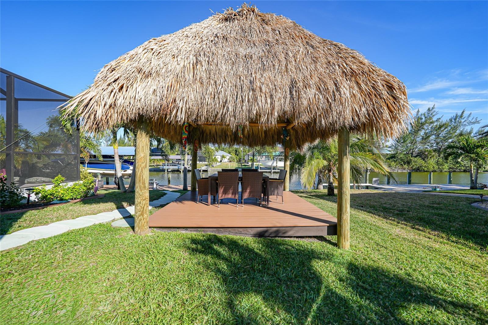 South Gulf Cove welcomes you to the Florida lifestyle, in one of the most desirable areas in Port Charlotte. Checks every box on your search for a slice of paradise. Why build when you can buy this beautiful gulf access waterfront home which was built in 2019. Beautiful kitchen with quartz countertops, slow close wood cabinets, stainless steel appliances, and a large island and a breakfast bar. Slow close wood cabinetry and quartz countertops in both bathrooms. Open/split floorplan. Enjoy the spacious feeling with tall ceilings throughout, tray ceilings in the great room and primary bedroom. Large 24’ x 12’ pool and a spacious lanai. Relax in your own Tiki Hut, built in 2025. Hurricane impact windows and also has electric roll down shutters on the lanai and front entrance, also shutters for all the other windows. 30’ x 8’ composite dock with an 8,000 lb. covered boat lift with electricity and water. Boat is available for purchase separately. Located just a short drive away from pristine beaches, as well as shopping, medical facilities, golf courses, bike paths, and more. “Virtual Tour 1” to view the 3-D Tour and Floor Plan. "Video Tour 2" to view video tour.