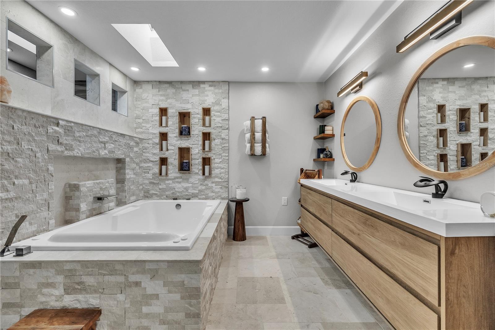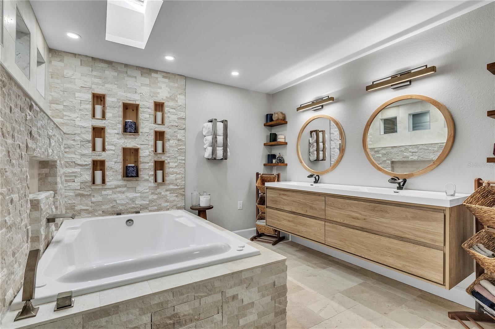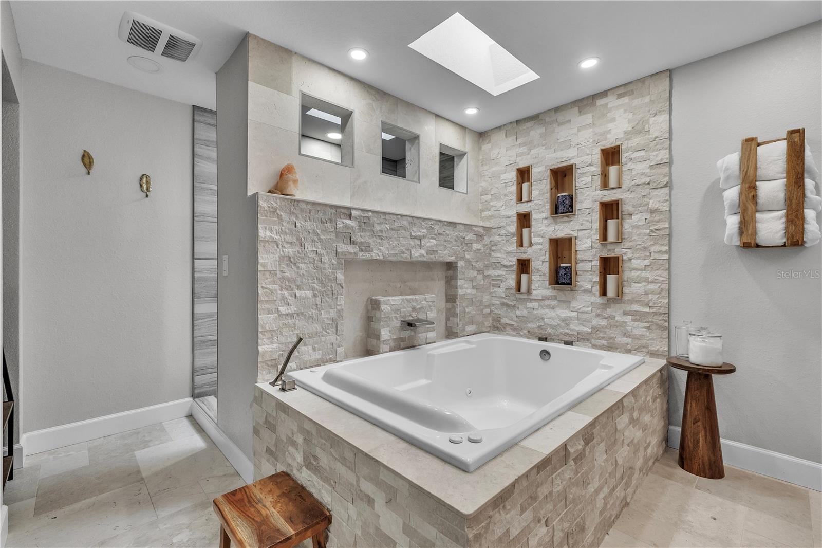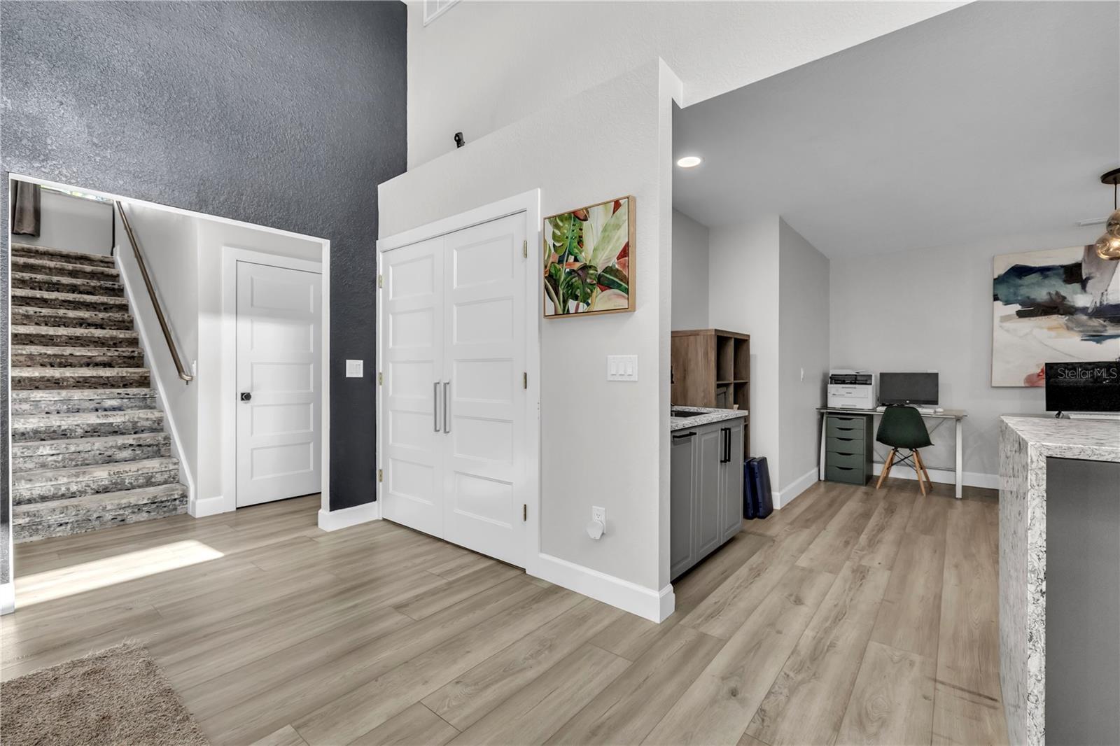 - Built-in Features, Cathedral Ceiling(s), Ceiling Fans(s), Crown Molding, Dry Bar, Eat-in Kitchen, High Ceilings, Open Floorplan, Primary Bedroom Main Floor, Solid Wood Cabinets, Thermostat, Tray Ceiling(s), Walk-In Closet(s), Wet Bar