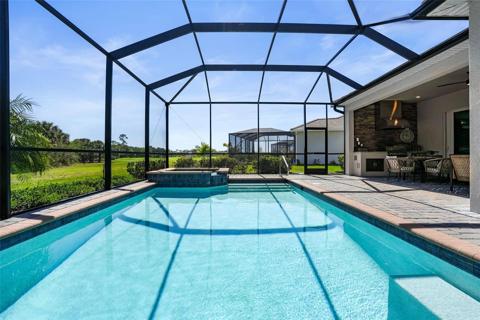 Wake up every day feeling like you’re on vacation in this TURNKEY GOLF HOME WITH POOL AND OUTDOOR KITCHEN in the resort community of Heritage Landing Golf & Country Club. From the moment you walk in, life here feels easy. The popular Maria floor plan gives you that open, airy Florida vibe, perfect for casual mornings with coffee at the island and relaxed evenings with friends drifting between the kitchen, living room, and lanai. The spacious kitchen with shaker cabinets, granite counters, stainless steel appliances, and a huge pantry is the heart of the home, whether you’re hosting a dinner party or grabbing a quick snack after a round of golf. Slide open the doors, and your living space seamlessly extends outside. The heated pool and spa are your private retreat, take an early morning swim, enjoy a lazy afternoon float, or unwind in the hot tub at the touch of a button from your phone. The outdoor kitchen makes grilling and entertaining effortless, so you can spend more time enjoying your guests and less time running in and out of the house. With four bedrooms in a split layout, everyone has their own space. Transform the fourth bedroom into a home office or cozy den, perfect for working remotely, watching the game, or sneaking away with a good book. Three full baths mean no one is waiting to get ready, whether you’re hosting family for the holidays or friends for a golf getaway. But life at Heritage Landing is about so much more than the house, it’s about the lifestyle. As a primary golf member, you’ll enjoy priority tee times and low cart fees on a beautifully designed course just minutes from your front door. After your round, head to the new clubhouse, where you can meet neighbors for lunch, enjoy a drink at the bar, or join a card game in the dedicated card room. Your days can be as active or relaxed as you want with resort-level amenities: • Multiple satellite pools for lounging or socializing • Tennis, pickleball, and bocce ball for friendly competition • A lively Tiki Bar where you can grab a bite and a drink in a casual setting • A 24/7 fitness center with classes available to keep you moving on your schedule • Saunas and a spa to unwind, recharge, and truly pamper yourself This home is truly move-in ready, beautifully finished, thoughtfully designed, and set in a community where every day feels special. If you’ve been dreaming of a Florida resort lifestyle where you can play golf in the morning, relax by the pool in the afternoon, and meet friends at the clubhouse in the evening, this is it. Welcome home to Heritage Landing.