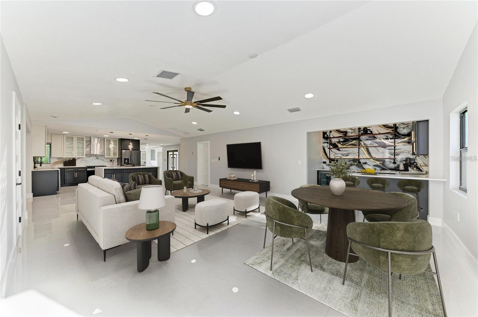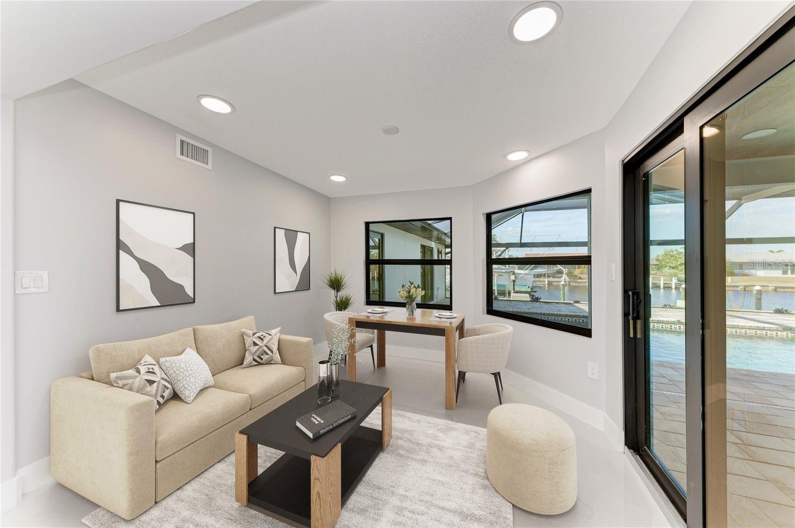 One or more photo(s) has been virtually staged. EXPERIENCE LUXURY WATERFRONT LIVING AT ITS FINEST in this meticulously renovated 4 bedroom, 4.5 bathroom residence offering nearly 3,400 sq. ft. of refined interiors and exceptional outdoor amenities. Boasting DIRECT SAILBOAT ACCESS TO CHARLOTTE HARBOR WITH NO BRIDGES, this property features 100 FEET OF DEEP-WATER FRONTAGE, an impressive 80-FOOT COMPOSITE DOCK, a 24,000 LB. BOAT LIFT, and a BRAND-NEW SEAWALL WITH AN EXPANDED CAP—an exceptional waterfront package ideal for serious boaters seeking a premier Gulf-access lifestyle. The home has undergone a comprehensive transformation, featuring a NEW ROOF, NEW POOL CAGE, 6-FT EXPANDED POOL DECK WITH PAVERS, FULL IMPACT WINDOWS AND DOORS, NEW EXTERIOR AND INTERIOR PAINT, and ALL NEW LANDSCAPING WITH IRRIGATION. The HEATED SALTWATER POOL is ideally sized for laps and everyday enjoyment, complemented by multiple access points from the primary suite and two guest bedrooms. An exterior entrance leads to a generously sized storage room, along with an oversized TWO-CAR GARAGE WITH BRAND-NEW EPOXY FLOORING. Inside, the property showcases a FULLY REIMAGINED MODERN INTERIOR with designer finishes throughout. A standout addition is the CUSTOM FULL WET BAR WITH BUILT-IN WINE COOLER located just off the main living area, creating a sophisticated focal point for entertaining and elevating the home’s social appeal. The home has been COMPLETELY REWIRED, with the ELECTRICAL PANEL RELOCATED INSIDE, and features UPDATED PLUMBING, DUCTWORK, AND TWO NEW HVAC SYSTEMS for optimal comfort and efficiency. EVERY LIGHT FIXTURE, FAN, OUTLET, AND SWITCH HAS BEEN REPLACED, ensuring a true turn-key experience. The STUNNING GOURMET KITCHEN serves as the heart of the home, offering a MASSIVE QUARTZ ISLAND, PREMIUM CABINETRY WITH GOLD HARDWARE, and BRAND-NEW STAINLESS-STEEL APPLIANCES. A PASS-THROUGH WINDOW overlooks the pool and outdoor entertaining space, further enhancing the home’s indoor-outdoor synergy. The open concept living area includes a SPACIOUS CAFÉ-STYLE DINING NOOK WITH VIEWS OF THE POOL, creating an inviting setting for both casual dining and elegant gatherings. Each bedroom offers NEW CUSTOM BUILT-IN CLOSETS, while all bathrooms have been FULLY REMODELED WITH CONTEMPORARY FINISHES, blending luxury and functionality. The PRIMARY SUITE provides private pool access and a SPA-INSPIRED BATH, delivering a peaceful retreat. Importantly, the home DID NOT EXPERIENCE FLOODING, offering added peace of mind for waterfront buyers. With an ideal location and THOUGHTFUL, HIGH-QUALITY UPGRADES FROM FOUNDATION TO FINISHES, this home embodies the best of PORT CHARLOTTE LUXURY WATERFRONT LIVING. Move-in ready, exceptionally designed, and tailored for both boating enthusiasts and style-conscious buyers, this property is a rare offering that combines CONVENIENCE, CRAFTSMANSHIP, AND COASTAL ELEGANCE.