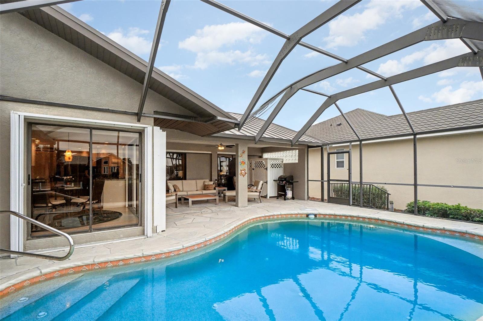 Seize the ultimate boater’s paradise: only 18 lots from Charlotte Harbor with lightning-fast, deep-water sailboat access and tranquil intersecting canal vistas. This exquisite 3-bedroom, 3-bath, 2,538 sq ft pool home boasts an 80-ft seawall, 10,000 lb boat lift, and two concrete docks (one with water & electric)—your gateway to open water in mere minutes. Step inside an open-concept masterpiece where formal living, dining, and a separate family room flow seamlessly to the lanai and shimmering canal views. The gourmet kitchen dazzles with granite counters, a spacious breakfast bar, Slate stainless steel appliances, and a cozy waterfront nook. Soaring cathedral ceilings crown the family room, complete with a built-in granite wet bar. Luxurious Primary Suite: Private lanai access, dual walk-in closets, and a spa-like bath featuring dual vanities, a makeup station, jetted tub, and separate shower. The split floor plan offers two guest suites with walk-in closets; one bath conveniently opens to the pool. A third half-bath serves the main living area, plus a versatile bonus room ideal for a home office or hobby space. Outdoor Oasis: Relax in the heated in-ground pool with in-floor cleaning system, framed by lush tropical landscaping. The stamped concrete circular driveway and copper metal roof elevate curb appeal, while hurricane shutters, central vacuum, security system, and irrigation ensure peace of mind. Rare 3-Car Oversized Garage + abundant storage, including an 11x7 exterior connected shed for all your water toys. A large interior laundry room with folding station rounds out this move-in-ready gem. Schedule your private tour today—your waterfront dream awaits!