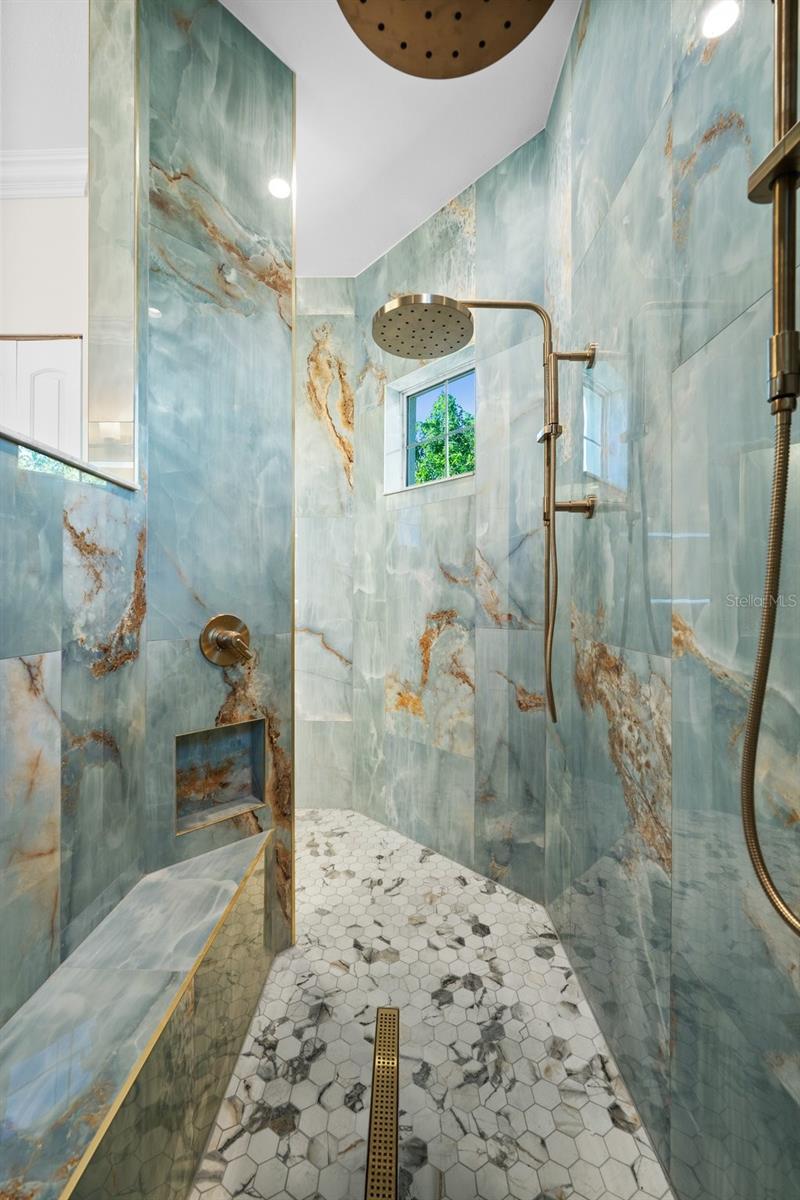 - Ceiling Fans(s), Coffered Ceiling(s), Crown Molding, High Ceilings, Kitchen/Family Room Combo, Living Room/Dining Room Combo, Open Floorplan, Primary Bedroom Main Floor, Split Bedroom, Stone Counters, Thermostat, Tray Ceiling(s), Walk-In Closet(s)