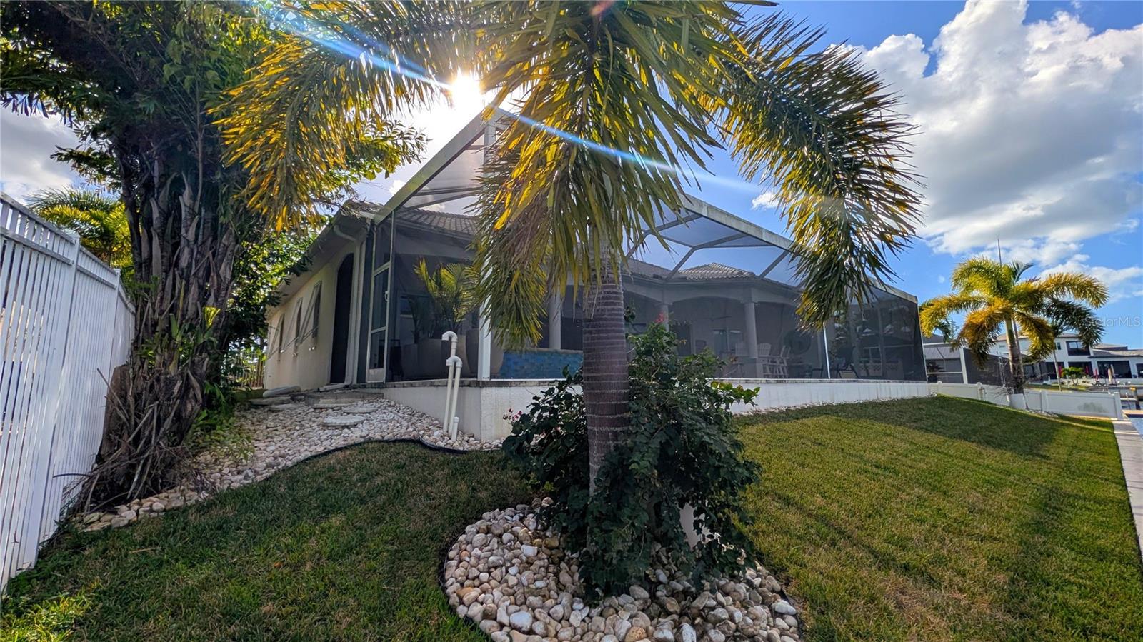 This remarkable direct Gulf-access waterfront residence that seamlessly blends tranquil coastal living, strong investment potential, and everyday luxury. Currently operating as a rental property, this home presents an outstanding opportunity for investors, second-home buyers, or full-time residents seeking both lifestyle and income flexibility in one of Cape Coral’s most desirable boating locations. From the moment you step inside, the breathtaking water view is complemented by a stunning interior showcasing custom design elements, including elegant coffered ceilings and thoughtfully curated architectural details throughout. The home is perfectly positioned overlooking a serene lake that opens directly to the Gulf with no bridges, creating a stunning focal point that sets the tone for the entire experience. Natural light fills the space, enhancing the home’s soft aqua coastal palette that flows effortlessly from room to room, creating a calm, peaceful, and welcoming atmosphere throughout. Built in 2018, this thoughtfully designed 3-bedroom plus den, 3-bath residence offers 2,526 square feet of living space with a split-bedroom floor plan ideal for privacy, guests, and extended stays. Architectural details such as tray and coffered ceilings, french doors, built-in cabinetry, a wet bar, and expansive tile flooring elevate the home’s refined yet relaxed coastal style. The kitchen is designed for both entertaining and everyday living, featuring a large island, double ovens, wine cooler, reverse osmosis system, ample cabinetry, and seamless flow into the main living and dining areas—all positioned to keep the water view front and center. The outdoor living space is truly where this home shines. Step out onto the expansive screened lanai and experience a peaceful retreat designed for relaxation and entertaining alike. The heated saltwater pool and integrated spa are enhanced by a reverse osmosis system, providing exceptionally clean, high-quality water—an uncommon and highly desirable feature. The outdoor kitchen, generous covered seating areas, and tranquil water backdrop create a resort-style setting that guests and owners alike will appreciate. The primary suite offers private lanai access, calming water views, and a spa-inspired bath complete with dual sinks, a soaking tub, and multiple shower heads. Additional guest bedrooms and a flexible den provide versatility for rental use, home office space, or extended family visits. No HOA, this property includes a 3-car garage, paver driveway, impact-resistant windows and doors, and strong curb appeal. With direct Gulf access, no bridges, and a peaceful lake setting, this home offers a rare combination of privacy, boating convenience, and strong market demand. Whether you choose to continue its use as a rental, enjoy it as a seasonal retreat, or make it your full-time waterfront sanctuary, this property delivers tranquility, functionality, and long-term value—all in one exceptional Cape Coral address.