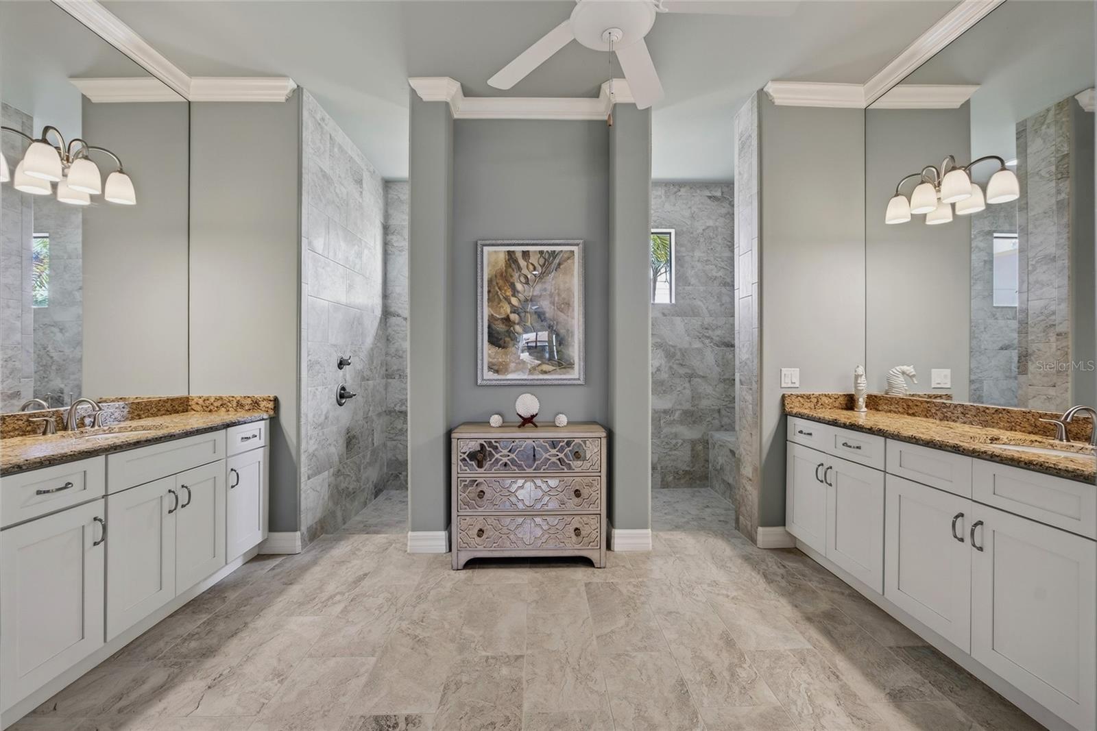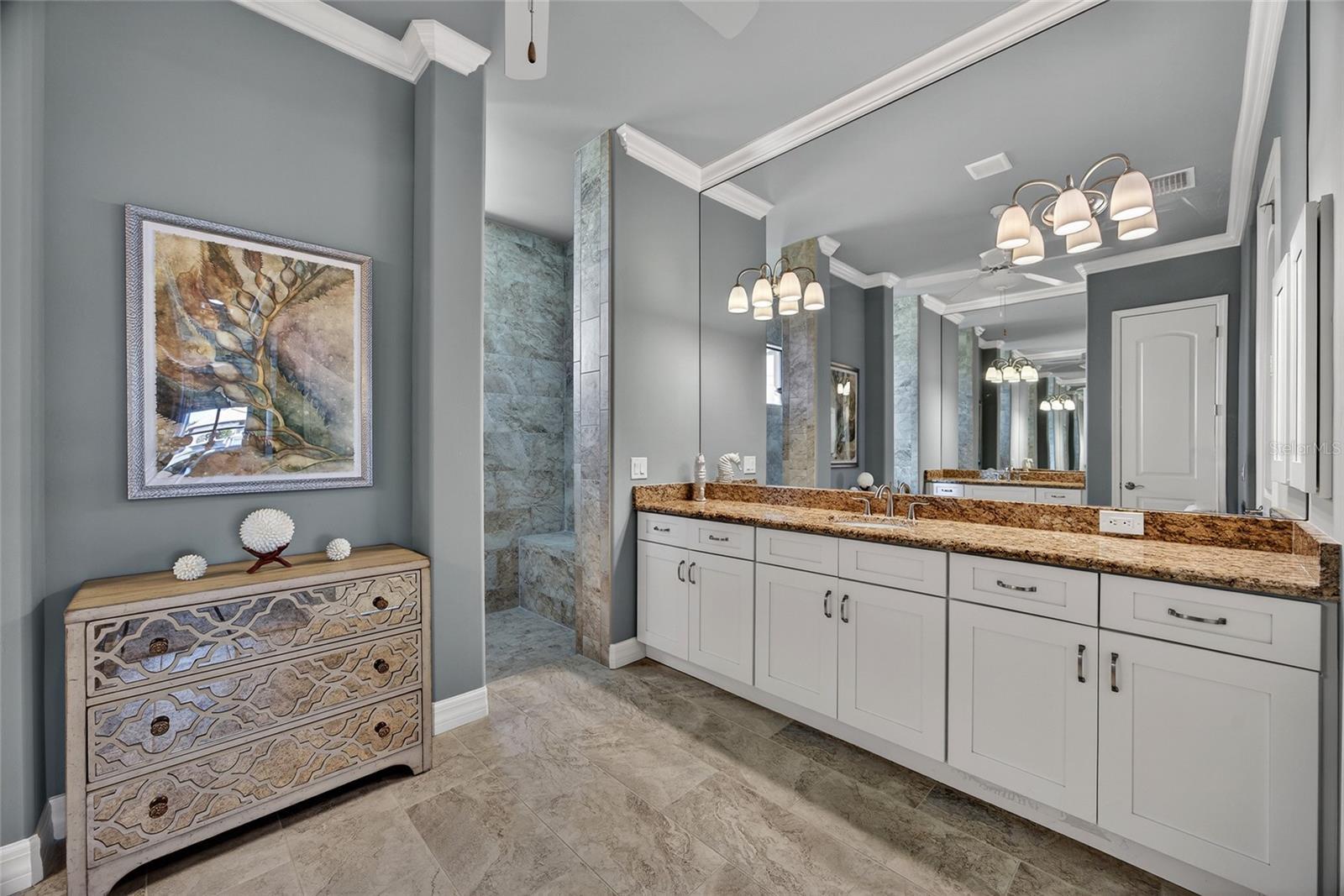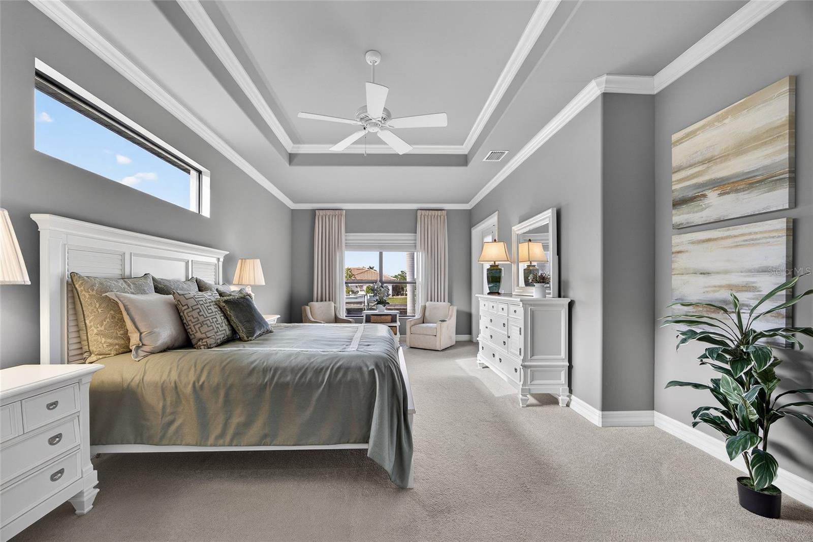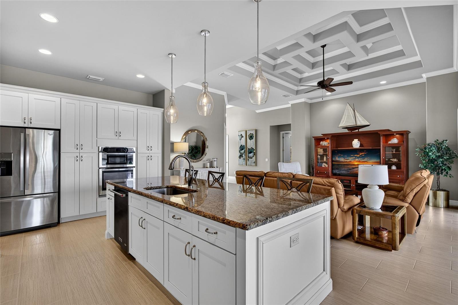 - Ceiling Fans(s), Coffered Ceiling(s), Crown Molding, High Ceilings, Living Room/Dining Room Combo, Open Floorplan, Primary Bedroom Main Floor, Split Bedroom, Stone Counters, Thermostat, Tray Ceiling(s), Walk-In Closet(s)