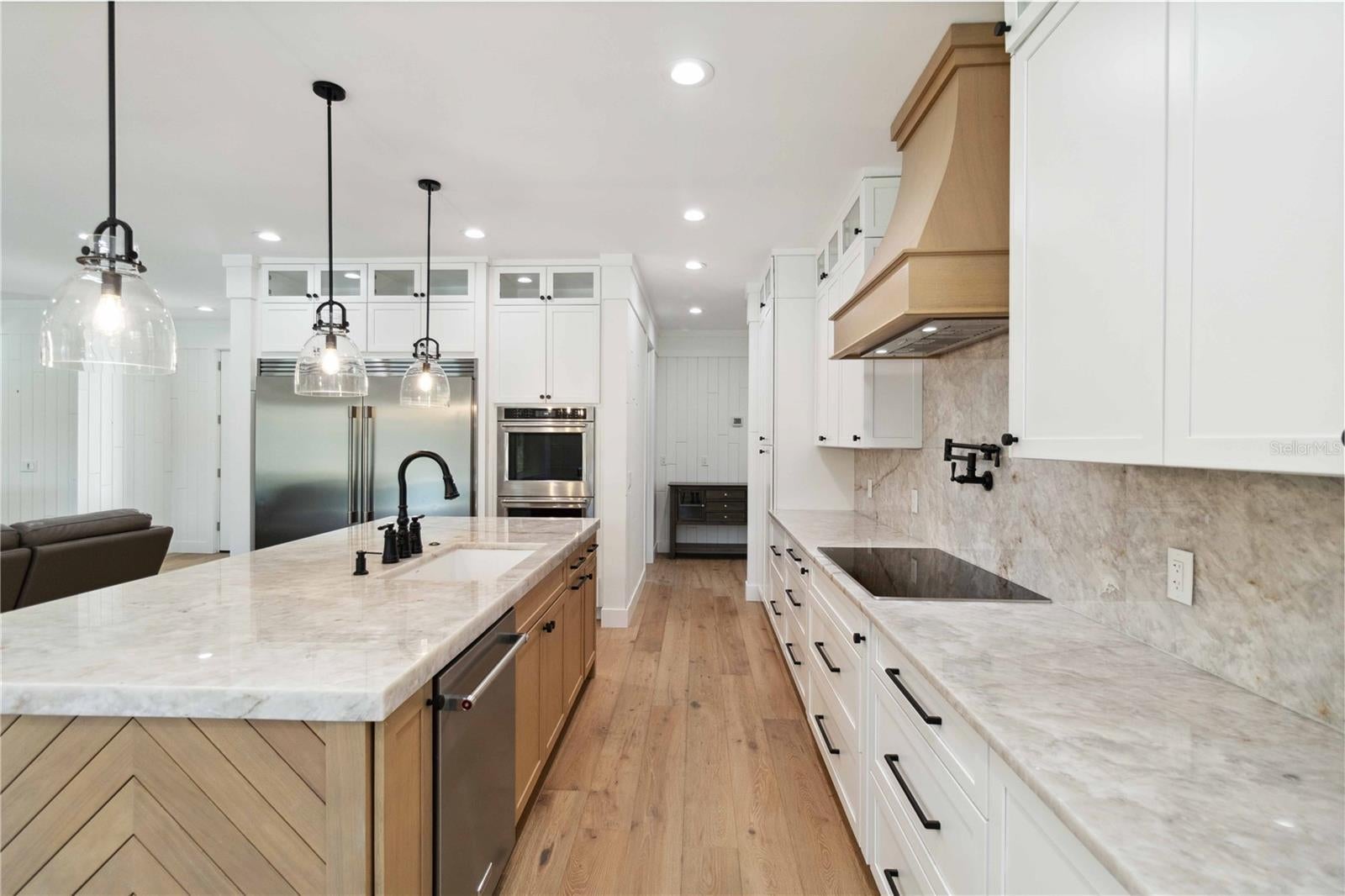 Dreaming of luxury, space, and privacy—all just minutes from the city? This one of a kind 2024 custom built farmhouse and guest house has a total of 4 bedrooms, 3 full bathrooms, 2 full size kitchens, XXL pool, and oversized 6 car garage meticulously designed for the most discerning tastes & over engineered with no expense spared. Custom interior features include: European white oak wire brushed wood floors, double stacked crown molding, full extension window & door casings, large baseboards, cypress tongue & groove walls & ceilings, 8’ solid core interior doors, knotty alder barn door doors, designer plumbing & light fixtures, walnut ceiling fans, level 5 drywall (silky smooth), fully dimmable lighting, quartzite countertops & backsplashes, knurled cabinet hardware, and soundproofing throughout. The gourmet kitchen features floor to ceiling cabinetry, white oak radius hood and island, cristallo quartzite countertops with full height backsplash, 2x convection ovens, 36” induction cooktop, 66” fridge/freezer column set, under-the-counter 30” microwave, pot filler, and ample storage. The secondary kitchen features floor to ceiling cabinetry, Taj Mahal quartzite countertops with full height backsplash, 36” built-in refrigerator, ice maker, 30” microwave, induction range with convection oven, and leathered marble floors. Spa-inspired bathrooms feature imported marble on the floors, walls, ceilings, wainscoting, floor to ceiling ½” thick shower glass with transom for steam showers, standalone soaking tub, and custom vanities. The laundry room features floor to ceiling cabinetry, 30” sink, ample storage, comfort height commercial washer & dryer, and quartzite countertop with full height backsplash. The bedrooms feature oak wood or marble flooring, cypress tongue & groove accent walls, and custom closet built-in. Exterior features include, resort-style lanai with cypress tongue & groove ceiling, marble deck, and 22’x35’ heated saltwater pool, 7’x35’ sundeck under a 30’x41’ panoramic pool cage. Every detail exudes relaxation and entertainment. Additional features include: detached guest house with private entrance and attached 4 car garage, 5,000 SqFt paver driveway/walkway/RV parking area with 50 amp receptacle, water & septic hook up, impact rated low-e insulated windows & doors, custom carriage house R-19 insulated garage doors, Kinetico commercial whole house RO system, spray foam insulation throughout, insulated interior walls, vertical board and batten on all exterior walls, 2x custom HVAC systems with whole house fresh air and dehumidification systems, 400 amp electrical service, solid poured concrete envelope with R-25 insulation on both sides, marine grade light fixtures, solid non-vented soffit, custom half round gutters, and cypress tongue & groove lanai & entry ceilings. Need storage for your toys? This property features a 19’x22’ garage with 10’ ceiling height and additional 28’x38’ garage with 21’ ceiling height, providing a total of 1,662 SqFt dedicated garage space. This property is not just a home—it’s a lifestyle. Come experience the peace, luxury, and space you’ve been dreaming of. Welcome to your own slice of Florida paradise!
