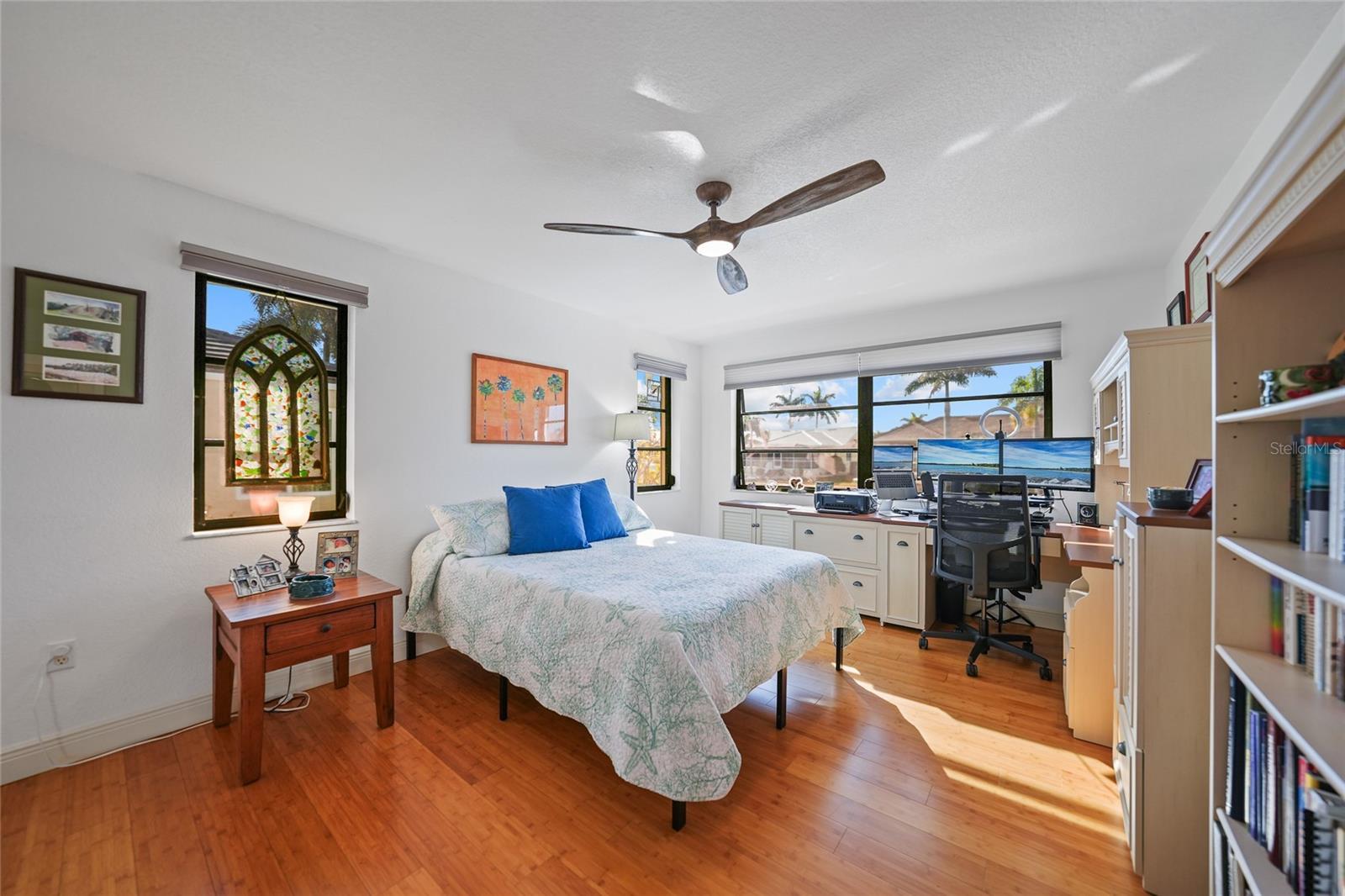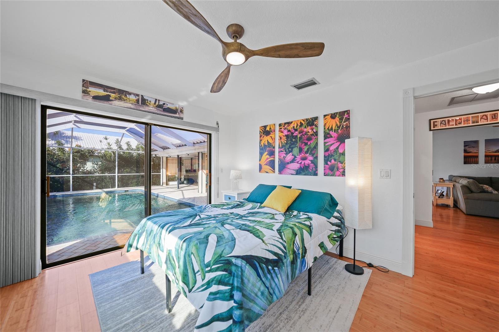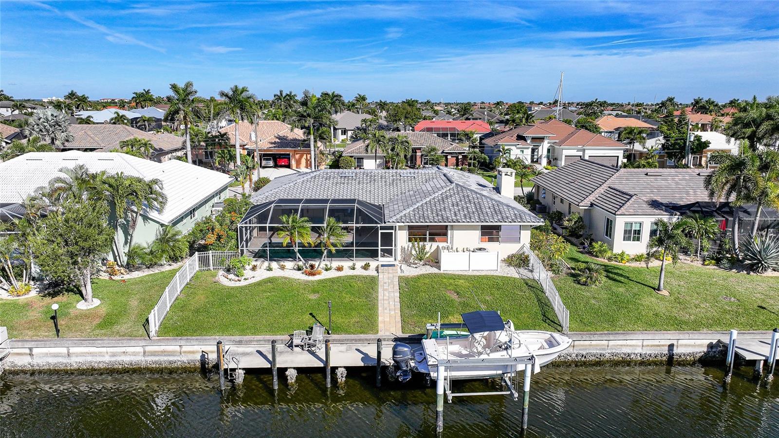 Punta Gorda Isles sailboat water at its best with quick access to open water. From the moment you arrive, this almost 2300 sqft furnished home welcomes you with a sense of warmth, elegance, and quiet sophistication. Tucked away on a peaceful street, this freshly painted three-bedroom, two-bath sailboat waterfront residence with pool and southern exposure has been lovingly maintained and thoughtfully reimagined to celebrate both comfort and coastal waterfront living living. A beautifully composed floor plan draws your eye outward, with tranquil pool and intersecting canal views with 45 foot dock and 10k lift showcased from nearly every room. The family room serves as an inviting centerpiece, anchored by a stunning cut-stone gas fireplace and mirrored wet bar—an ideal setting for intimate gatherings or relaxed evenings at home. It flows effortlessly into the remodeled kitchen, stainless steel appliances, rich wood cabinetry, gleaming granite countertops, and tumbled stone backsplashes create a space as functional as it is refined. Throughout the home, bamboo wood flooring and artfully placed recessed lighting enhance the natural textures and timeless finishes. Coordinating granite and cabinetry extend through the guest bath, laundry room, and wet bar, while the primary bath offers a private spa-like retreat, complete with antique-glazed cabinetry, granite countertops, and a jetted soaking tub—perfect for unwinding as the day fades into evening. Walls of pocketing sliding glass doors dissolve the boundary between indoors and out, opening the primary bedroom and living areas to a generous covered lanai and pool terrace. Here, expansive canal views provide a breathtaking backdrop for sunrise coffees, sunset gatherings, and endless moments of waterfront serenity. Thoughtful enhancements include crown molding, a brick-paver pool deck, a pass-through kitchen window with hand-painted outdoor cabinetry and refrigerator, hurricane shutters, a propane-powered whole house generator was added in 2021, ensuring both beauty and peace of mind. New roof and a/c in 2025. Tastefully remodeled yet offering the opportunity to add your own signature touches, this exceptional waterfront home is a rare opportunity where elegance, comfort, and value converge—waterfront living at its most attainable and inspiring. This house has never had flooding.