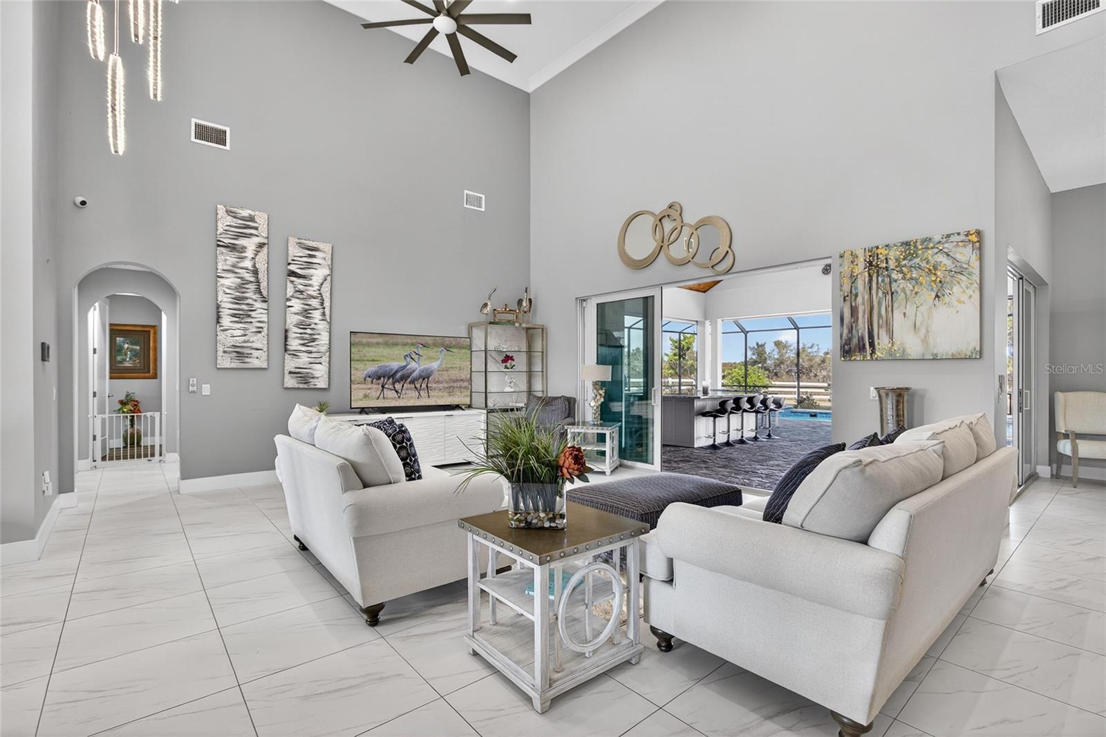 INCREDIBLE COUNTRY RETREAT IN THE ESTATES ON PEACE RIVER JUST 15 MINUTES FROM DOWNTOWN PUNTA GORDA! BOATING ENTHUSIASTS ARE WELCOME AS THE PROPERTY INCLUDES AN OFF-SITE DEEDED BOAT SLIP WITH COVERED 6,000 LB. LIFT ON THE PEACE RIVER WITH ACCESS TO CHARLOTTE HARBOR AND THE GULF! This stunning custom-built home, completed in 2021, offers a rare blend of modern luxury, thoughtful design, and tranquil country living—all set on 1.5 acres with a private lake. As you step inside this amazing 3-bedroom, 4.5-bath pool home with 2,792 sq. ft. of living space, you'll be greeted by an open floor plan featuring soaring 20-foot ceilings, crown molding, elegant lighting, custom shades and porcelain tile flooring in the main living areas. The gourmet kitchen boasts rich wood cabinetry, granite countertops, high-end stainless Smart appliances, built-in oven, and spacious center island with a breakfast bar—all overlooking a welcoming dining area perfect for gatherings. The primary suite is a sanctuary of its own, featuring his-and-hers walk-in closets and a spa-like ensuite bath with dual sinks, soaking tub, and walk-in shower. Two additional guest suites, each with private baths, and a versatile study/den with Murphy bed ensure ample space for family and friends. Step outside to expansive custom covered lanai highlighting outdoor kitchen with built-in LP gas grill, large center island for entertaining, wood plank ceiling creating cozy atmosphere, automatic StormSmart screens to provide privacy and protection in any weather, screened heated saltwater pool and spa plus brick firepit with underground 500-gal propane tank to enjoy cool winter nights. The beautifully landscaped grounds, adorned with fruit trees like lemon, mango, almond, and lime, add to the home's charm. Additional features include covered front porch to enjoy your morning coffee, large laundry room with extensive cabinetry and Butler's pantry, oversized 3-car garage with A/C and extra insulation, two full-size A/C units and tankless water heater. Standing seam metal roof with commercial gutters, generator plus impact windows and doors offer ultimate peace of mind. Outside, you'll find custom walkways, gazebo, shed for extra storage, and a fenced backyard ideal for your furry friends. Set within a friendly, private gated community, this home offers both seclusion and convenience, with easy access to US-17, restaurants, shopping, schools, and historic downtown Punta Gorda. Known for its world-class fishing, boating, beautiful parks, and vibrant community events. Schedule your private showing today and let this extraordinary retreat welcome you home!