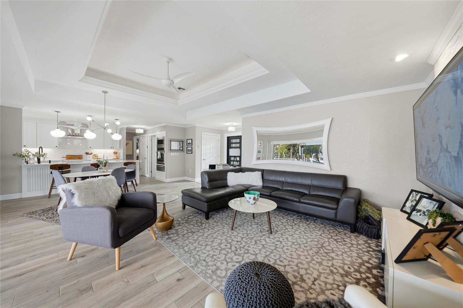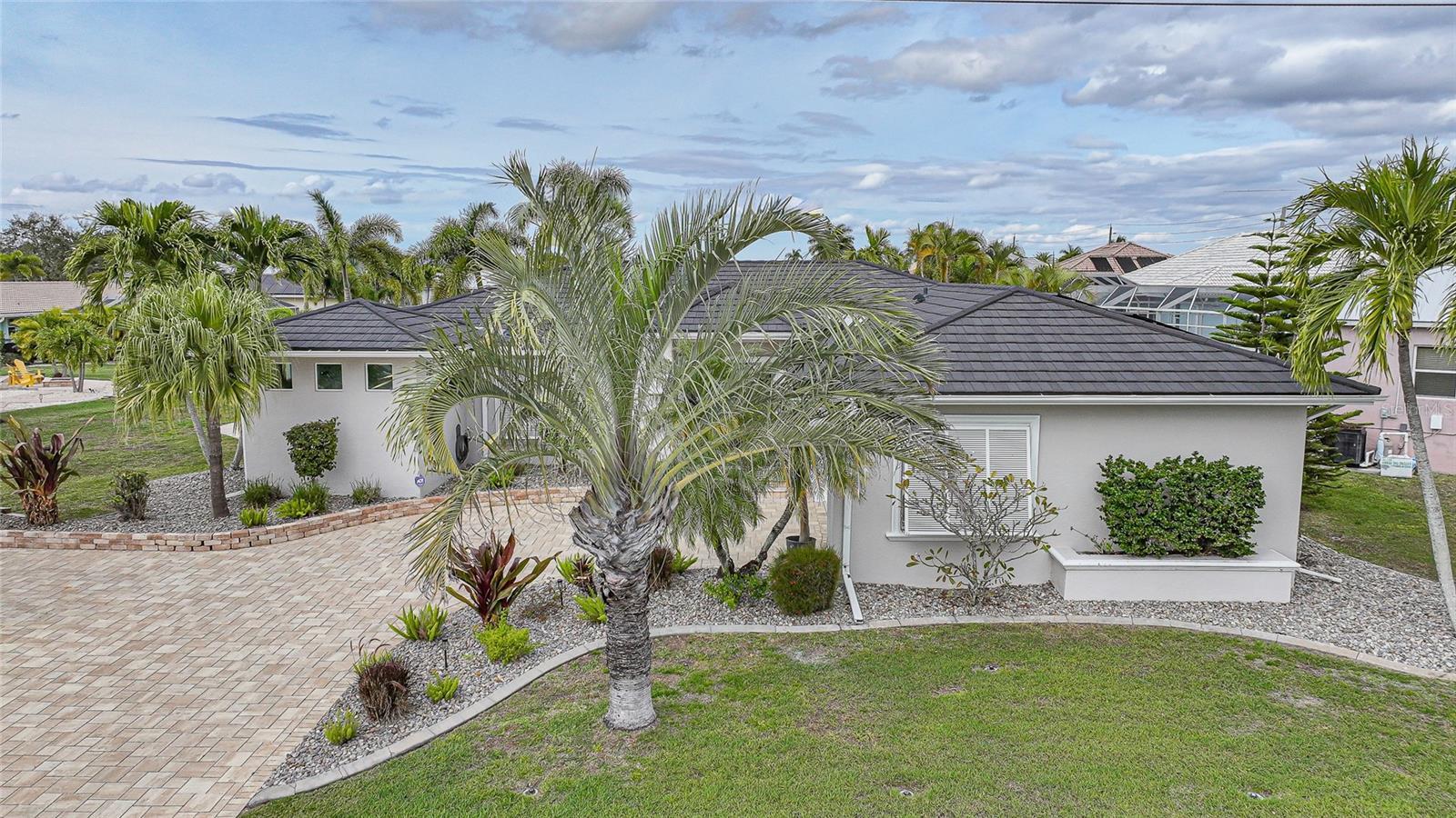 Wow! What a VIEW!!! Welcome to this beautifully remodeled 3-bedroom, 2-bath waterfront home situated on one and a half lots in the heart of Punta Gorda Isles. Meticulously designed for both comfort and coastal living, this residence offers exceptional upgrades, expansive long canal water views, and move-in-ready appeal, with some furnishings included. The living room and dining room showcases a tray ceiling, and Pocketing sliders that lead you to the pool area. As you Step outside, the travertine-finished lanai features a Pebble Tec heated pool and hot tub, a hot-and-cold outdoor shower, and electric roll-down storm shutters for the entire lanai adding safety and peace of mind. The oversized covered lanai provides generous under-roof space for dining and entertaining, where you can appreciate one of the longest canal views in PGI as seen through a wide panoramic screen. The gourmet kitchen is a true showpiece with new cabinetry, Cambria countertops, a Stainless Steel Frigidaire Professional side by side 33”Refrigerator and 33”Freezer, a beverage refrigerator, and a dedicated coffee bar area complete with bookshelves, a large picture window, and a cozy reading chair. A split floorplan ensures privacy for both owners and guests. The primary en suite offers a generous sized walk in closet. The primary bath has a spa-like luxury feel with a freestanding soaking tub with ceiling-mounted spout, a walk-in shower, dual sinks and vanity space. The guest quarters include 2 spacious bedroom and a nicely appointed guest bath with walk in shower. Boaters will also appreciate the quick access to Charlotte Harbor where you can enjoy fishing or dining at nearby waterfront restaurants. The 70 foot concrete ,city maintained seawall has a 45-foot concrete dock that features a 10,000-lb boat lift with new motors. The home features a new Metal roof with a 50-year transferable warranty, new solar panels with an average electric bill of approximately $50, and a new electrical service panel.. There is also an approved engineered drawing to add additional living space or garage to the home. The finished garage includes a new epoxy floor, and the paver driveway with turnaround adds both convenience and curb appeal Additional highlights include two mango trees that add charm and character to the tropical landscape. This home was even ranked as a favorite remodeled home on the Backpack Kids House Tour, a testament to its thoughtful design and standout appeal. This home will not only be perfect for a permanent Florida resident, but it would also be an ideal investment for a vacation rental. A rare opportunity to own this meticulously updated waterfront home in Punta Gorda Isles that seamlessly blends modern upgrades, energy efficiency, and elegant coastal charm—all in one of Punta Gorda’s most desirable waterfront neighborhoods. This home is also conveniently located within close proximity to famous Fishermen’s Village, the new Sunseeker Resort, major highways and airports, and just a few minutes to downtown Punta Gorda, where you can enjoy its unique restaurants, shopping, pickle ball, biking, and waterfront activities. Make your appointment to see this home today!