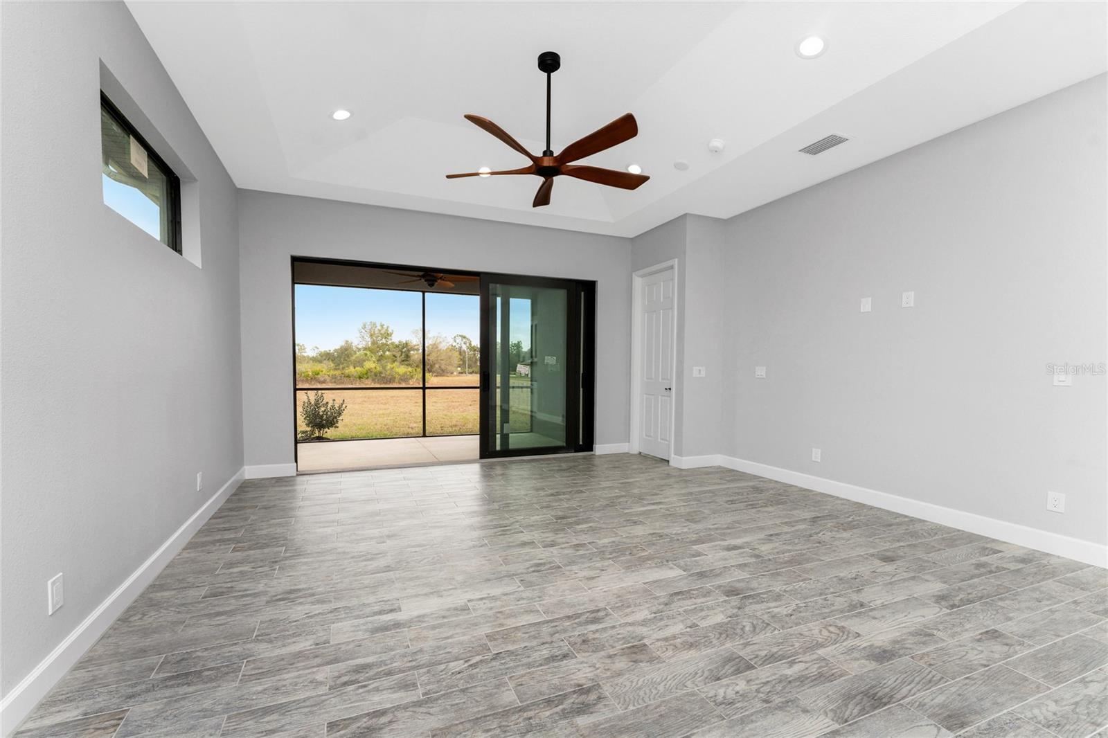 - Ceiling Fans(s), Coffered Ceiling(s), High Ceilings, Living Room/Dining Room Combo, Open Floorplan, Primary Bedroom Main Floor, Split Bedroom, Stone Counters, Thermostat, Walk-In Closet(s)