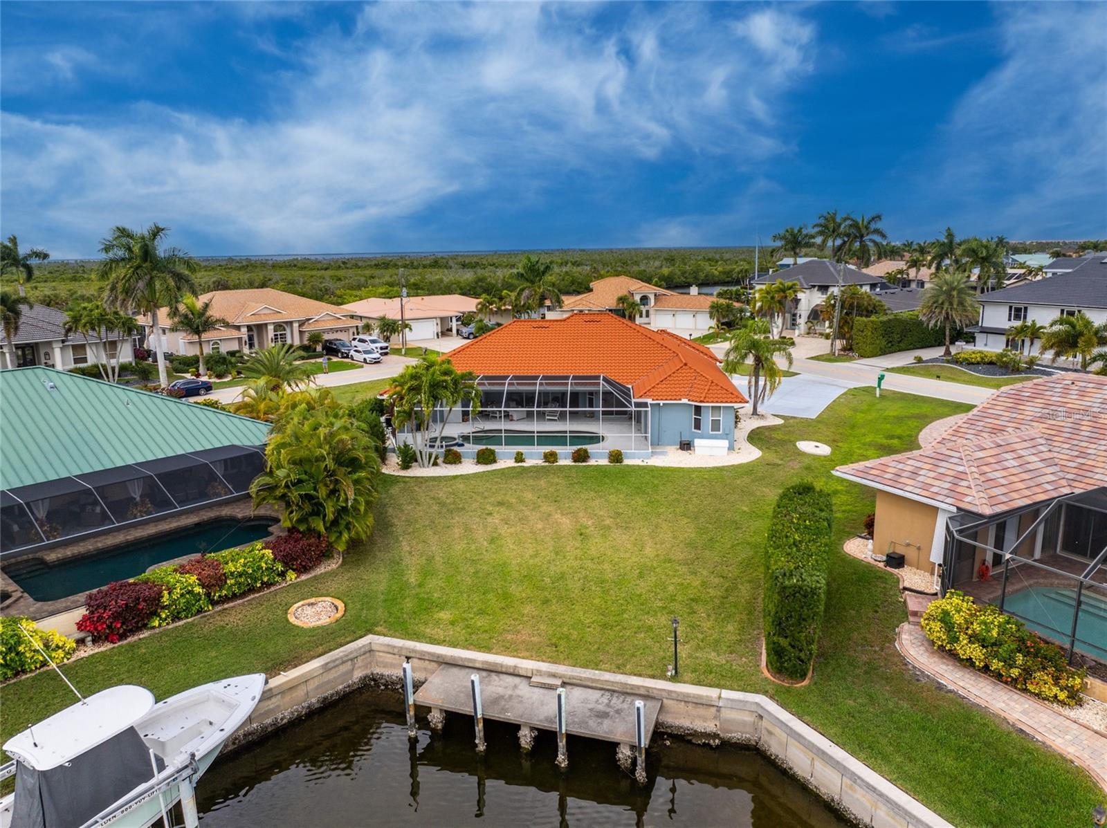 Welcome to your waterfront paradise in Punta Gorda, a home designed for luxurious living and effortless entertaining. This exquisite single-family residence offers 3 bedrooms 2 1/2baths, perfectly situated on an oversized corner lot with a convenient circular driveway. Step inside to discover a thoughtfully designed split floor plan, providing both privacy and expansive common areas. The primary suite boasts dual walk-in closets, ensuring ample storage. A versatile bonus room offers the ideal space for an office, den, or personal exercise haven. The third bedroom includes a clever Murphy bed, perfect for guests or maximizing space. Throughout the home, you'll find abundant storage solutions, making organization a breeze.Embrace the quintessential Florida lifestyle with your private heated pool and spa, set within a large lanai, creating an idyllic outdoor oasis. For the boating enthusiast, this location is unparalleled. Enjoy less than a 15-minute boat ride to Charlotte Harbor with no bridges to open water, granting you immediate access to world-class fishing and endless aquatic adventures.Beyond your private retreat, experience the vibrant charm of Punta Gorda. You're just a short distance from historic downtown, home to boutique shops, exceptional restaurants, and lively weekly Farmer's Markets. Fishermen's Village offers additional dining, shopping, and entertainment options. Enjoy regular community events, entertainment, and the convenience of being only 40 minutes from stunning Gulf Beaches.This exceptional home offers a rare blend of comfort, elegance, and unparalleled access to the best of Southwest Florida living. Don't miss the opportunity to make this dream a reality. Schedule your private showing today and discover all that this remarkable property has to offer.
