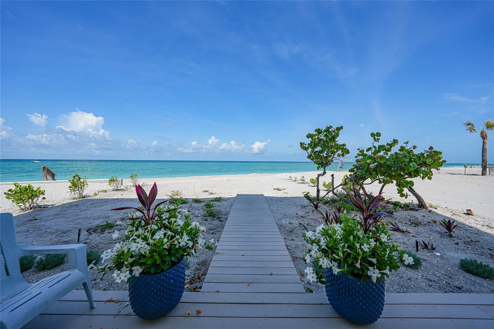 Welcome to Krystal Key Condominiums, an exclusive, gated enclave on the pristine shores of Manasota Key where luxury, privacy, and laid-back elegance converge. This exquisite 2-bedroom, 2.5-bath residence is a rare gem—offering all the sophistication of high-end coastal living while embracing the serenity of the Gulf Coast. This building made it through all storms practically un-scathed, like a local Fort Knox. Enter through your privately gated drive and enjoy the convenience of two assigned covered parking spaces tucked beneath the building—shielded from the elements and secured for peace of mind. A private elevator delivers you directly to a semi-private grand foyer, which can be key-locked for enhanced security and exclusivity. Step through double entry doors into a space designed to impress. The open-concept layout is enhanced by PGT impact-rated tilt-and-turn windows and sliders that bathe the home in natural light while offering effortless views of both the Gulf of America and Lemon Bay. Relax in the inviting living area anchored by a modern glass crystal fireplace—a shimmering statement of both warmth and sophistication. The chef-inspired kitchen is a culinary dream: featuring a massive quartzite island, Bosch stainless steel appliances (including induction range, warming drawer, and refrigerator), a Houzz apron-front sink, extensive cabinetry, and a custom-built pantry with pull-out drawers. Adjacent, a charming media/family room with built-in shelving provides the perfect space to unwind or entertain. Both bedroom suites are luxuriously appointed with walk-in closets and private baths. The primary suite boasts a spa-like experience, featuring dual vanities, a steam shower, and a deep soaking tub. Step onto either of the two expansive private balconies to enjoy partial Gulf views and the soothing sounds of the surf. The primary balcony also includes hurricane roll-down shutters for added protection and convenience. Additional features include: • Impact glass throughout • Custom chef’s desk with quartzite surface • Elegant finishes and designer touches in every room • Access to a saltwater community pool, heated spa, and outdoor grilling area • Keypad entry, security cameras, and guest parking • Just a short stroll to Stump Pass State Park, restaurants, and charming island boutiques Whether you're seeking a full-time residence or a seasonal escape, this home offers unmatched comfort, security, and coastal beauty. Live where others vacation. Showings by private appointment only. **PLEASE ENJOY THE 3D INTERACTIVE VIRTUAL TOUR ASSOCIATED WITH THIS LISTING**