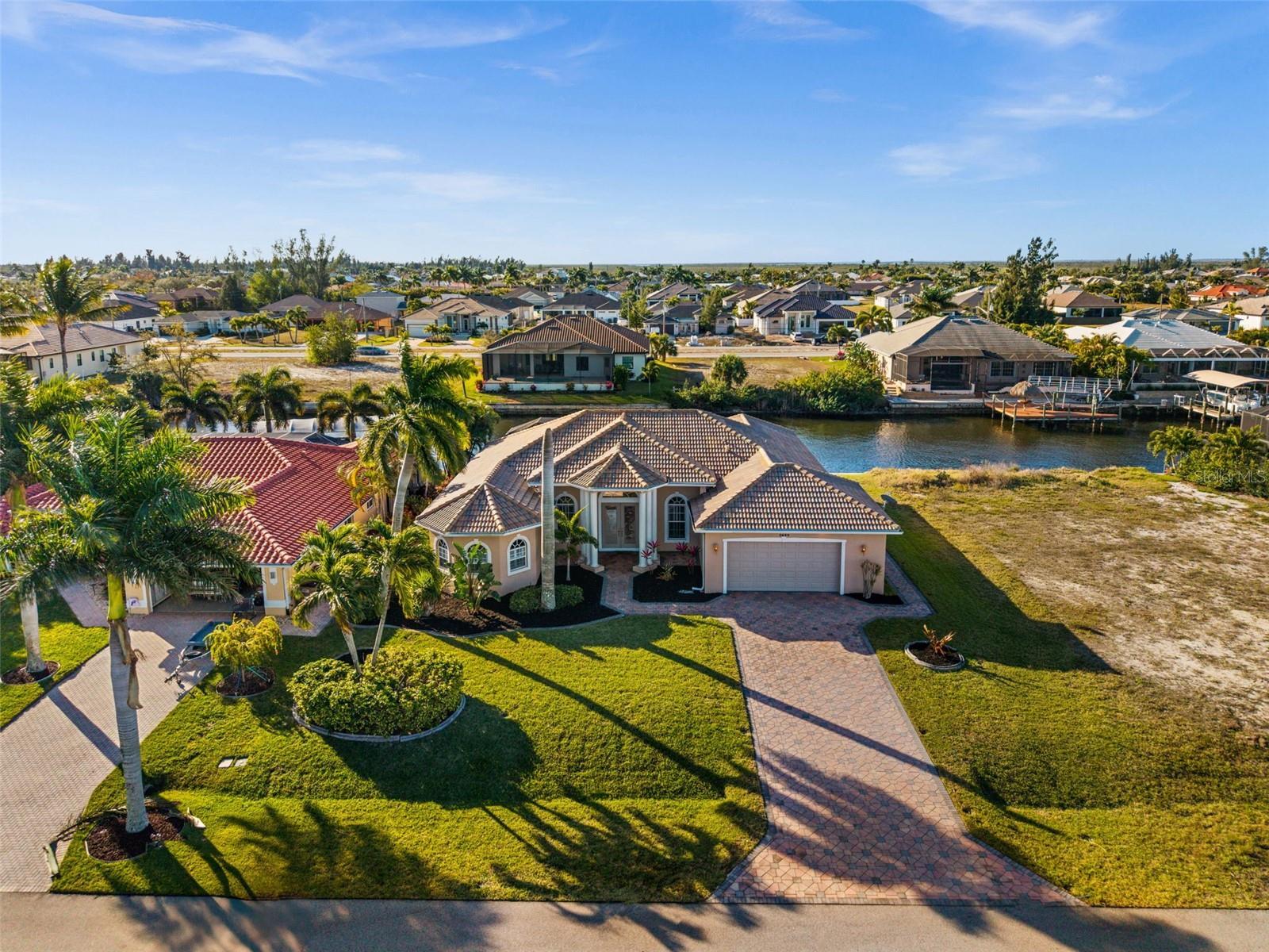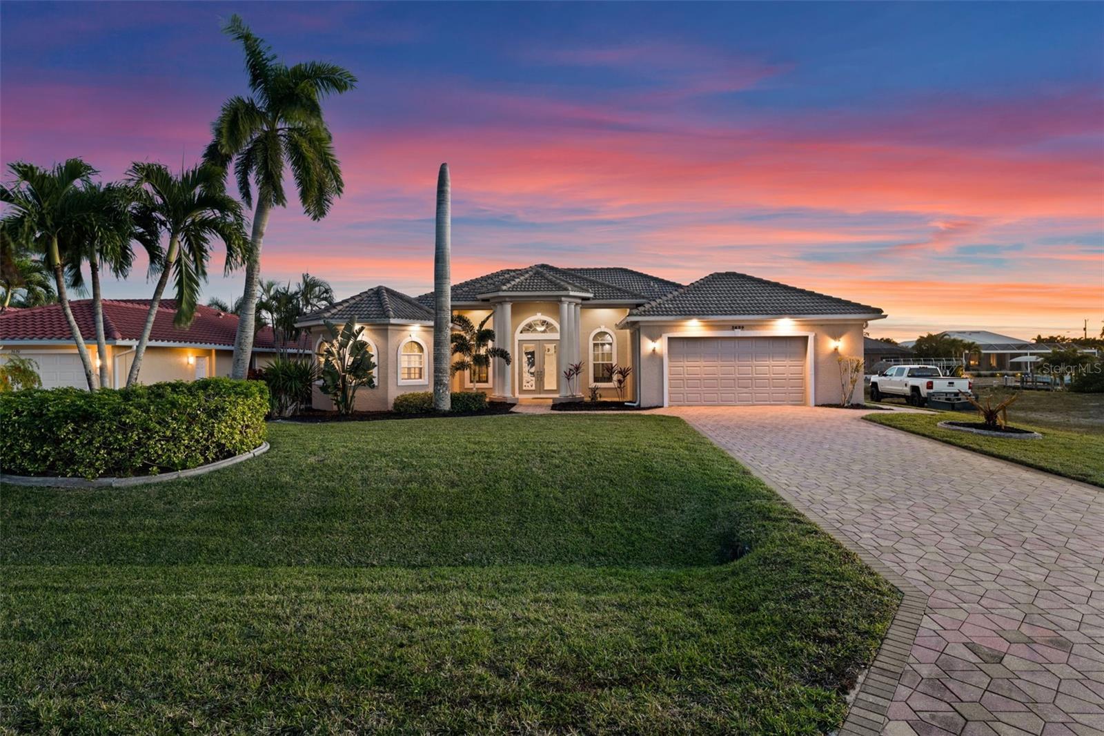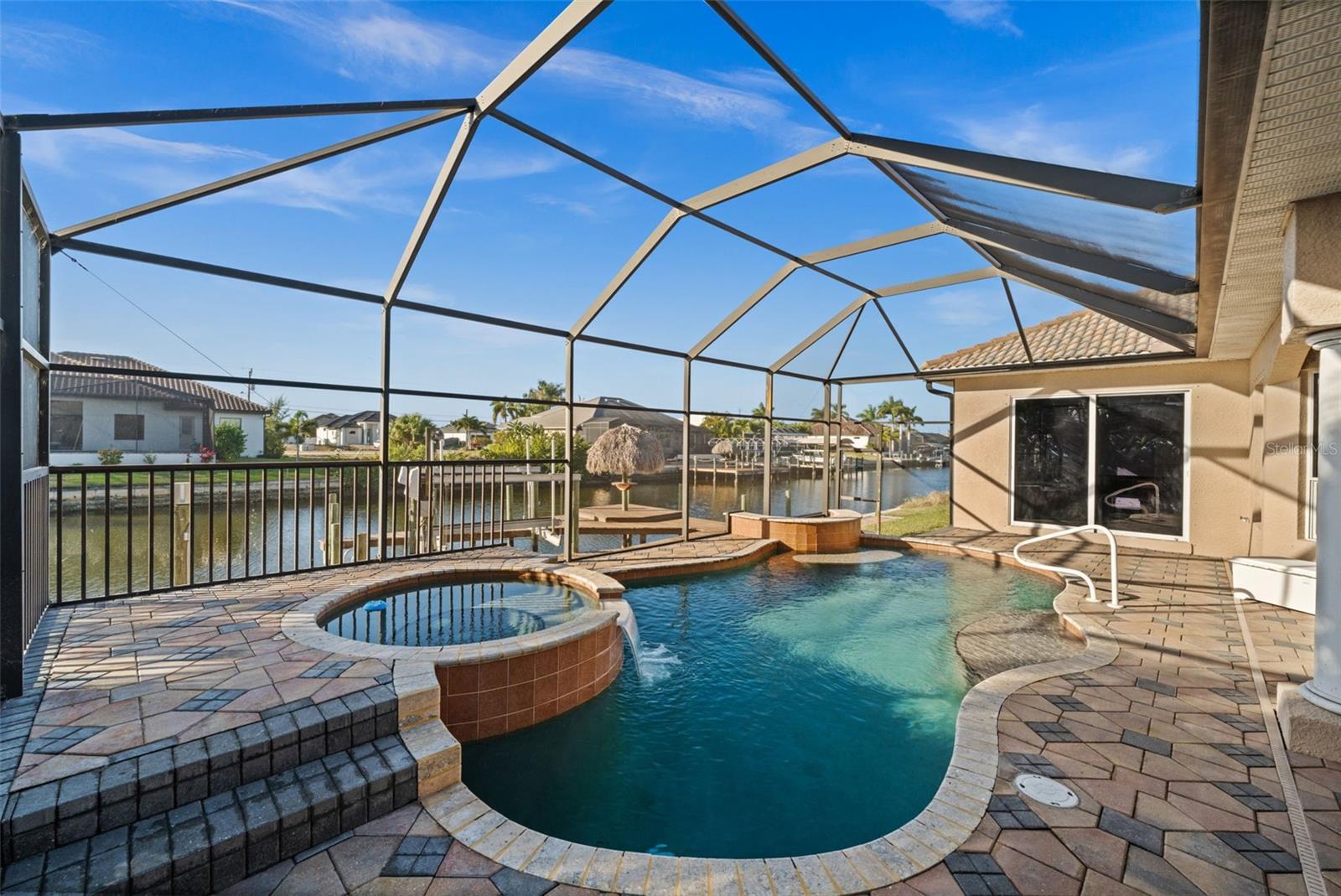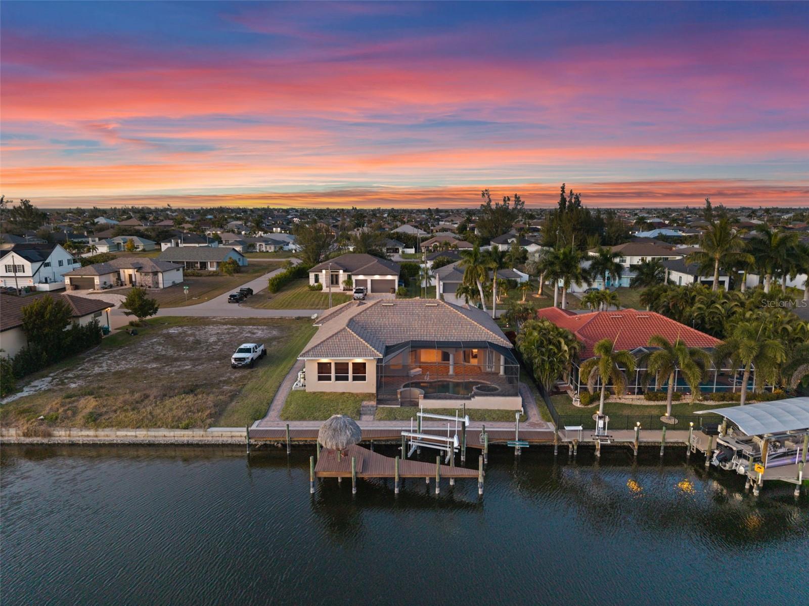 Under contract-accepting backup offers. SOUTHERN EXPOSURE GULF ACCESS POOL HOME WITH DOCK, LIFT & TIKI HUT! Welcome to 3624 SW 3rd Ter, a beautifully maintained Gulf access home in a prime SW Cape Coral location, just minutes to shopping, dining, and open water. Enjoy quick access to Matlacha by car or boat, with Publix only five minutes away and some of Southwest Florida’s best fishing and boating destinations right at your doorstep. This spacious 3-bedroom home plus office offers 2,426 square feet of comfortable, open living space designed to take full advantage of the waterfront setting. The great room features soaring 12-foot tray ceilings and expansive pocket sliders that open to the lanai and pool, creating seamless indoor-outdoor living. In total, four sets of sliding glass doors connect the main living areas and primary suite to the pool and water views beyond. The kitchen is great for entertaining, with granite countertops, bar seating, stainless steel appliances, a built-in wine cooler, and a keg cooler. The primary suite has direct lanai access, walk-in closets, dual vanities, a walk-around shower, and a separate soaking tub. Two additional guest bedrooms, a dedicated office near the entry, and a convenient pool bath provide excellent flexibility for guests or working from home. Step outside to your screened lanai featuring a pool with waterfall spa and a swim-up bar, surrounded by extensive brick paver decking and lush tropical landscaping. All Southern Exposure for all day sun! Boaters will appreciate the 80’ x 25’ dock equipped with a 10,000 lb boat lift, a jet ski lift, and a tiki hut. Your gateway to Matlacha restaurants, Boca Grande shopping, Cayo Costa and Sanibel beaches, and world-class fishing. Additional highlights include a 2.5-car garage, brick paver driveway and walkways, storm shutters, a roof replaced in 2021, and AC replaced in 2020. The home has never flooded in previous storms, and the seller’s flood insurance is transferable. Located in sought-after SW Cape Coral, this Gulf access home offers the perfect blend of boating lifestyle, comfort, and convenience.