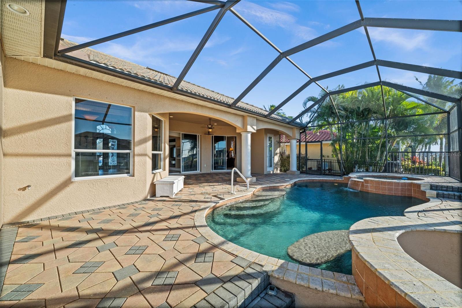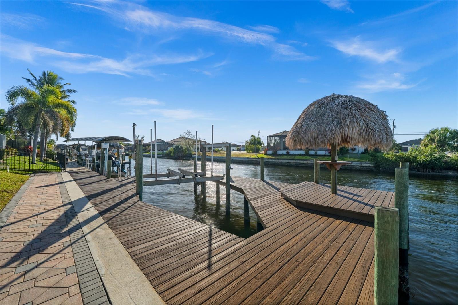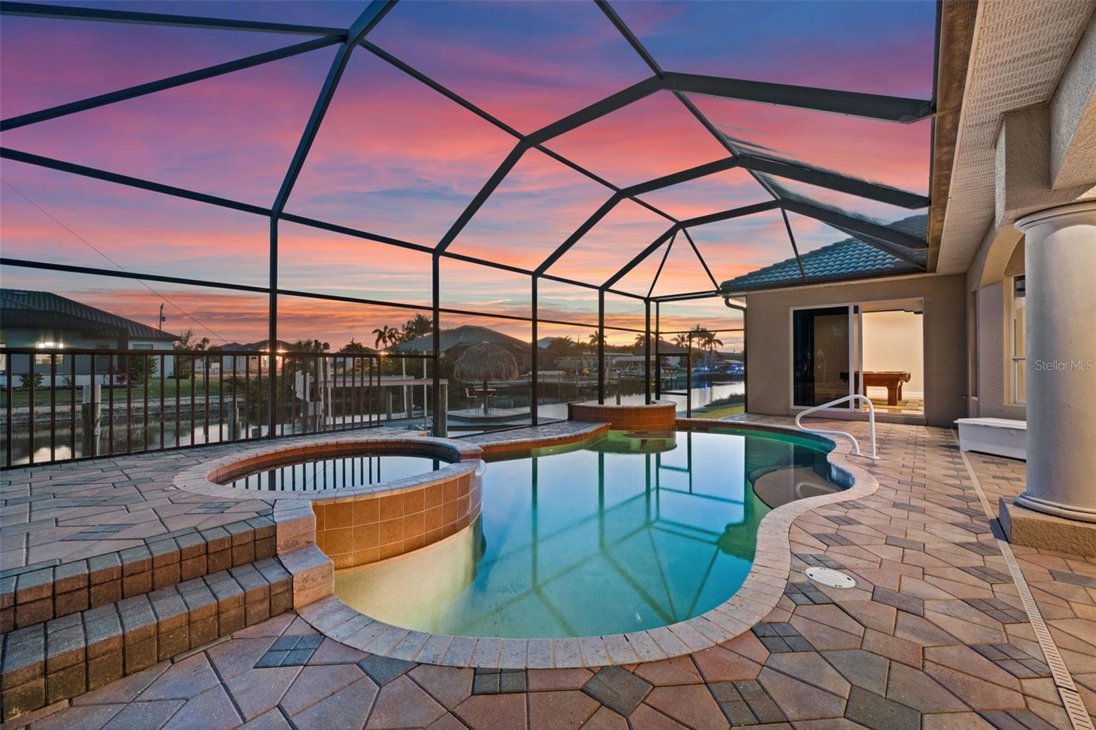 Under contract-accepting backup offers. SOUTHERN EXPOSURE GULF ACCESS POOL HOME WITH DOCK, LIFT & TIKI HUT! Welcome to 3624 SW 3rd Ter, a beautifully maintained Gulf access home in a prime SW Cape Coral location, just minutes to shopping, dining, and open water. Enjoy quick access to Matlacha by car or boat, with Publix only five minutes away and some of Southwest Florida’s best fishing and boating destinations right at your doorstep. This spacious 3-bedroom home plus office offers 2,426 square feet of comfortable, open living space designed to take full advantage of the waterfront setting. The great room features soaring 12-foot tray ceilings and expansive pocket sliders that open to the lanai and pool, creating seamless indoor-outdoor living. In total, four sets of sliding glass doors connect the main living areas and primary suite to the pool and water views beyond. The kitchen is great for entertaining, with granite countertops, bar seating, stainless steel appliances, a built-in wine cooler, and a keg cooler. The primary suite has direct lanai access, walk-in closets, dual vanities, a walk-around shower, and a separate soaking tub. Two additional guest bedrooms, a dedicated office near the entry, and a convenient pool bath provide excellent flexibility for guests or working from home. Step outside to your screened lanai featuring a pool with waterfall spa and a swim-up bar, surrounded by extensive brick paver decking and lush tropical landscaping. All Southern Exposure for all day sun! Boaters will appreciate the 80’ x 25’ dock equipped with a 10,000 lb boat lift, a jet ski lift, and a tiki hut. Your gateway to Matlacha restaurants, Boca Grande shopping, Cayo Costa and Sanibel beaches, and world-class fishing. Additional highlights include a 2.5-car garage, brick paver driveway and walkways, storm shutters, a roof replaced in 2021, and AC replaced in 2020. The home has never flooded in previous storms, and the seller’s flood insurance is transferable. Located in sought-after SW Cape Coral, this Gulf access home offers the perfect blend of boating lifestyle, comfort, and convenience.