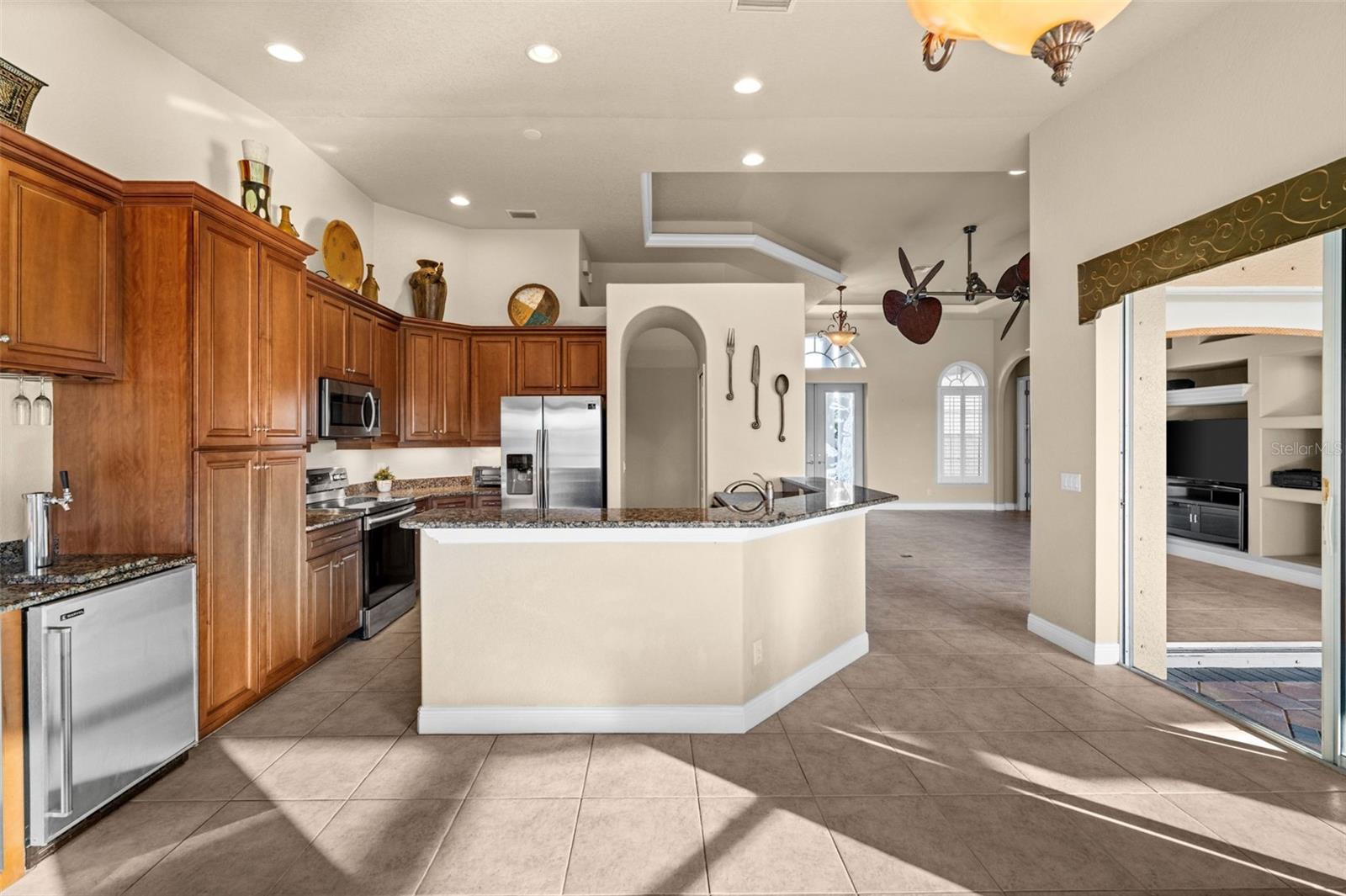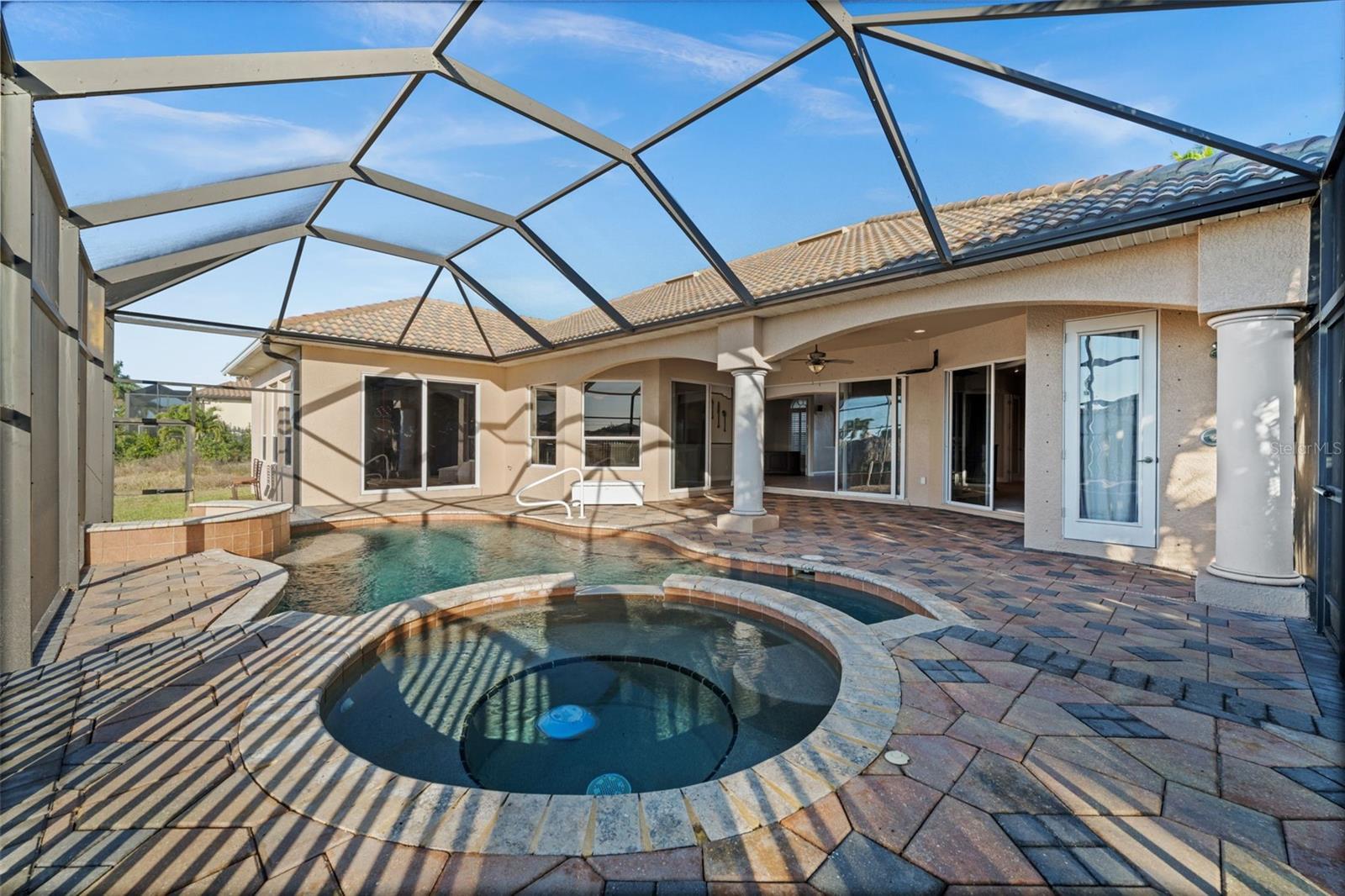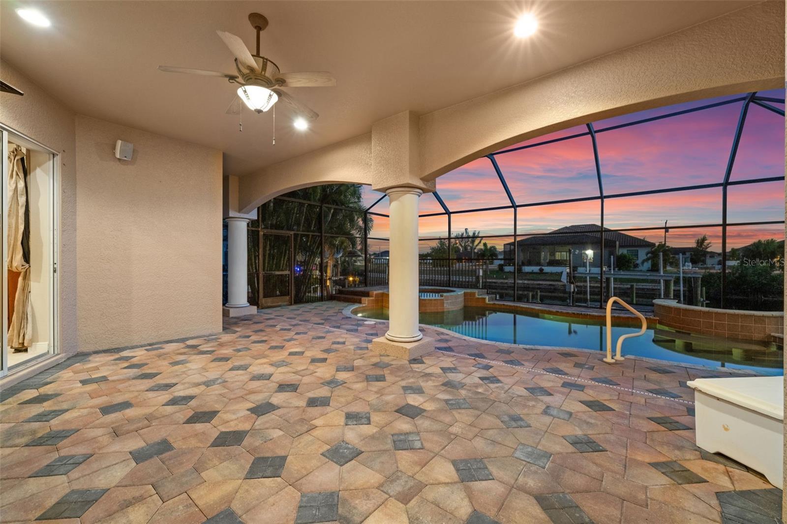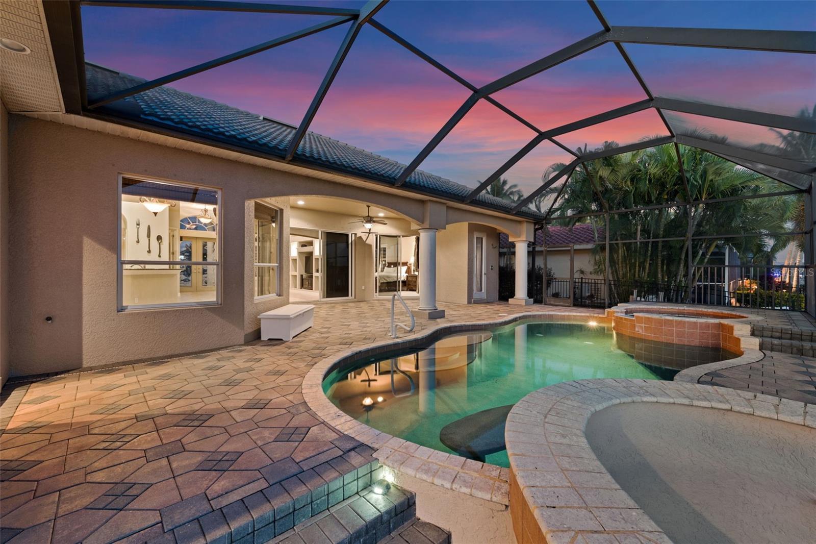 Under contract-accepting backup offers. SOUTHERN EXPOSURE GULF ACCESS POOL HOME WITH DOCK, LIFT & TIKI HUT! Welcome to 3624 SW 3rd Ter, a beautifully maintained Gulf access home in a prime SW Cape Coral location, just minutes to shopping, dining, and open water. Enjoy quick access to Matlacha by car or boat, with Publix only five minutes away and some of Southwest Florida’s best fishing and boating destinations right at your doorstep. This spacious 3-bedroom home plus office offers 2,426 square feet of comfortable, open living space designed to take full advantage of the waterfront setting. The great room features soaring 12-foot tray ceilings and expansive pocket sliders that open to the lanai and pool, creating seamless indoor-outdoor living. In total, four sets of sliding glass doors connect the main living areas and primary suite to the pool and water views beyond. The kitchen is great for entertaining, with granite countertops, bar seating, stainless steel appliances, a built-in wine cooler, and a keg cooler. The primary suite has direct lanai access, walk-in closets, dual vanities, a walk-around shower, and a separate soaking tub. Two additional guest bedrooms, a dedicated office near the entry, and a convenient pool bath provide excellent flexibility for guests or working from home. Step outside to your screened lanai featuring a pool with waterfall spa and a swim-up bar, surrounded by extensive brick paver decking and lush tropical landscaping. All Southern Exposure for all day sun! Boaters will appreciate the 80’ x 25’ dock equipped with a 10,000 lb boat lift, a jet ski lift, and a tiki hut. Your gateway to Matlacha restaurants, Boca Grande shopping, Cayo Costa and Sanibel beaches, and world-class fishing. Additional highlights include a 2.5-car garage, brick paver driveway and walkways, storm shutters, a roof replaced in 2021, and AC replaced in 2020. The home has never flooded in previous storms, and the seller’s flood insurance is transferable. Located in sought-after SW Cape Coral, this Gulf access home offers the perfect blend of boating lifestyle, comfort, and convenience.