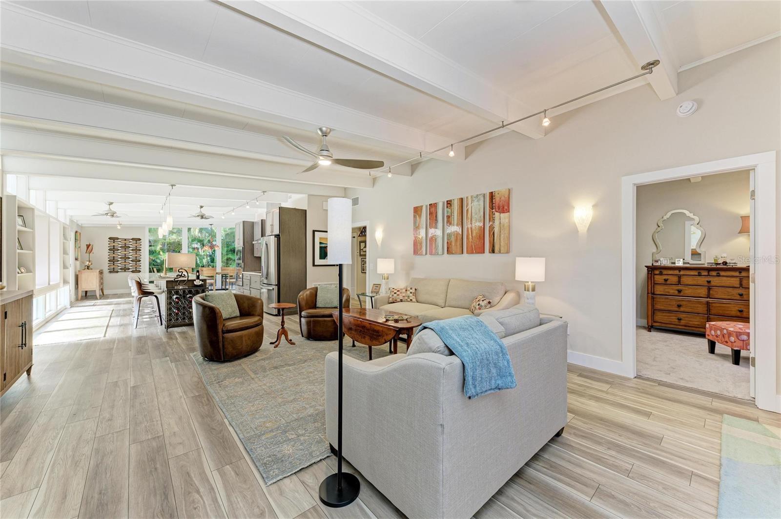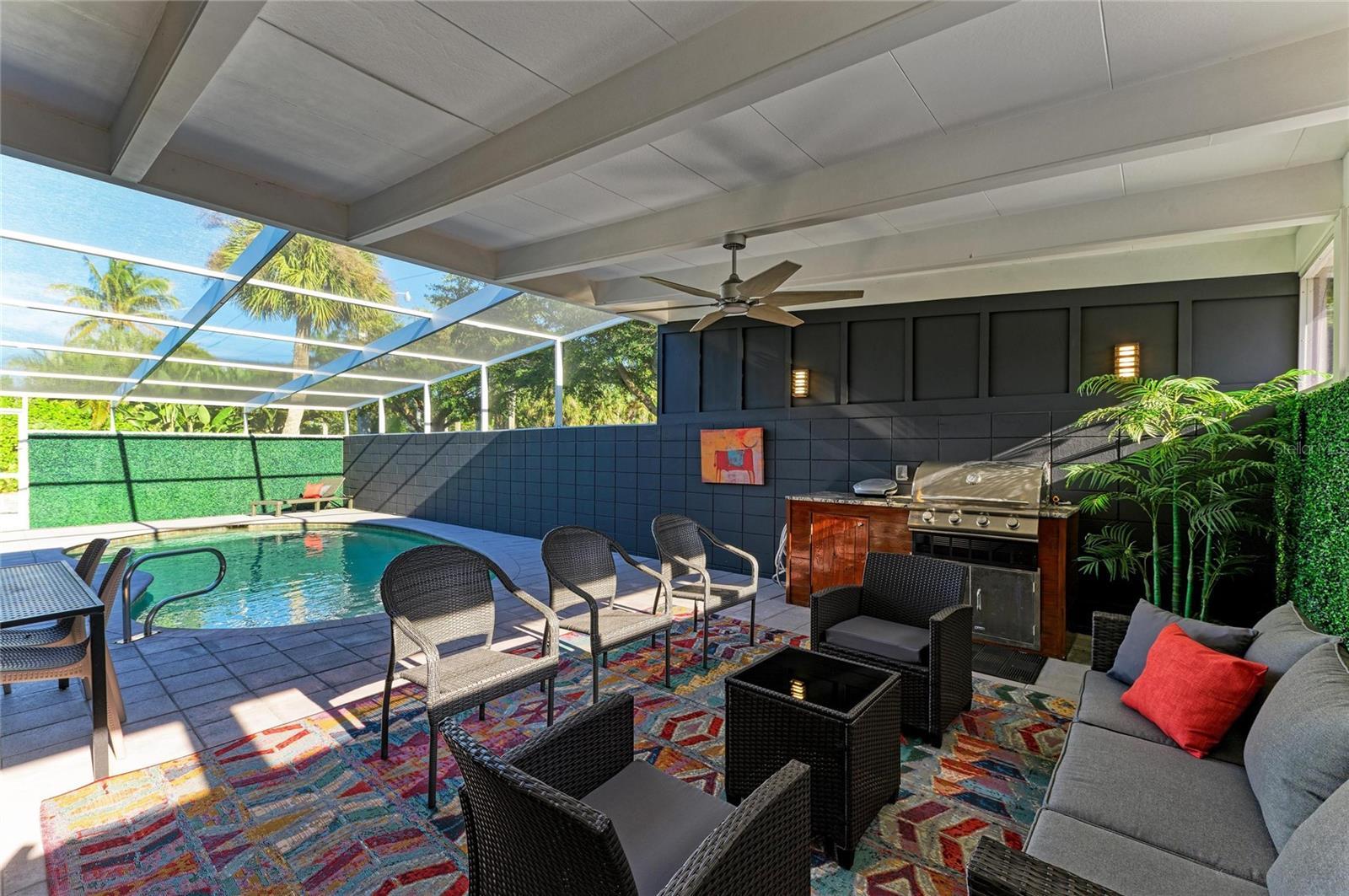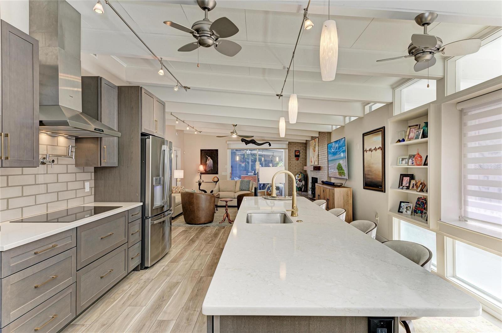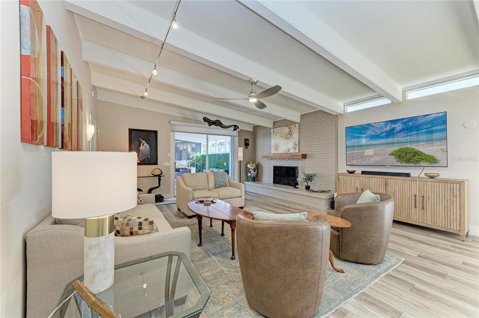 Located in the heart of the Punta Gorda Historic District, this deceptively spacious 3-bedroom, 2-bathroom Mid-Century Modern residence has been fully remodeled and expanded, offering a rare blend of architectural character and modern functionality. Originally built in 1959, with full rebuild down to the studs in 2014, the home has been thoughtfully updated inside and out in 2024, including a significant primary suite addition, while preserving the clean lines and open-concept design that define Mid-Century Modern style. Despite its understated exterior, the home opens to a surprisingly expansive interior with a highly functional layout that lives far larger than expected. Situated on an oversized double lot (approximately 0.35 acres), the property provides exceptional outdoor space—an uncommon feature in downtown Punta Gorda. The expansive backyard features lush landscaping, open green space, and a resort-style pool with a dedicated seating and outdoor cooking area, ideal for entertaining and everyday enjoyment. Inside, the open living and dining areas flow seamlessly to the lanai and pool through large windows and doors that bring in abundant natural light. Luxury vinyl plank flooring runs throughout the home, offering durability and low maintenance. The modern kitchen features stainless steel appliances, generous cabinetry, and a large island with additional seating, opening directly to a spacious dining area designed to accommodate gatherings with ease. The primary suite serves as a private retreat with a large walk-in shower, dual-sink vanity, separate makeup area, laundry room, and a custom walk-in closet with built-in cabinetry. Two additional bedrooms provide flexibility for guests, home office space, or additional living needs. Ample storage is available in the hallway behind kitchen and in the carport area, adding practical functionality rarely found in homes of this era. The property has been featured in Harbor Magazine and is listed in the Local Register of Historic Places. Exterior modifications may be subject to local historic preservation guidelines, helping maintain the architectural integrity of the district. Conveniently located near downtown Punta Gorda’s shopping, dining, parks, and waterfront amenities, this home presents a unique opportunity to own a fully updated historic residence that offers modern finishes, generous indoor and outdoor living space, and timeless Mid-Century design in one of Southwest Florida’s most desirable locations.