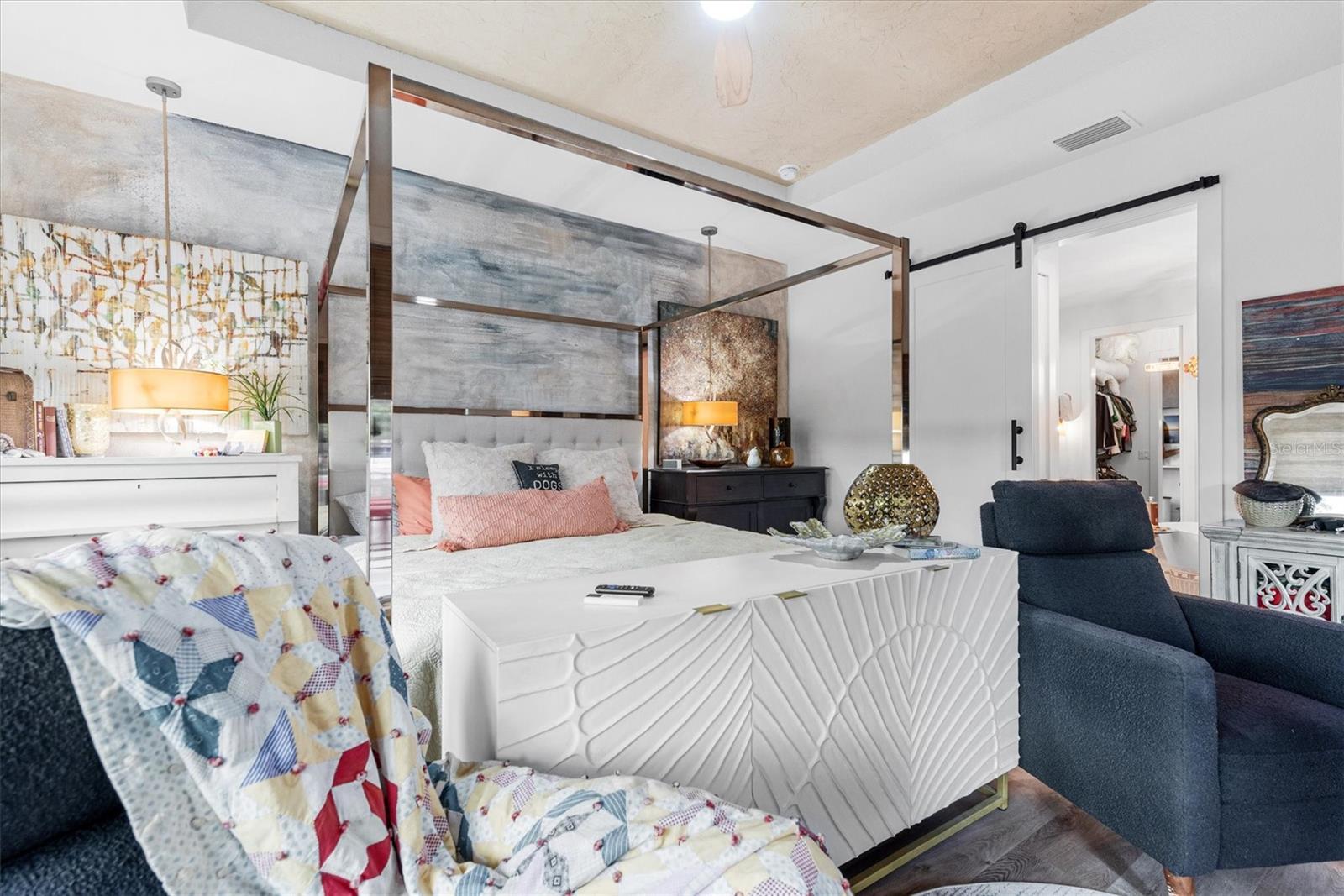 - Built-in Features, Ceiling Fans(s), Coffered Ceiling(s), Dry Bar, In Wall Pest System, Pest Guard System, Solid Wood Cabinets, Stone Counters, Tray Ceiling(s), Vaulted Ceiling(s), Walk-In Closet(s), Wet Bar, Window Treatments
