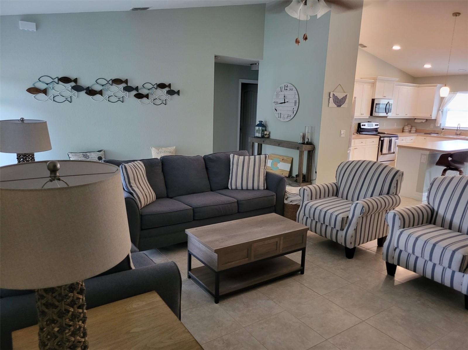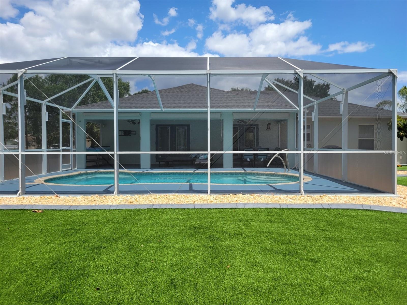 Seasonal/Short Term Rental available throughout the year. Posted rate is winter/peak season rate. Off-season rate is $ 3,000/month. This attractively decorated 3 bedroom, 2 bathroom home boasts an electrically-heated pool, open-concept living area (great for family & friends gatherings), with recessed lighting in the kitchen, crown molding on top of the kitchen cabinets, beadboard kitchen cabinets and doors throughout, dual sinks in the primary bathroom, beautiful tile throughout the home for ease of cleaning, a queen sofa bed in the living room, fully fenced-in backyard with artificial lawn and decorative stones, and split bedroom floor plan. Enjoy a morning swim at sunrise in your electrically heated pool followed by a cup of your favorite "Joe" in the privacy of your screened-in lanai. What a great way to start the day! At the end of a busy day of golfing, fishing or shopping, dining al fresco - poolside - is what we do in Florida. This stunning home features a king size bed with TV in the primary bedroom and spacious walk-in closet, queen size bed with TV in the 2nd bedroom, and a queen bed in the 3rd bedroom. The 3rd bedroom also has a crib. The Englewood/Rotonda West area offers great beaches, excellent restaurants, plenty of shopping establishments, world-class fishing and numerous golf courses. Heat Pump Pool. Internet Included, live streaming tv.