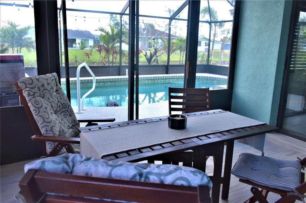 Available for the 2025 season, Beautifully decorated artist-style retreat with original artwork by the owner that can be purchased. 2 bedrooms, 2 bathrooms, 2 car garage, with 1355 sq ft. the primary has a king-size bed with a walk-in closet, guest bedroom has a queen and a walk-in closet, 4 TVs, full kitchen, living room area and family room off the kitchen, sliders in the primary and family room walk out to your screened sitting area. The pool has a brand new heater installed on 1/2023, Hulu, Waku, Netflix, Hulu, Amazon prime, and Raku are available, you will need your own subscription for Netflix and amazon prime, wifi ready, and small dog negotiable. Indoor laundry room with Locked owner closet in the laundry room
