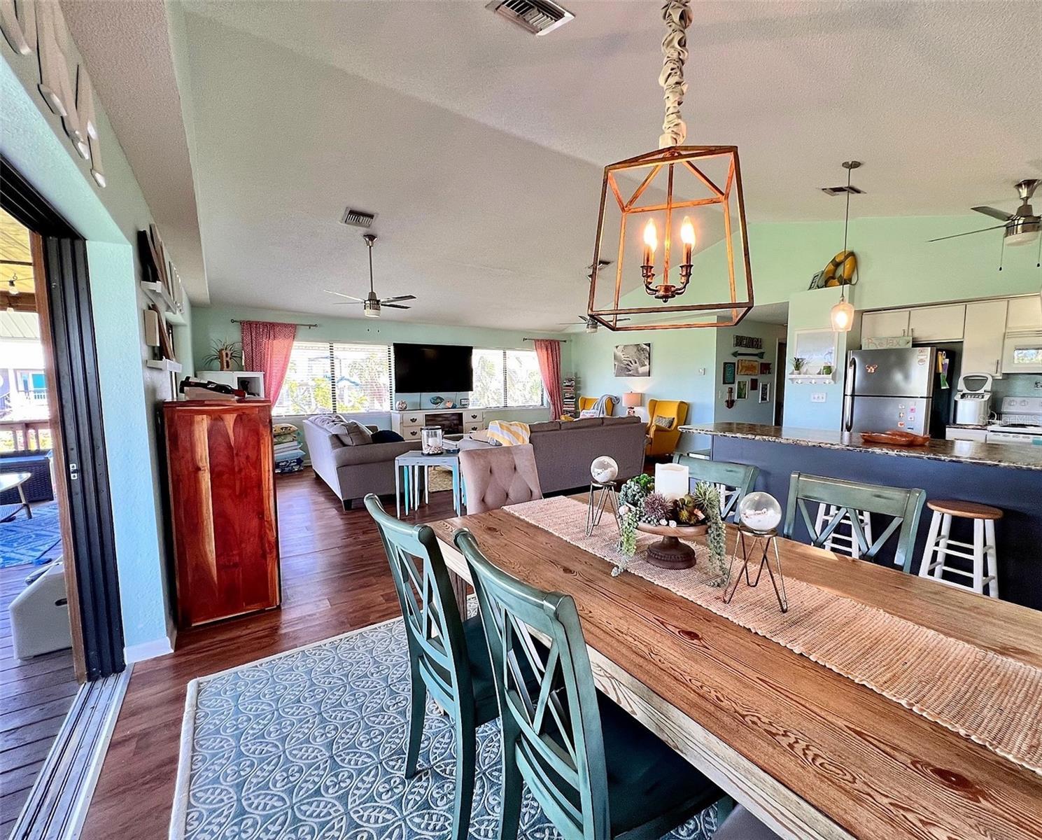 - Ceiling Fans(s), Kitchen/Family Room Combo, Living Room/Dining Room Combo, Thermostat, Vaulted Ceiling(s), Window Treatments
