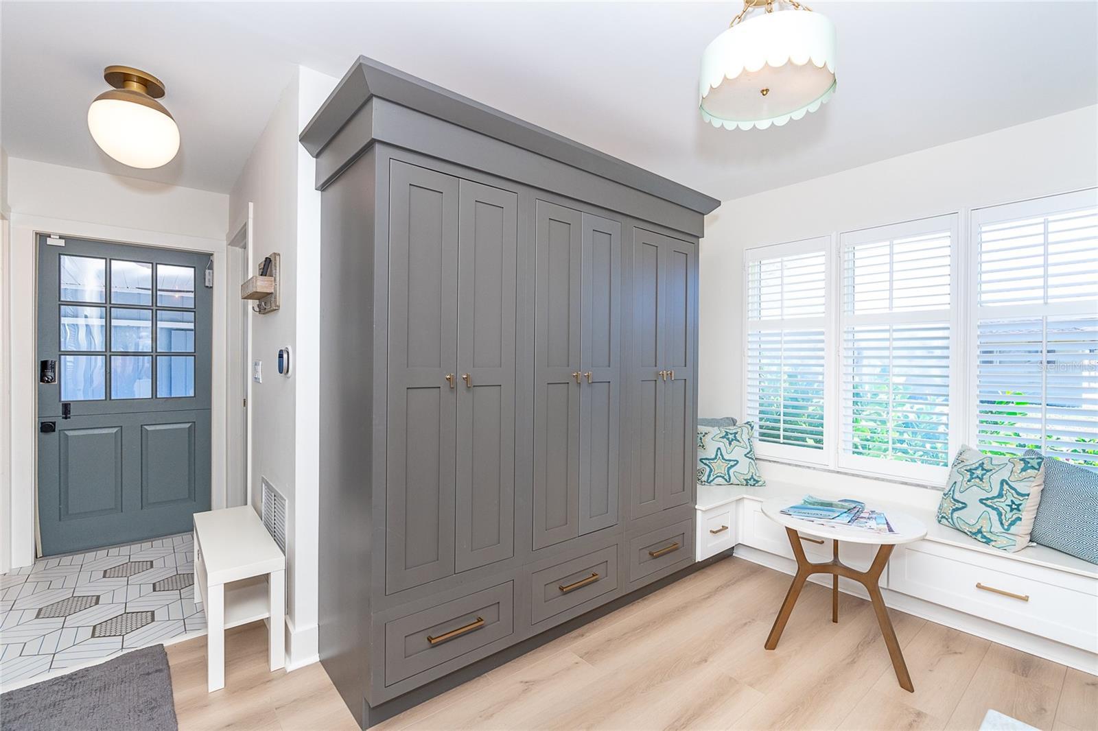 - Built-in Features, Ceiling Fans(s), Eat-in Kitchen, Primary Bedroom Main Floor, Solid Surface Counters, Solid Wood Cabinets, Walk-In Closet(s), Window Treatments