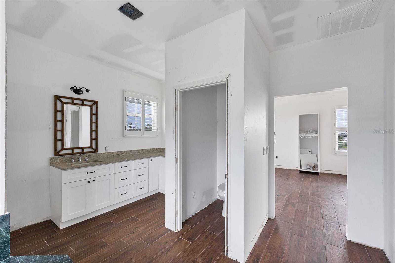 - Cathedral Ceiling(s), Ceiling Fans(s), Eat-in Kitchen, High Ceilings, PrimaryBedroom Upstairs, Solid Wood Cabinets, Stone Counters, Thermostat, Walk-In Closet(s)