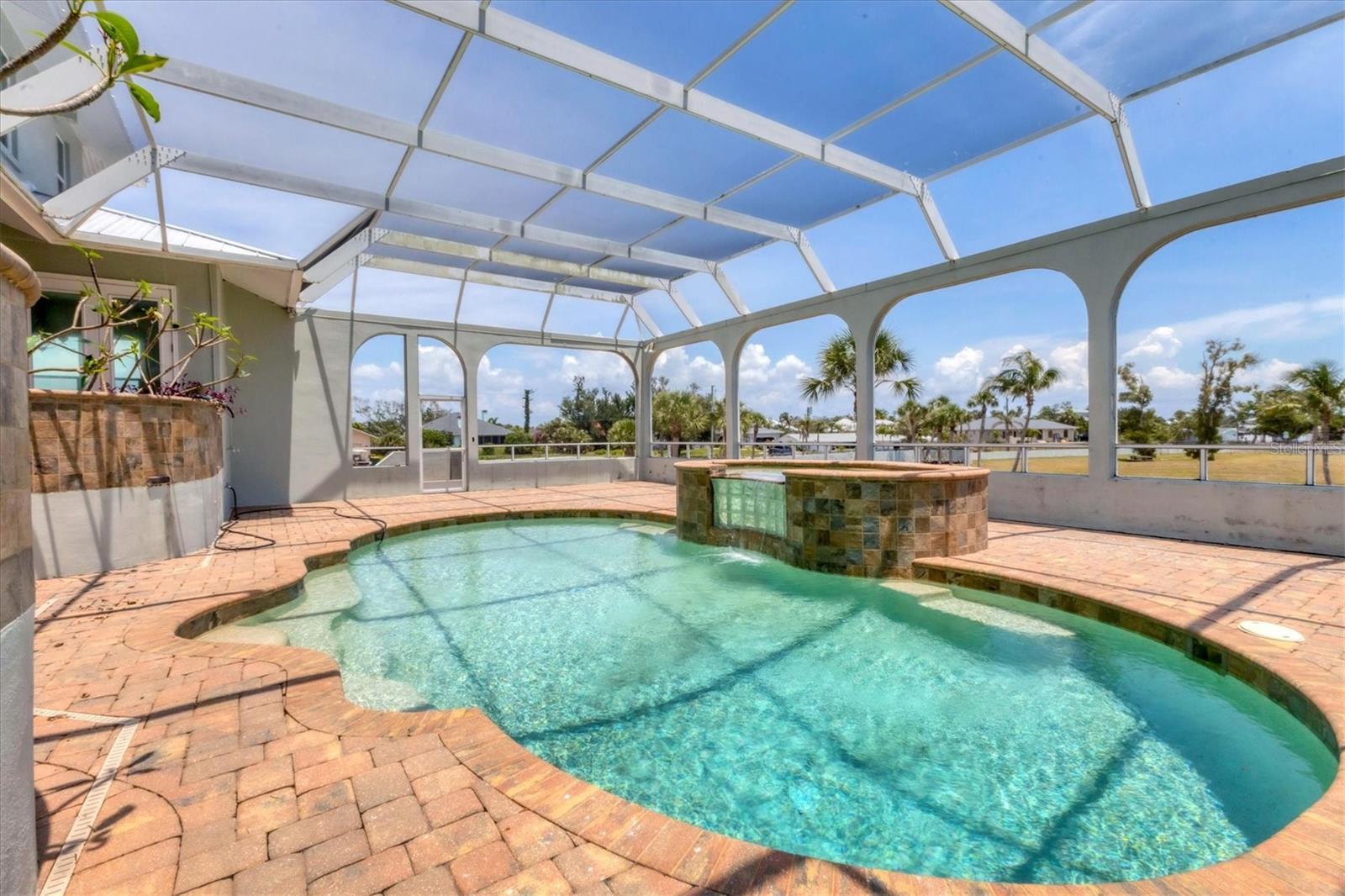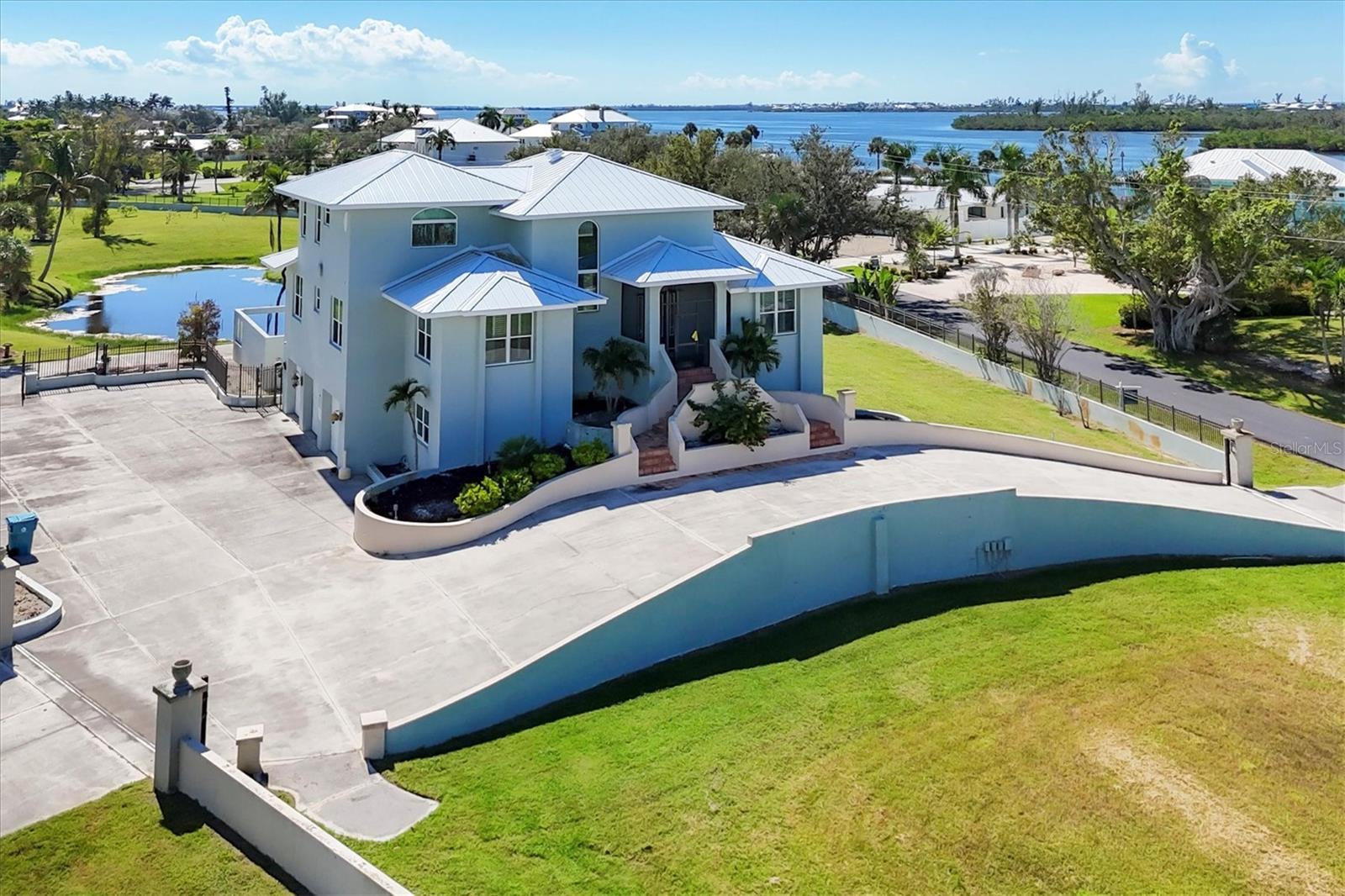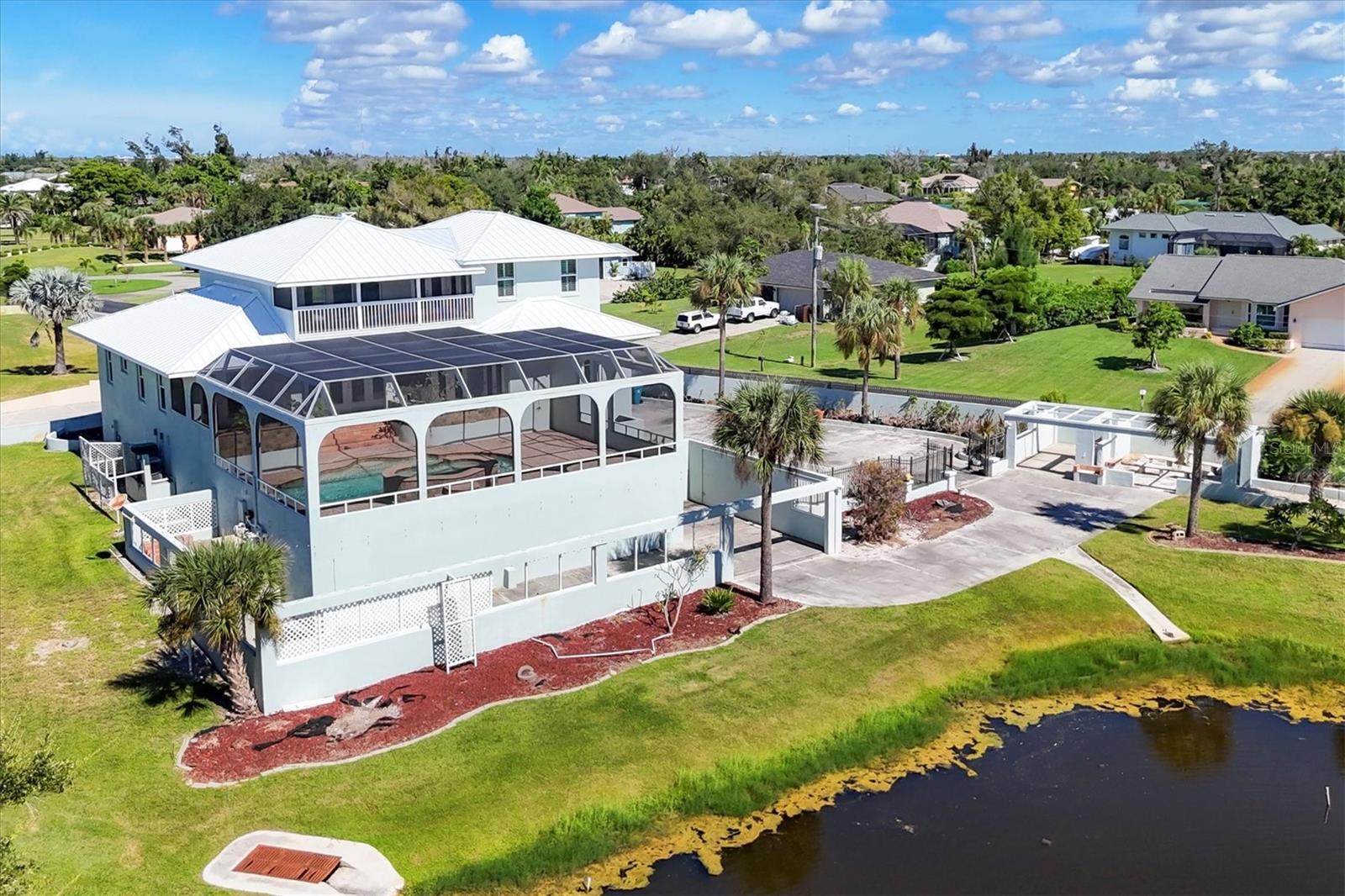 Significant renovation work has just been completed and new photos are now on MLS. Incredibly rare walled compound in the historic Vanderbilt developed neighborhood of Cape Haze. Beautiful Mediterranean style home is across the street from the Intracoastal Waterway with sensational partial views and a brand new standing seam metal roof. The spectacular property grounds include about 1.76 acres that could be subdivided for a second home to be built or split off. There's an expansive circular driveway, oversized three-bay garage, a private manicured lagoon with fountains, a gazebo/picnic area, 2,000 square foot screened lanai with an elevated pool and eight person spa that affords views of the water, all surrounded by 1,500 feet of privacy wall. The grand interior features about 3,500 sq.ft., three bedrooms and bathrooms, private office/den, 22 foot ceilings, and a completely renovated kitchen with custom cabinetry. Some drywall work is still needed in the garage ground level. Its a great situation for someone wanting to have a like-new home with their own custom design style and not have to wait more than two years for a new construction. The elegant neighborhood showcases tree-lined streets with towering banyans and large-acreage properties. A short walk to the Association kayak launch or quick boat trip to the 400 ft of private beach that's next to the Don Pedro State Park. Enjoy the ultimate coastal lifestyle being just minutes from Boca Grande, miles of pristine sandy beaches, three full service marinas, essential shopping, plentiful dining options, dozens of golf courses, and world-class fishing and boating.