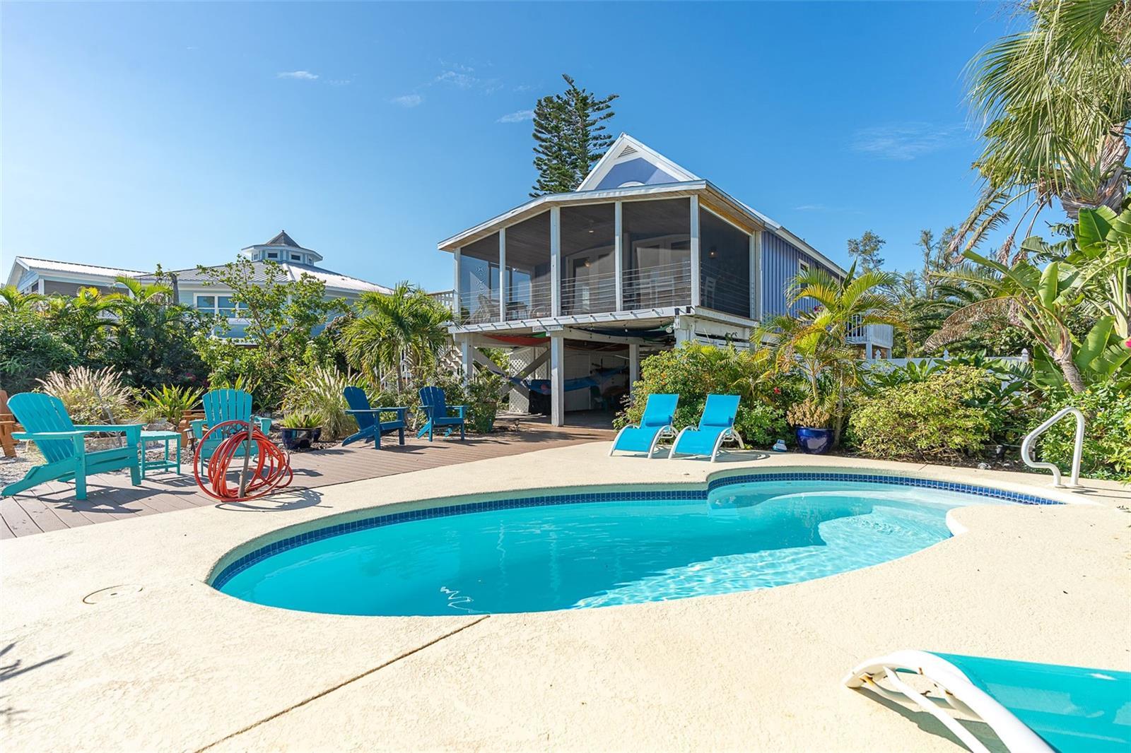 Palm island charm. Are you hopinmg to get away from it all? This is the ideal location. Palm island is a beautiful barrier island in SW Florida, accesable by car ferry or boat. This adorable 3 bedroom 1 and a half bath home speaks to your need for sun-filled lazy days by the pool, catching your dinner right off the dock, and strolling the pristine white sand beaches Palm Island is known for! Only two minutes by golf cart to spectacular sunsets and shelling! Lots of tropical foliage, and a back yard set up for spending days and evenings outside - screened porch for those breezy evenings, and an open deck underneath with lots of sitting room - you will hardly ever be inside! Minutes to the blue-green waters of the Gulf of Mexico! Come and enjoy all the island has to offer. Accommodates: 6 guests maximum. Beds: 3 Queens, 1 Twin. Amenities include: Air-Conditioned, Washer/Dryer, Linens Included, Dishwasher, Microwave, Toaster, Coffeemaker, Blender, Dishes/Utensils Provided, Cable TV, WIFI Pets require OWNER APPROVAL Breed and size limits apply. Pet fee is $150 per pet plus tax. Extras: WIFI, Private Pool, Private Dock, Golf Cart (seats 4), Outside Shower, Propane Grill and Charcoal Grill. **Reservations booked for less than 5 nights constitutes a higher nightly rate** Sorry, No Smoking. Pets are permitted upon owner approval and require a $150 non-refundable pet fee. Please note rates are subject to 12% tax, cleaning and reservation fee. $500.00 Refundable Security Deposit also required. Located directly in between Sarasota and Ft. Myers on Southwest Florida's Gulf Coast, Palm Island is as close as you can get to Old Florida! Beautiful barrier island, that offers sandy beach paths and the turquoise waters of the Gulf of Mexico. Take the car ferry over to decompress and escape the rush and routines! Golf carts are the preferred method of transportation! There is one restaurant on the island, as well as a place to get ice cream. Come relax and unwind in a secluded tropical paradise. Palm Island is for those seeking a respite from the hectic pace of the mainland and the hassles of everyday life. Escape to Palm Island where you can Stay a Week or a Lifetime! **PLEASE NOTE: This is a bridgeless, barrier island that is accessed by car ferry or private boat. Call us for details! **NO BOOKING IS CONFIRMED/FINALIZED UNTIL you have been contacted by Tarpon Rental Services staff!