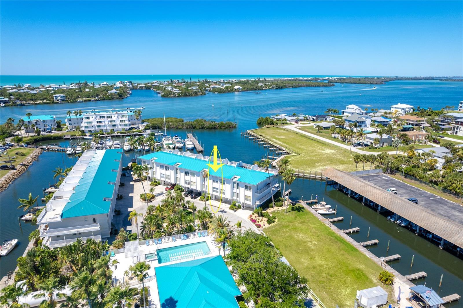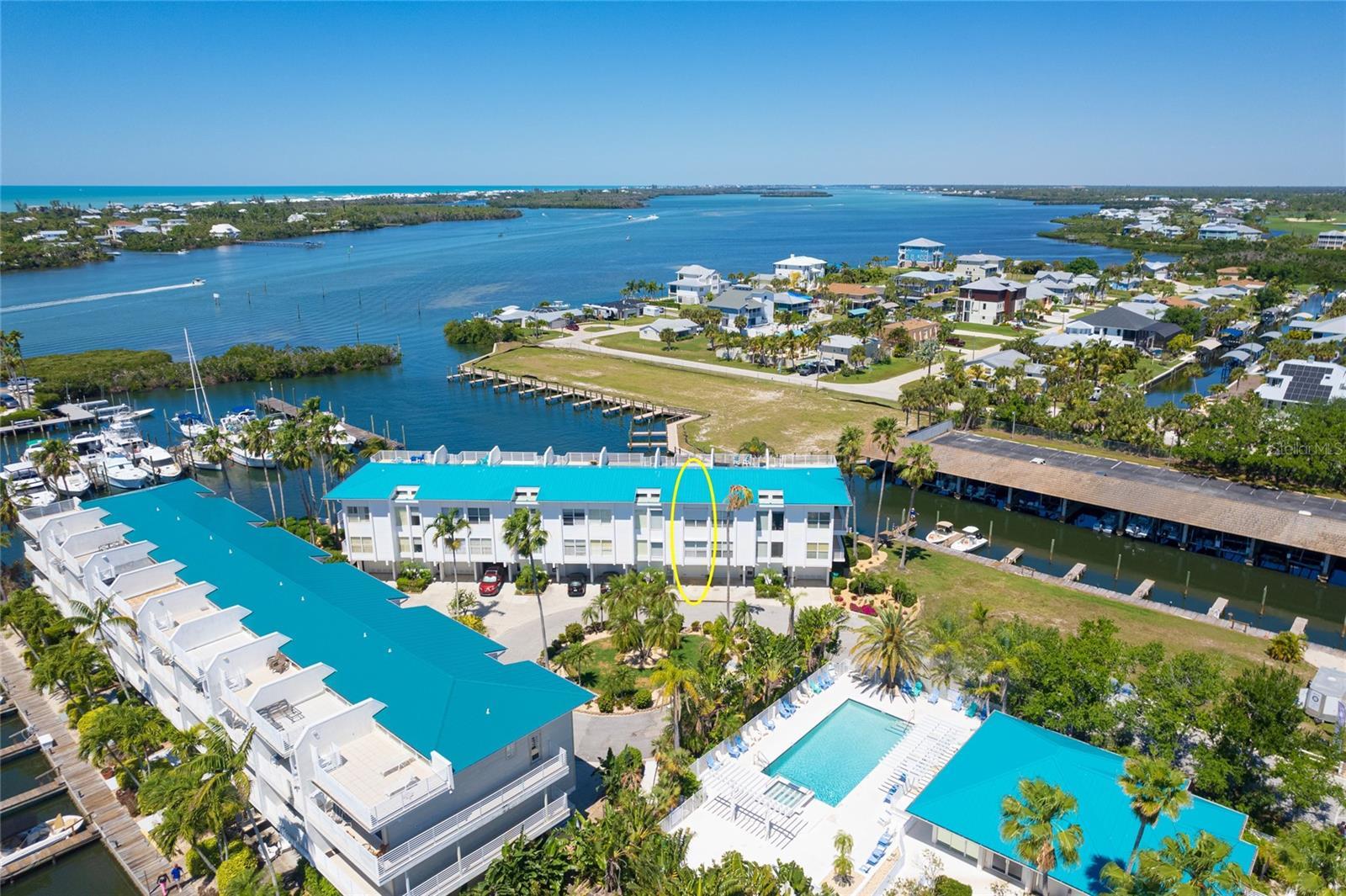 Welcome to a slice of paradise where each day ends with a panoramic sunset spectacle! Presenting a seasonal haven: a 3-bedroom, 3-bathroom townhouse offering the perfect blend of comfort and coastal charm. With an attached garage, your own private rooftop terrace, and a balcony designed for relaxation, this gem is turnkey-ready for seasonal living or as a high-demand rental opportunity. Step inside from your first-level garage and find yourself in a richly tiled space that seamlessly transitions to your exclusive waterside outdoor sanctuary through sliding glass doors. Imagine spending laid-back afternoons here, as the gentle lapping of water sets the tone for total relaxation. The journey to tranquility continues upstairs where spacious bedrooms offer solace and space for rest and rejuvenation. The second level isn’t just practical with its separate laundry room, but it symbolizes retreat, especially in the master bedroom with its own private balcony—your front-row seat to views of the marina, inter-coastal calm, and the Gulf of Mexico’s boundless beauty. The ascent to the third floor is an invitation to grandeur with high ceilings and an open kitchen concept that features a breakfast bar—a perfect nook for morning feasts and quick bites. Also occupying this level is a third bedroom, cozily positioned to face the entrance’s tropical panorama. And if that wasn't enough, the private rooftop balcony accessed via a spiral staircase is the crowning glory, offering unmatched vantage points and a sky-kissing perch from which you can drink in the vast water vistas. With the marina a stone’s throw away and a crystal-clear swimming pool just a heartbeat from your doorstep, you’ll find the essence of the Florida lifestyle at your fingertips. Navigate the smooth waters of the inter-coastal, venture out to the nearby golf courses, dive into the warm embrace of the Gulf of Mexico, and revel in world-class fishing. This isn't merely a seasonal property; it’s a lifestyle choice that assures boundless memories and an enchanting escape from the everyday. Here, at the edge of endless waters, is where your seasonal story begins.