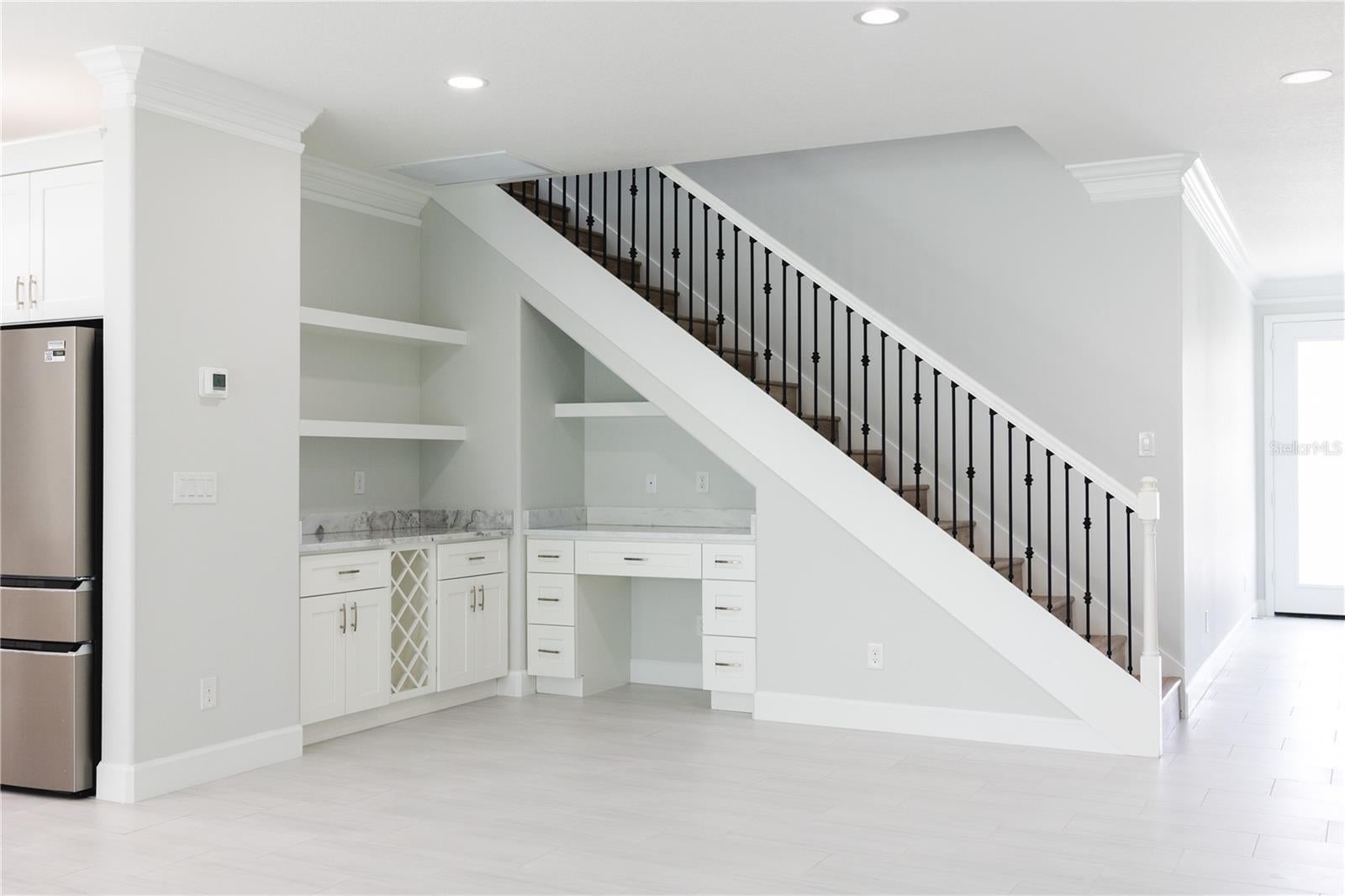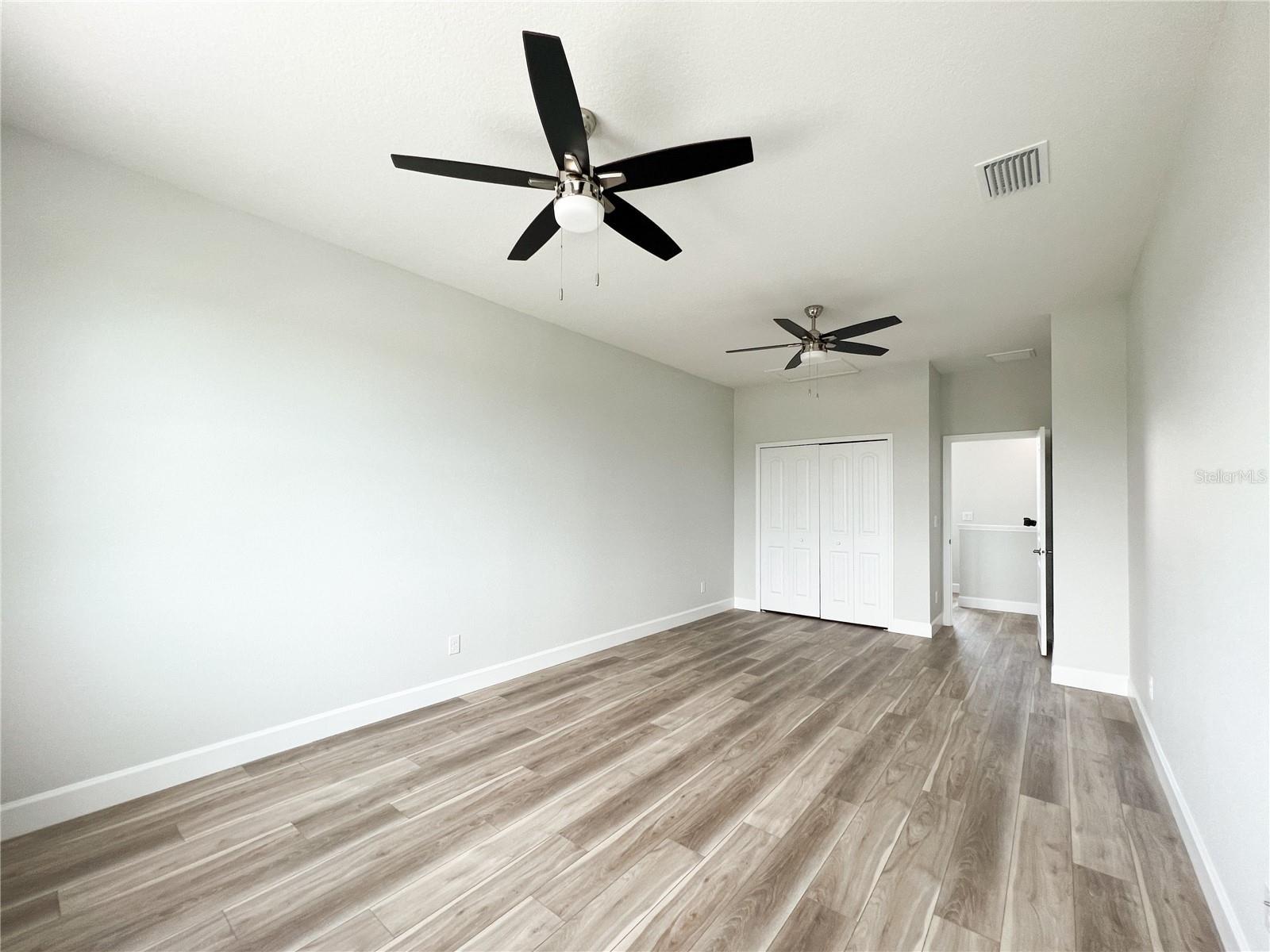 - Ceiling Fans(s), Crown Molding, Eat-in Kitchen, Open Floorplan, Primary Bedroom Main Floor, PrimaryBedroom Upstairs, Solid Surface Counters, Solid Wood Cabinets, Stone Counters, Walk-In Closet(s)