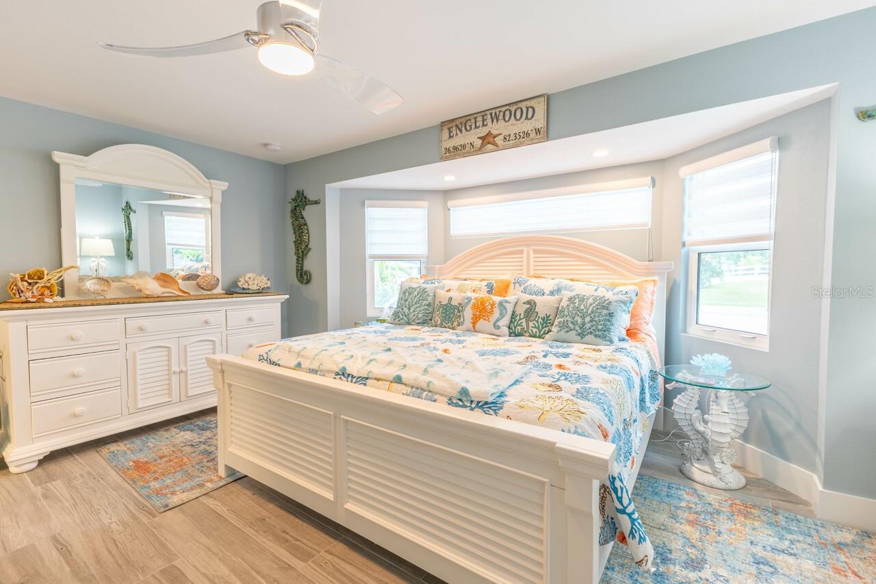 - Ceiling Fans(s), Living Room/Dining Room Combo, Primary Bedroom Main Floor, Solid Surface Counters, Solid Wood Cabinets, Split Bedroom, Thermostat, Walk-In Closet(s), Window Treatments