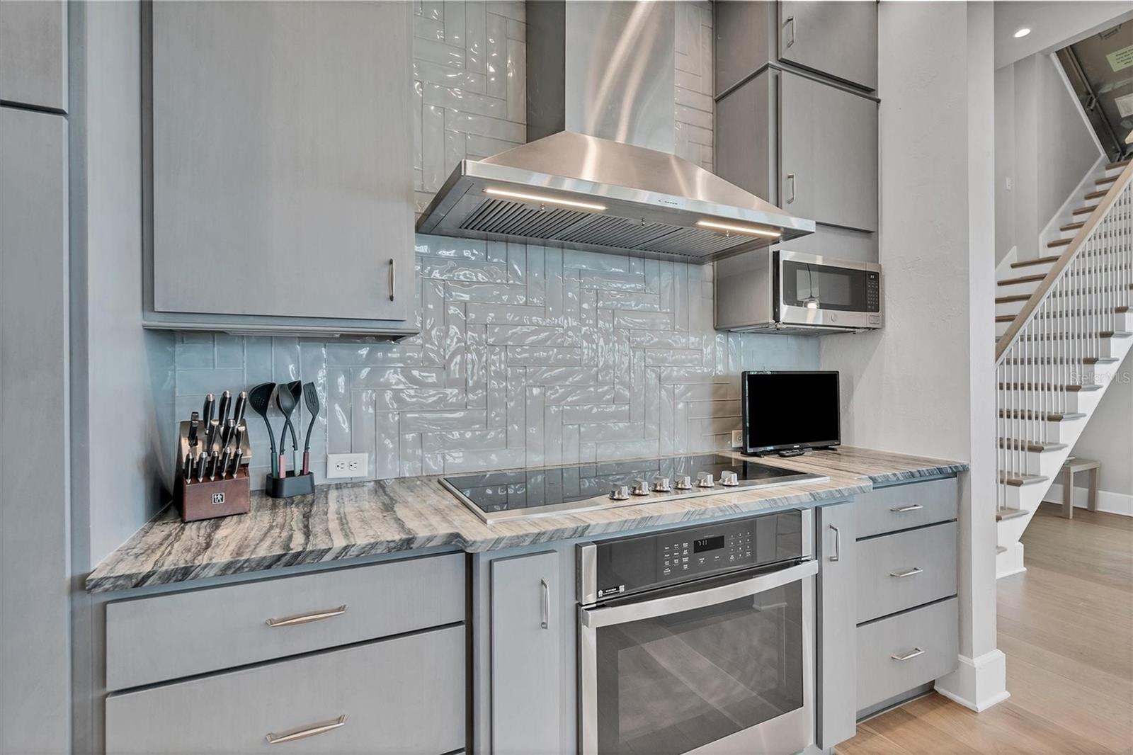 - Bar Fridge, Cooktop, Dishwasher, Disposal, Dryer, Electric Water Heater, Ice Maker, Microwave, Range, Refrigerator, Washer, Wine Refrigerator