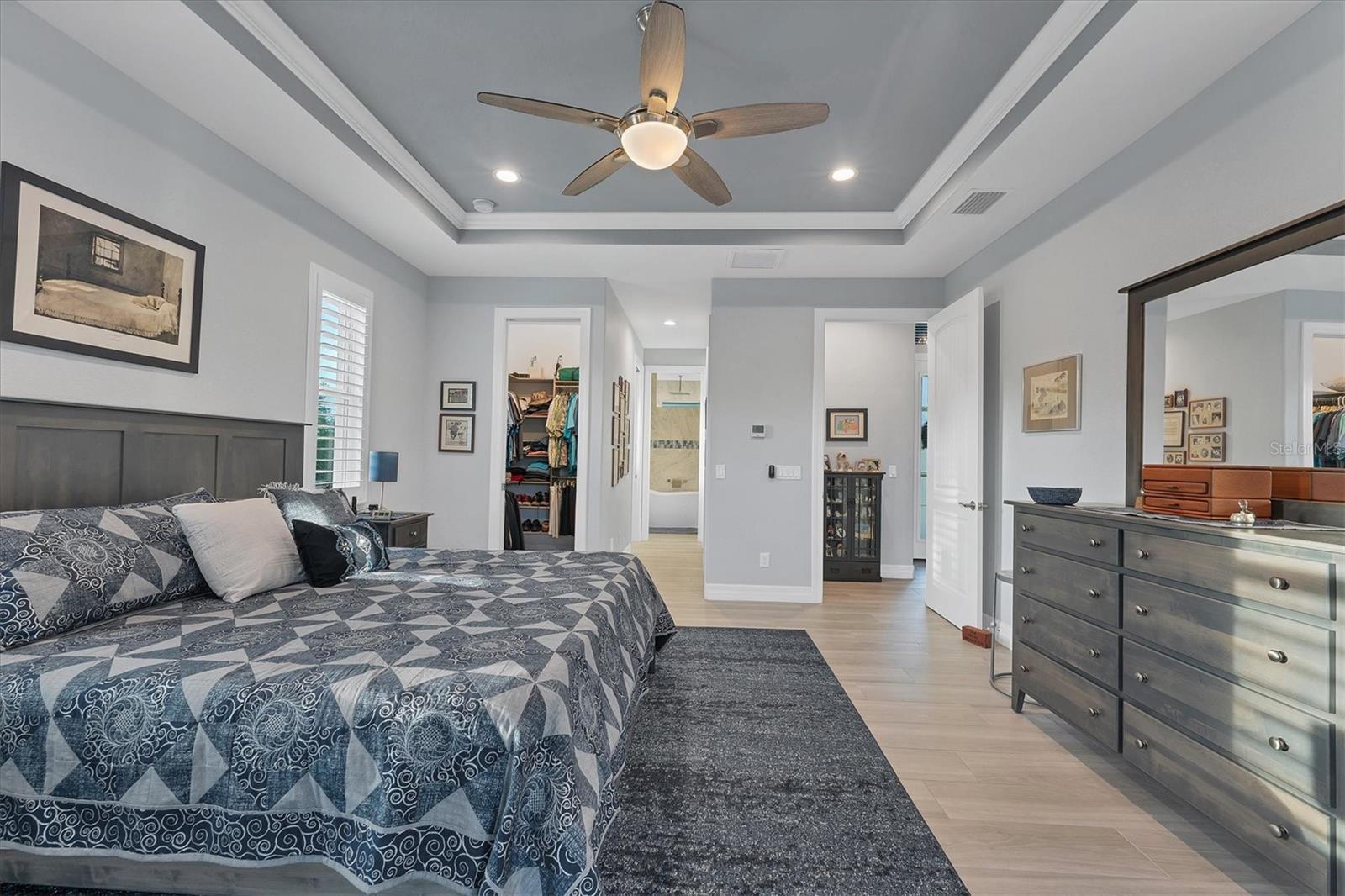 - Accessibility Features, Cathedral Ceiling(s), Ceiling Fans(s), Central Vaccum, High Ceilings, Kitchen/Family Room Combo, Open Floorplan, Primary Bedroom Main Floor, Solid Wood Cabinets, Split Bedroom, Stone Counters, Thermostat, Tray Ceiling(s), Vaulted Ceiling(s), Walk-In Closet(s), Window Treatments