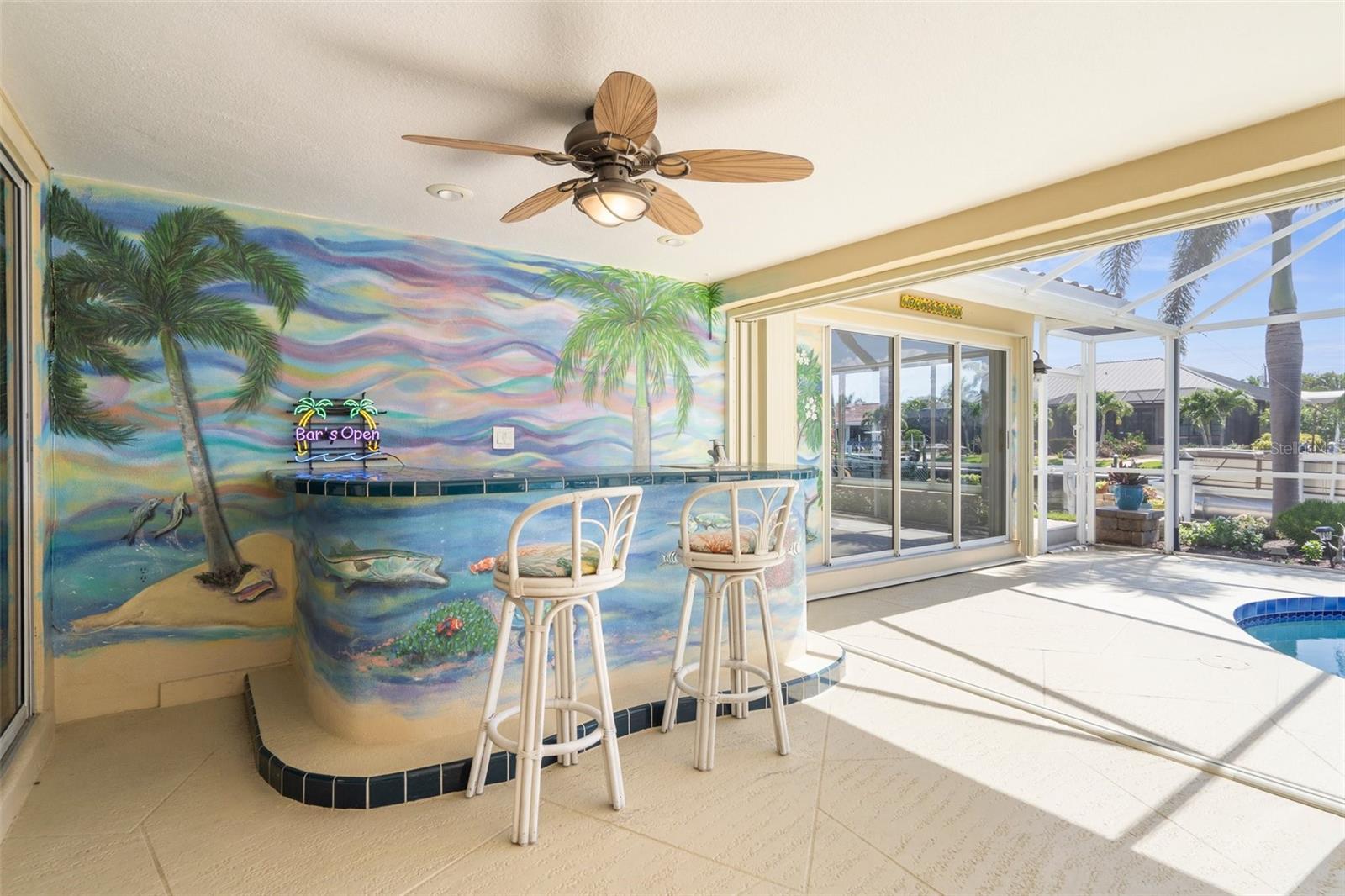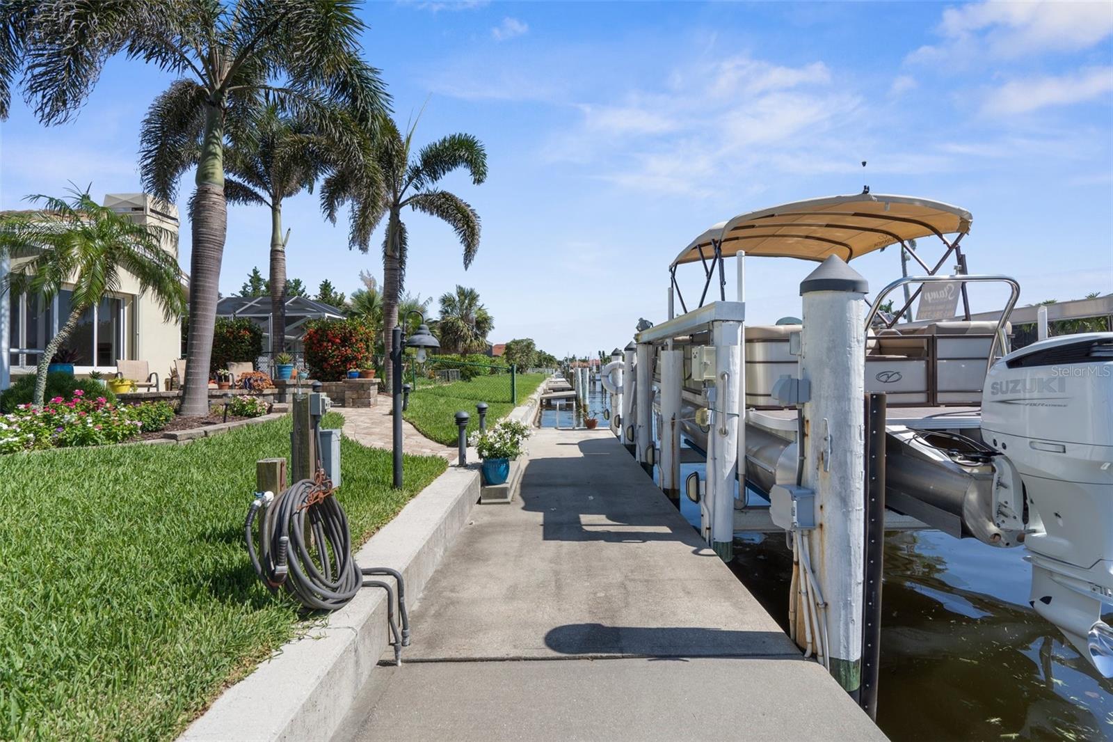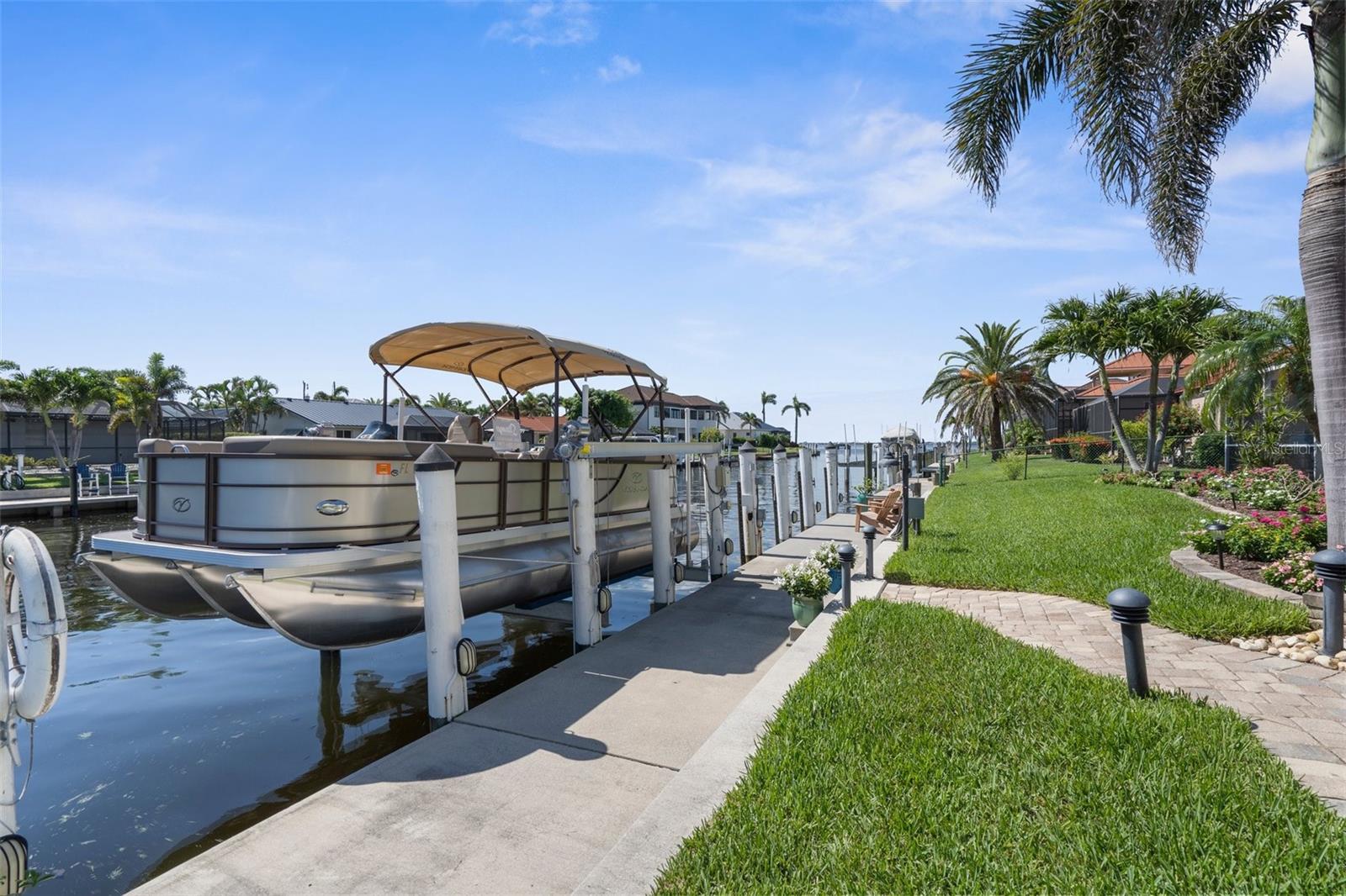 One or more photo(s) has been virtually staged. Price Improvement! Welcome to Your Waterfront Oasis in Punta Gorda Isles Be sure to watch the Virtual Tour in Link 1 Step into this beautifully upgraded 3-bedroom, 2-bathroom home, perfectly situated on a premier sailboat-access canal just seconds from the serene Peace River. Enjoy direct, no-bridge access to Charlotte Harbor and the Gulf of America, making this an unbeatable location for boating enthusiasts. A true boater’s paradise, this property features 80 feet of city-maintained seawall, a 60-foot dock, and a new 12,000-pound boat lift—providing effortless access to open waters right from your own backyard. Experience the best of Florida outdoor living with a spacious covered lanai, elegant paver patio, and a sparkling saltwater pool and spa with a tranquil waterfall. Surrounded by lush tropical landscaping—including a mature mango tree, key lime tree, vibrant flower beds, and swaying palms—your backyard truly feels like a private resort. Inside, the home impresses with a New A/C, and fully renovated kitchen featuring sleek finishes, brand-new appliances, and ample counter space, all seamlessly integrated into a bright, open-concept living and dining area—perfect for entertaining or relaxing in comfort. A whole-house water softener/ filtration system ensures clean, high-quality water throughout. With a brand-new 2025 tile roof and a transferable flood insurance policy offering added value, security, and savings, this home is not only beautiful but also built for lasting peace of mind. Whether you're watching the sunset from your lanai, cruising out for a day on the water, or unwinding by the pool, this is your private slice of paradise. Don’t miss this rare opportunity to own prime waterfront property in one of Southwest Florida’s most desirable communities.