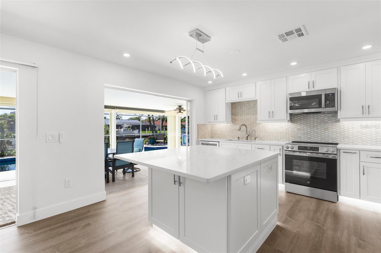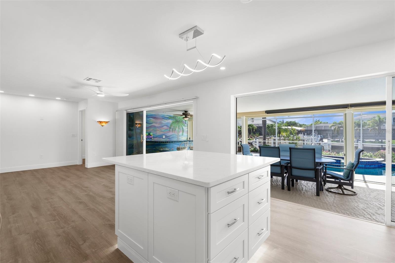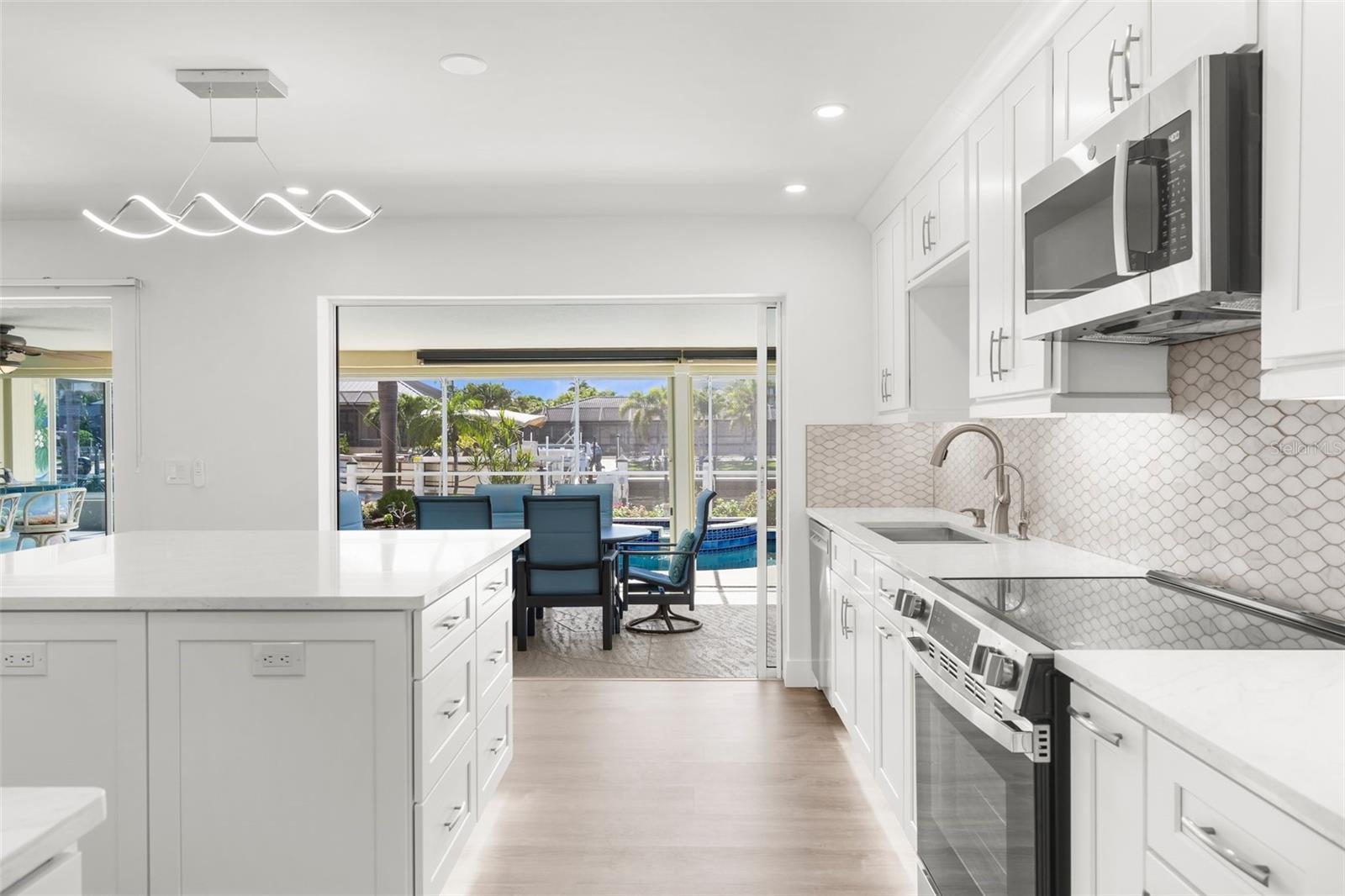 One or more photo(s) has been virtually staged. Price Improvement! Welcome to Your Waterfront Oasis in Punta Gorda Isles Be sure to watch the Virtual Tour in Link 1 Step into this beautifully upgraded 3-bedroom, 2-bathroom home, perfectly situated on a premier sailboat-access canal just seconds from the serene Peace River. Enjoy direct, no-bridge access to Charlotte Harbor and the Gulf of America, making this an unbeatable location for boating enthusiasts. A true boater’s paradise, this property features 80 feet of city-maintained seawall, a 60-foot dock, and a new 12,000-pound boat lift—providing effortless access to open waters right from your own backyard. Experience the best of Florida outdoor living with a spacious covered lanai, elegant paver patio, and a sparkling saltwater pool and spa with a tranquil waterfall. Surrounded by lush tropical landscaping—including a mature mango tree, key lime tree, vibrant flower beds, and swaying palms—your backyard truly feels like a private resort. Inside, the home impresses with a New A/C, and fully renovated kitchen featuring sleek finishes, brand-new appliances, and ample counter space, all seamlessly integrated into a bright, open-concept living and dining area—perfect for entertaining or relaxing in comfort. A whole-house water softener/ filtration system ensures clean, high-quality water throughout. With a brand-new 2025 tile roof and a transferable flood insurance policy offering added value, security, and savings, this home is not only beautiful but also built for lasting peace of mind. Whether you're watching the sunset from your lanai, cruising out for a day on the water, or unwinding by the pool, this is your private slice of paradise. Don’t miss this rare opportunity to own prime waterfront property in one of Southwest Florida’s most desirable communities.
