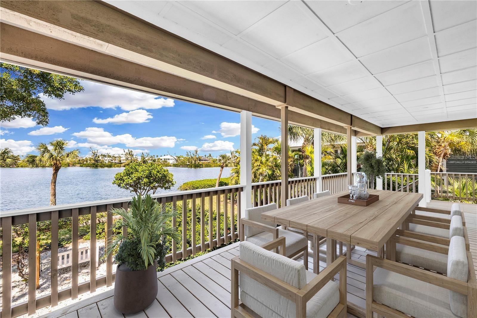One or more photo(s) has been virtually staged. This waterfront Seawatch residence in Boca Grande offers over 3,000 sq. ft. of living space showcasing stunning views of Lake Gasparilla and its abundant birdlife. This spacious home features three bedrooms, three bathrooms, and multiple bonus areas that could become your office or library. Expansive glass sliding doors lead to a large open porch with unhindered lake views. The eat in kitchen was recently outfitted with new stainless appliances and has plenty of counter space and a roomy pantry. The top floor leads to an en-suite main bedroom with updated bath, a private, open deck, and an upper-level “Seawatch” room. This property has impact, storm rated doors and windows, hardwood floors, updated fixtures and much more. As part of the popular, gated Seawatch community, residents enjoy two pools, three tennis courts, and private beach access to the islands best beach.