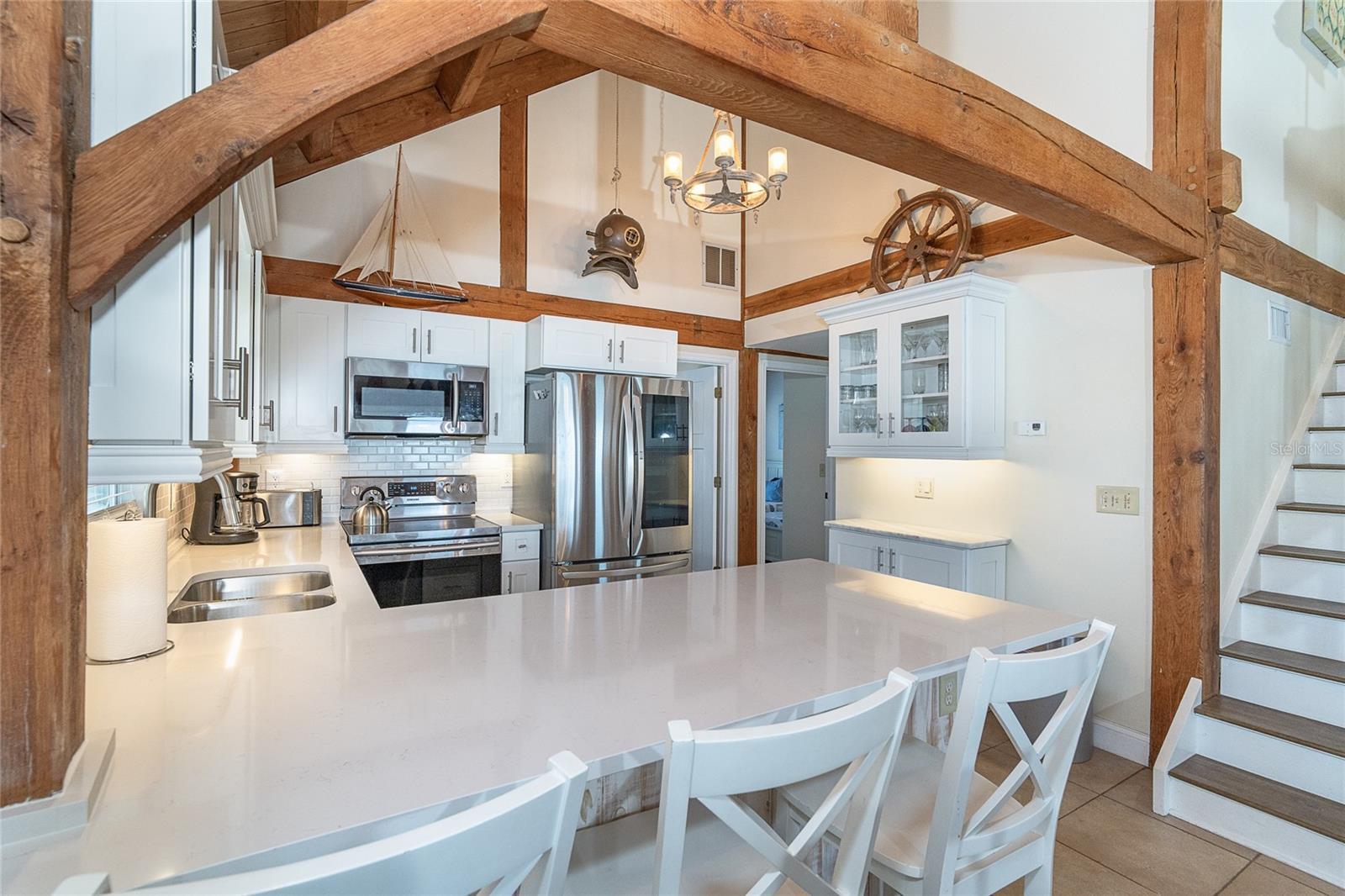 - Ceiling Fans(s), Eat-in Kitchen, Elevator, High Ceilings, Living Room/Dining Room Combo, Open Floorplan, Primary Bedroom Main Floor, Solid Wood Cabinets