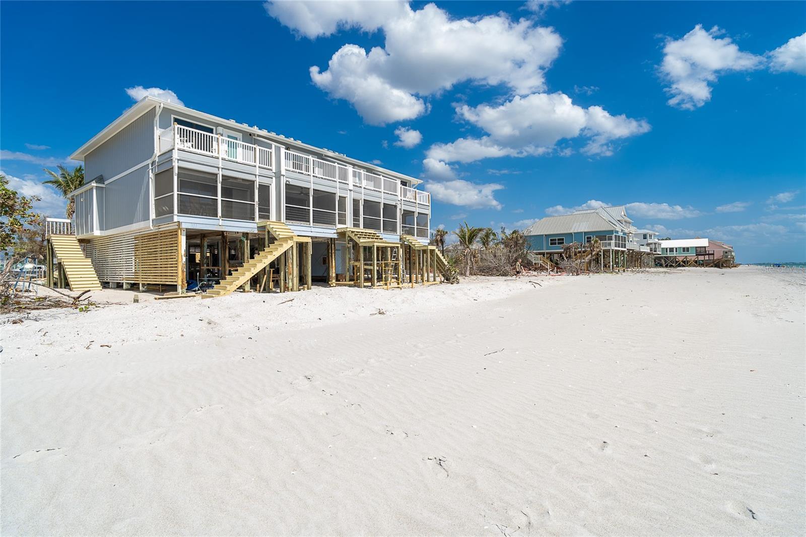 Two bedroom 2 and 1/2 bathroom townhouse in Colony Don Pedro. This is a middle unit in a 4 plex building directly on the Gulf of Mexico. Updates include: new roof, AC, electrical panels and meters, exterior painting, exterior gulf side deck off primary bedroom, steps gulf side and north side of building and crab trap. Being sold turnkey furnished. Rental income available upon request. Don Pedro-Knight-Palm Island is a bridgeless , barrier island situated between Ft. Myers/Naples to the south and Sarasota/Tampa to the north. Accessible only via a private boat or 4 minute car passenger ferry ride. Association amenities, community pool, tennis, and boat dockage, are currently under repair from the hurricanes. The exterior stairs on this unit are being repaired and should be completed shortly.