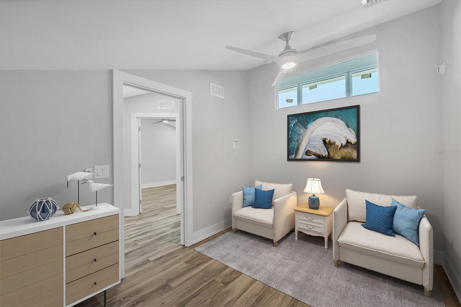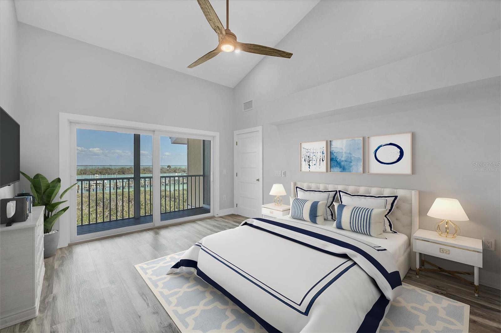 One or more photo(s) has been virtually staged. Rarely available 3 bedroom, 3 bath, plus den/office condo at Boca Grande North! Experience breathtaking Bay-to-Gulf views from this second-floor location which offers a front private lanai, an open-concept kitchen, and 2 bedrooms and 2 bathrooms on the first living level. Unlike other properties, this unit has volume ceilings in the living area and a BONUS SECOND FLOOR with a bedroom, bath and den/office! Completely renovated including a new roof, all impact windows and sliders and luxurious vinyl flooring throughout. Equipped with GE Profile stainless steel appliances, quartz countertops in kitchen and baths, Whirlpool washer/dryer, and elegant finishes including a separate bar area with wine refrigerator. Enjoy both stunning sunrises over Charlotte Harbor from your east-facing balcony and spectacular Gulf sunsets from the west-facing lanai. Boca Grande North provides a secure gated community with a heated pool and spa, on site beach area with a seawall and optional boat docks for lease or purchase. Don't miss this exceptional chance to own a unique residence in this highly sought-after community.