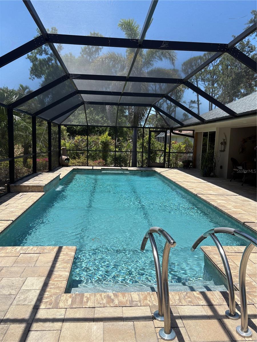 Under contract-accepting backup offers. New Year, New Price!…This hidden gem is a custom built home which is situated on a beautiful 141 X 88 landscaped lot. The lot next door is a separate parcel #0498080006 also 141 X 88 which together is approximately a 1/2 acre. Walking distance to Lemon Bay Park with bay access a kayak launch and walking trails. Meticulously maintained, move in ready this three bedroom and two bath spilt plan and separate lot includes workshop and RV or boat storage. Beautiful newer pool with large deck and pavers recently added in 2019, New roof in 2025, beautiful Travertine floors through out recently polished and sealed. The kitchen has solid wood cabinets with soft close and granite counter tops. Large pocket sliding glass door from living room to the patio and pool. Looking out back of home is a very private and lush back and side yard. The interior is light and bright with views from guest room and Main bedroom, the kitchen and living room with sliding glass doors looking out to the pool. Your private sanctuary is a large main bedroom with a dream main bathroom which includes his and her sinks with Blue Granite and separate make up vanity a large jacuzzi tub and separate shower. Large walk-in closet. Separate laundry room off of garage entering into the kitchen. All kitchen appliances included including the Washer and Dryer. Conveniently located close to Dearborn St. with numerous shops and restaurants, great schools, minutes to amazing Englewood Beach and Manasota Beach.