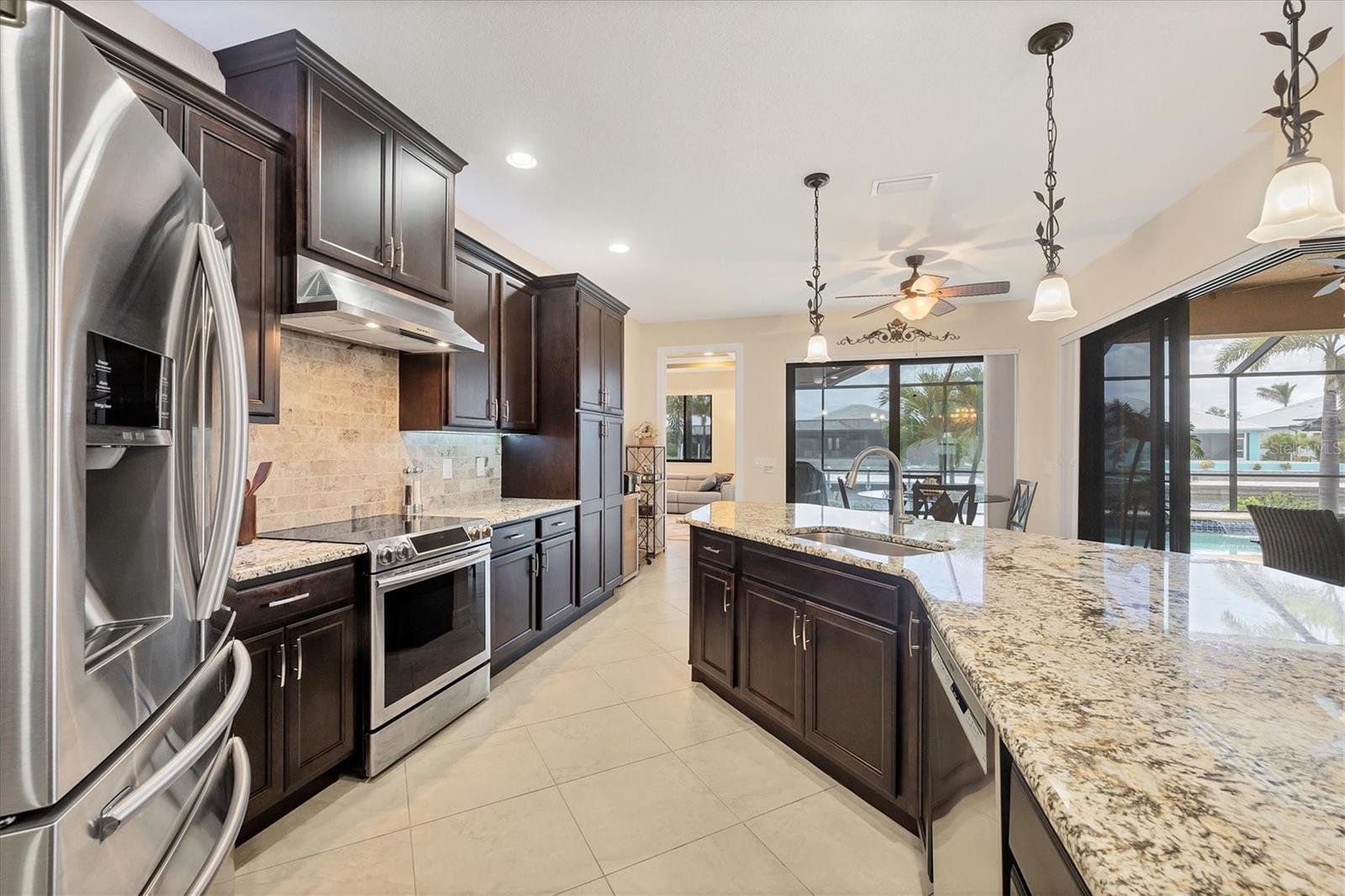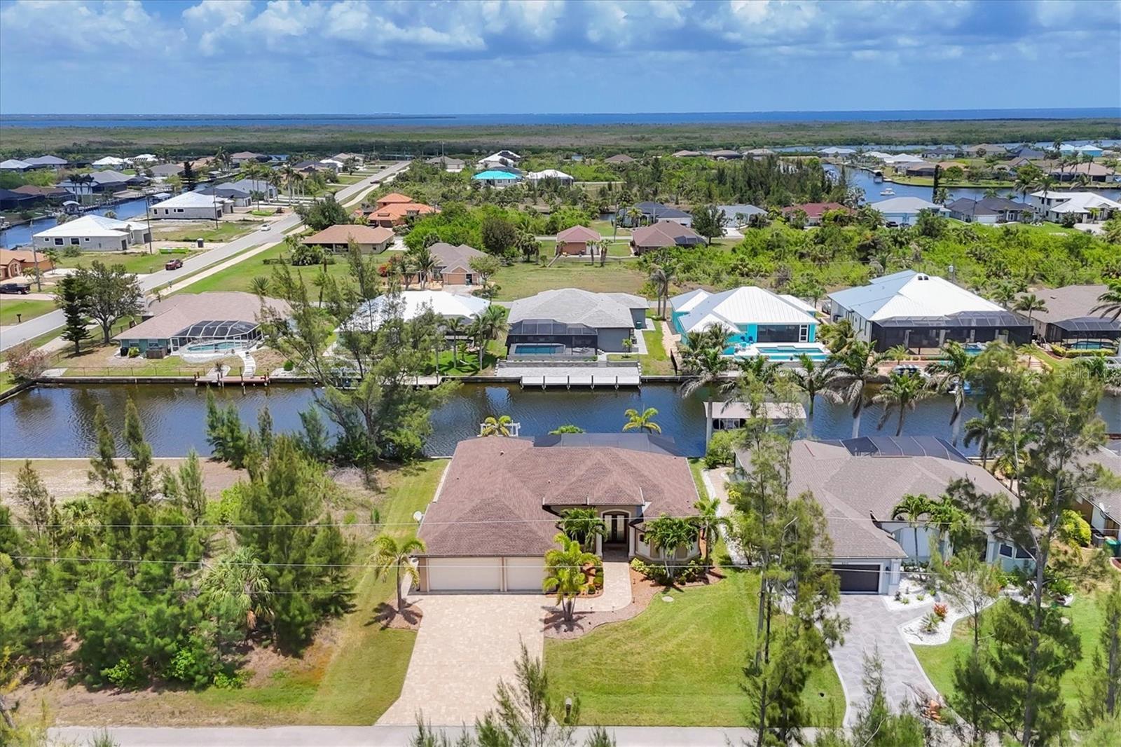 MARKET ADJUSTMENT!! ENJOY "THE FLORIDA LIFESTYLE" in this Beautiful Custom Built POOL HOME in one of the most sought after WATERFRONT BOATING communities on the GULF COAST!!! This distinguished well mantained home is absolutely STUNNING!!! Features include 3 BEDROOMS, 2 1/2 BATHS, Great Room with Double Tray Ceiling, 8ft 90 Degree Sliders to Lanai and Pool Area, Formal dining room and a large BONUS FAMILY room. This Home is Elegantly appointed and boasts a very spacious OPEN concept design for the distinguished buyer!!! Home has beautiful light fixtures, ceiling fans, PORCELAIN TILE FLOORS throughout, crown molding and tray ceilings. SPACIOUS Kitchen is tastefully appointed with gorgeous wood cabinetry, underlighting and upgraded GRANITE countertops, large ISLAND with BREAKFAST BAR, Lots of storage and counter space, TILED BACKSPLASH, STAINLESS STEEL appliances include refrigerator, hooded range, dishwasher and microwave, Soft close and pull out drawers, PENDANT and recessed lighting and a large BREAKFAST NOOK. Spacious laundry room with Maytag WASHER & DRYER, Built-in cabinetry with underlighting, tile backsplash, utility sink, GRANITE countertops, upright freezer and a built-in DESK for crafts/sewing. All NEW Smoke Detectors, Window Shades, NEW HEAT PUMP. Split guest bedrooms are spacious and have a nicely TILED guest bath. Primary bedroom has 8ft sliders to pool and lanai, tray ceiling, ceiling fan, 2 WALK-IN CLOSETS, Linen Closet a Nicely TILED Roman style walk-through shower, DUAL VANITIES with GRANITE countertops. Enjoy this spacious Paver lanai, HEATED SALTWATER POOL with Waterfall, NEW SALT Clorinator, NEW POOL PUMP, and POOL BATH with OUTDOOR SHOWER and a NEW POOL CAGE!!! MORE featuresi nclude NEW ROOF, Irrigation from canal and system has NEW IRRIGATION PUMP and Control Box. Approx. 80ft PAVER DOCK on SEAWALL with 6K BOAT LIFT with electric and water. SPRAY FOAM INSULATION, Tinted IMPACT WINDOWS, Meticuliously landscaped with Mature trees, 3 CAR GARAGE with epoxy flooring, utility sink and a full 3 Car Paver Driveway. SOUTH GULF COVE is only minutes away from Beautiful Southwest FLORIDA BEACHES in BOCA GRANDE and MANASOTA KEY with boating access to the GULF and surrounding ISLANDS. Community offers several nice PARKS and playground, BOAT RAMP, marinas and a clubhouse and yacht club you can join!!! Several GOLF COURSES, WORLD CLASS FISHING, shopping and great restaurants are only minutes away!!! EXPERIENCE THE FLORIDA LIFESTYLE!!!