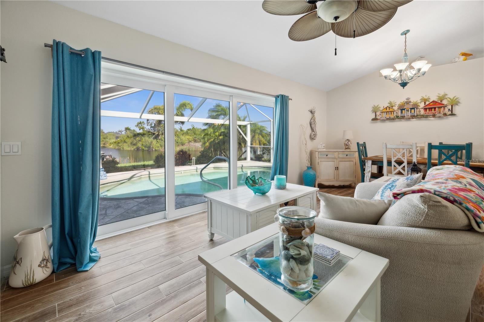 AVAILABLE NOW to December 28, 2026. for RENT WEEKLY RATE $995, or DAILY for only $150/Day! This Waterfront Pool Home with Wide Water Views, HEATED POOL, Boat Dock and Screened Lanai and Pool Deck is Available for Short-Term Rental! You will love this beautifully UPDATED Home featuring 2 Bedrooms, 2 Bathrooms + additional DEN, ideal for use as a home office or guest space. This TURNKEY FURNISHED short-term rental offers direct water access and features a private boat dock (lift may be available for additional fee) and fish cleaning station—perfect for boating and fishing enthusiasts. The OPEN CONCEPT FLOOR PLAN features a light-filled Kitchen, Dining Rooms and Living Room with Tri-View Decorative Fireplace, High Impact Windows and Sliders, Coastal Decor and Furnishings, and SPECTACULAR views of the intersecting waterways. ENJOY a fully equipped kitchen with breakfast bar, volume ceilings and plank tile flooring throughout! The covered lanai is your outdoor living room, and flows seamlessly to the sparkling blue pool with Dolphin embellishments, offering an inviting space for unwinding and entertaining. Cast a line from the boat dock, and cook your catch of the day on the grill, watch your favorite sports teams on the outdoor TV, drive about 15 minutes to Englewood Beach or Boca Grande for a day of sunshine and seashells, or just stay home and relax by the pool. The choices are endless. Located in a relaxed and welcoming neighborhood close to beaches, shopping, restaurants, and recreational activities. Ideal for seasonal visitors, traveling professionals, or those looking for a serene retreat on the water. Available for Monthly or Shorter-Term Weekly Rental. Boat may be available for rent separately. Call today for availability and rates. ** THIS PROPERTY IS RENTED JAN-MAR 2026 ** RENTED December 26-30th **
