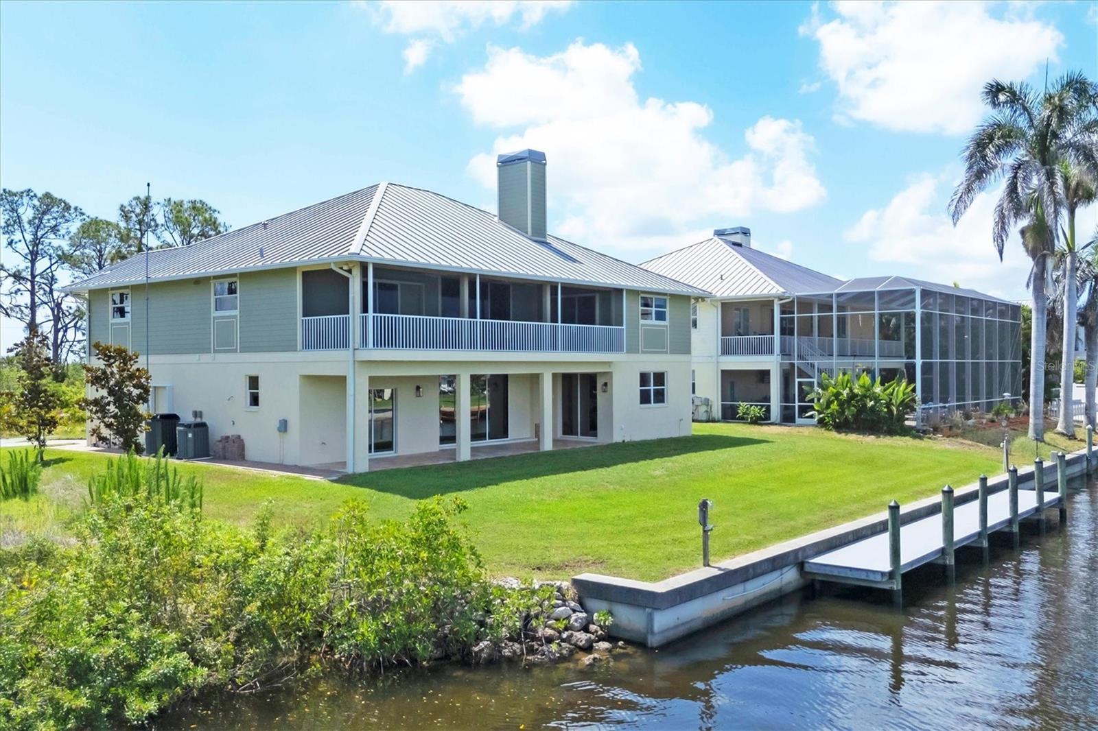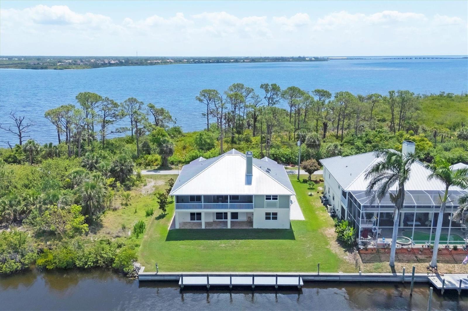 This exceptional custom-built waterfront residence is a rare offering for those who value superior craftsmanship, thoughtful design, and premier boating access. Perfectly positioned with sweeping views of the Myakka River from the front and tranquil canal frontage at the rear, the home delivers captivating water vistas from nearly every angle. Located in one of the area’s most sought-after boating corridors, it provides direct access to the Gulf of Mexico, Intracoastal Waterway, and Charlotte Harbor—making it an ideal retreat for avid boaters and coastal lifestyle enthusiasts. Built by a highly respected local builder, the home reflects enduring quality and meticulous attention to detail throughout. Solid construction, refined finishes, and functional design elements come together to create a residence that is as elegant as it is livable. The upper level showcases a spacious, well-appointed kitchen with warm wood cabinetry, pantry, and an expansive eat-in dining area—perfect for entertaining family and friends after a day on the water. Custom trim work, solid-core doors, and beautifully crafted wood staircases enhance the home’s timeless appeal, while a built-in dumbwaiter adds everyday convenience between levels. All bedrooms are generously sized, offering comfort and flexibility. The primary suite serves as a private sanctuary, featuring built-in window benches with storage, dual walk-in closets, and a luxurious bath with a floor-to-ceiling tiled shower, linen storage, and private commode. A thoughtfully placed pocket door provides added privacy for the guest suite and updated bath, while the third bedroom includes an oversized closet—ideal for guests or extended family. The lower level offers versatile living space with tile flooring throughout and is currently configured as a game and recreation area. Complete with a full bath, utility room with washer, dryer, and sink, and a bonus area easily converted into a fourth bedroom or office, this level opens directly to a covered patio—perfect for relaxed waterfront entertaining or unwinding after a day on the boat. Designed with durability and peace of mind in mind, the home features a metal roof, hurricane shutters, impact-rated garage doors, Hardie Board siding on the upper level, and solid block construction below. Additional highlights include dual A/C systems (one replaced in 2022), freshly painted exterior, finished garage floors, and a stunning upper lanai crafted from premium Ipe wood with sunshades and beautiful water views. Boaters will especially appreciate the 2019 composite dock with pilings, concrete seawall, outdoor shower, irrigation system, and extended paver driveway offering ample room for boat and trailer parking. The split garage—featuring a single bay plus a three-car tandem section—provides abundant space for vehicles, water toys, and marine gear. Just minutes from pristine beaches, renowned golf courses, upscale dining, and the charm of Southwest Florida’s coastal communities, this remarkable waterfront home delivers the perfect balance of luxury living and exceptional boating access. A true coastal masterpiece, it offers an unparalleled opportunity to embrace the waterfront lifestyle at its finest.