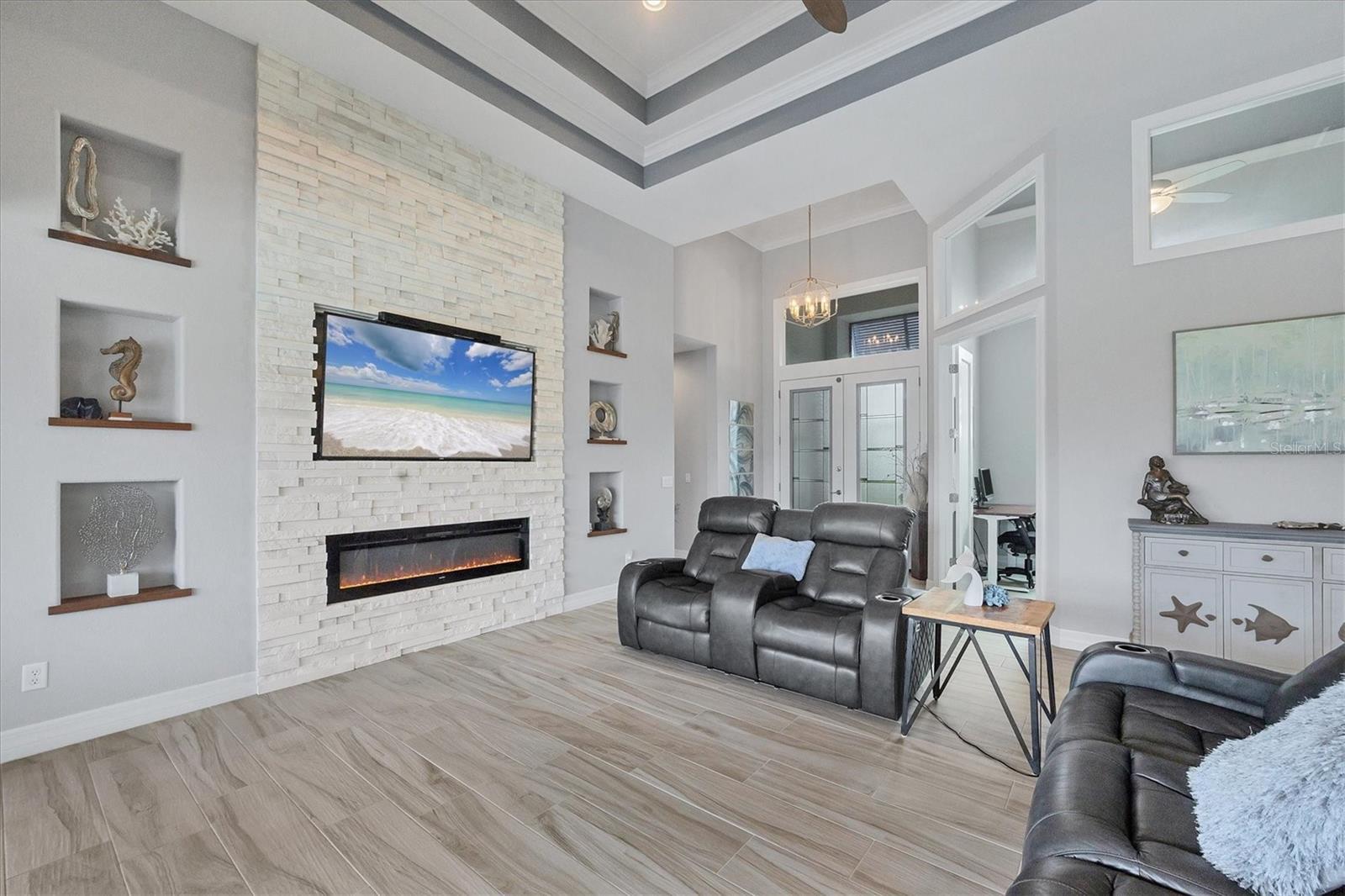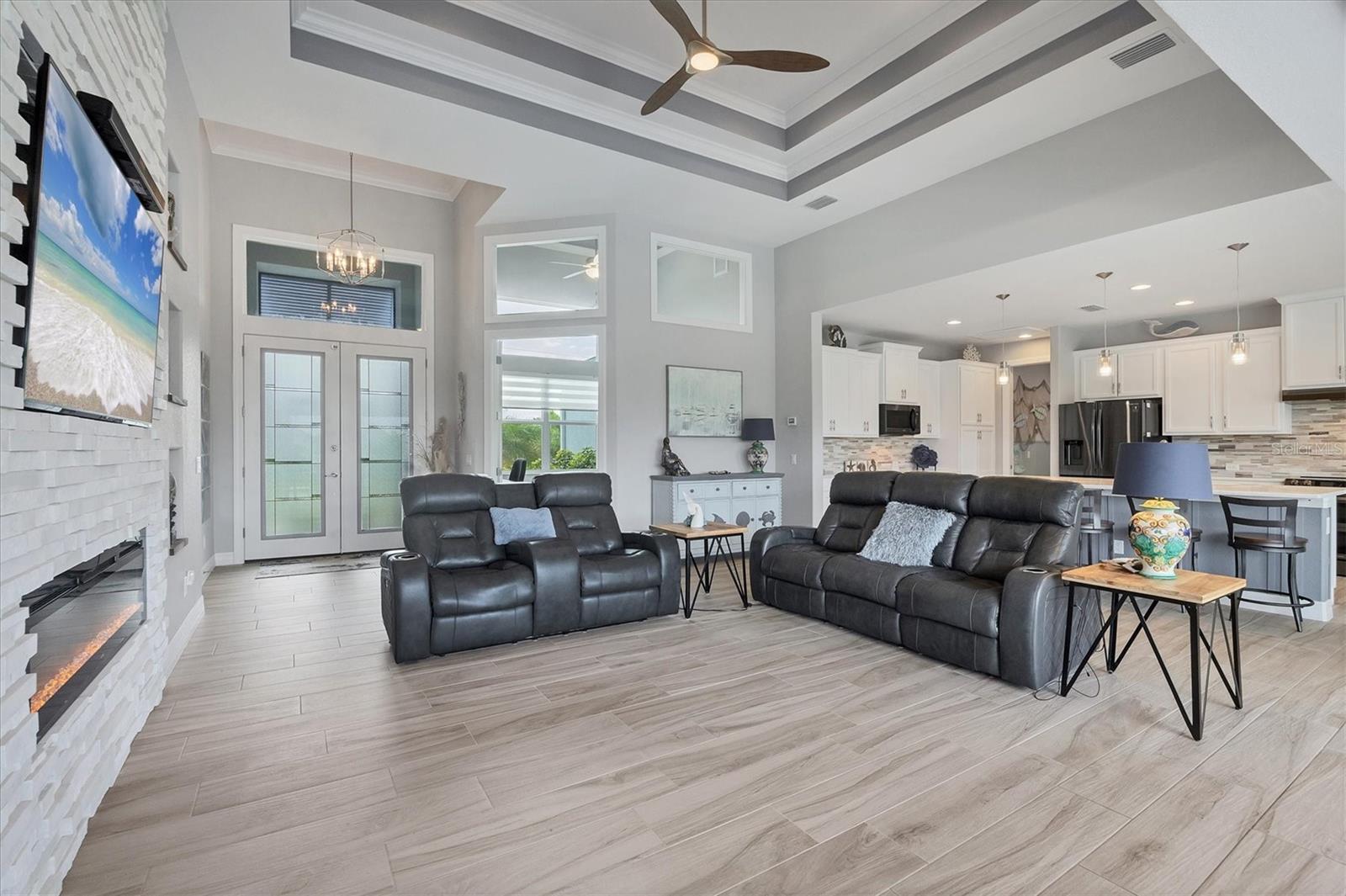 - Ceiling Fans(s), Coffered Ceiling(s), Crown Molding, Eat-in Kitchen, High Ceilings, Open Floorplan, Primary Bedroom Main Floor, Thermostat, Tray Ceiling(s), Walk-In Closet(s), Window Treatments