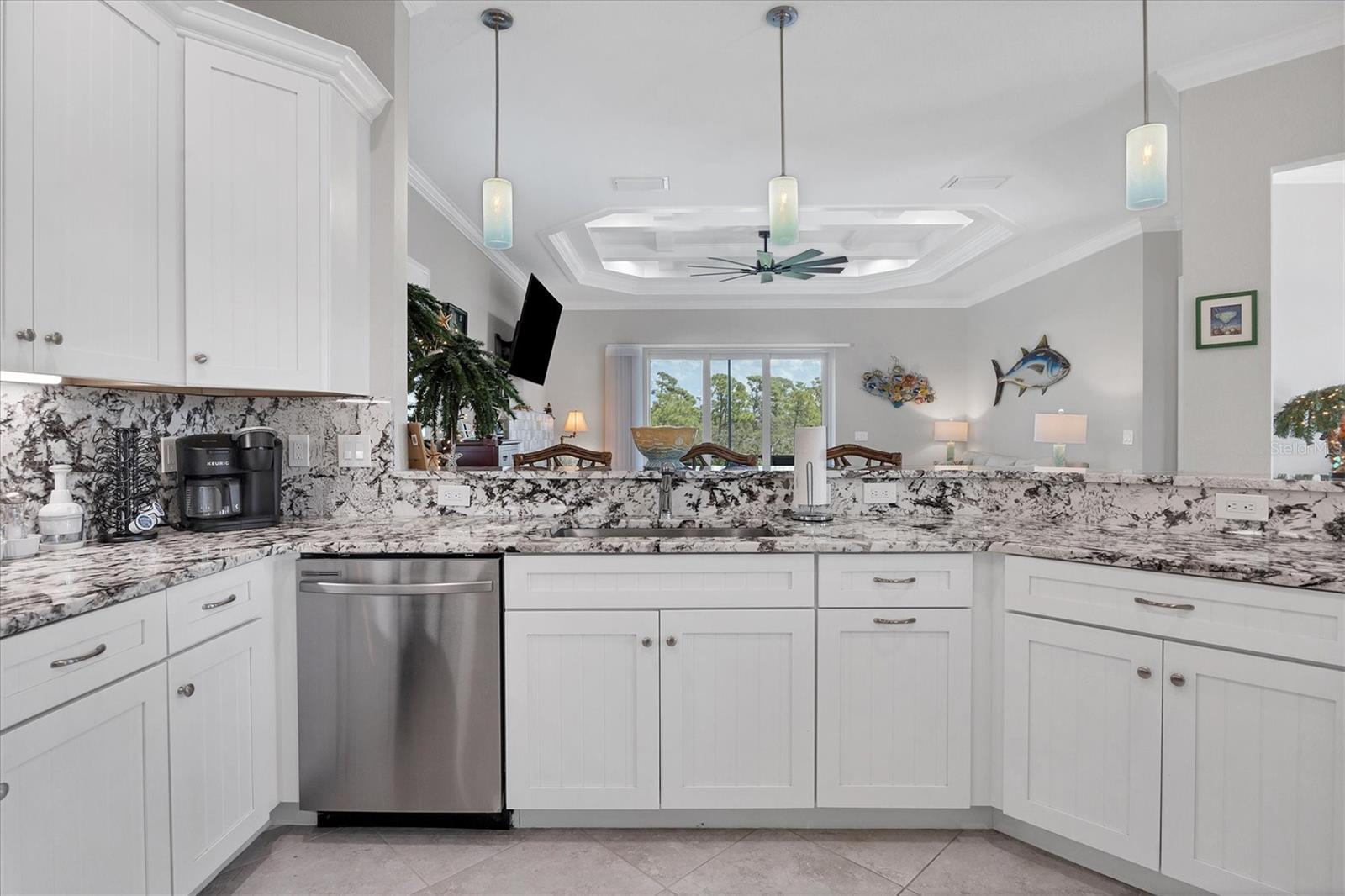 - High Ceilings, Open Floorplan, Split Bedroom, Stone Counters, Tray Ceiling(s), Window Treatments