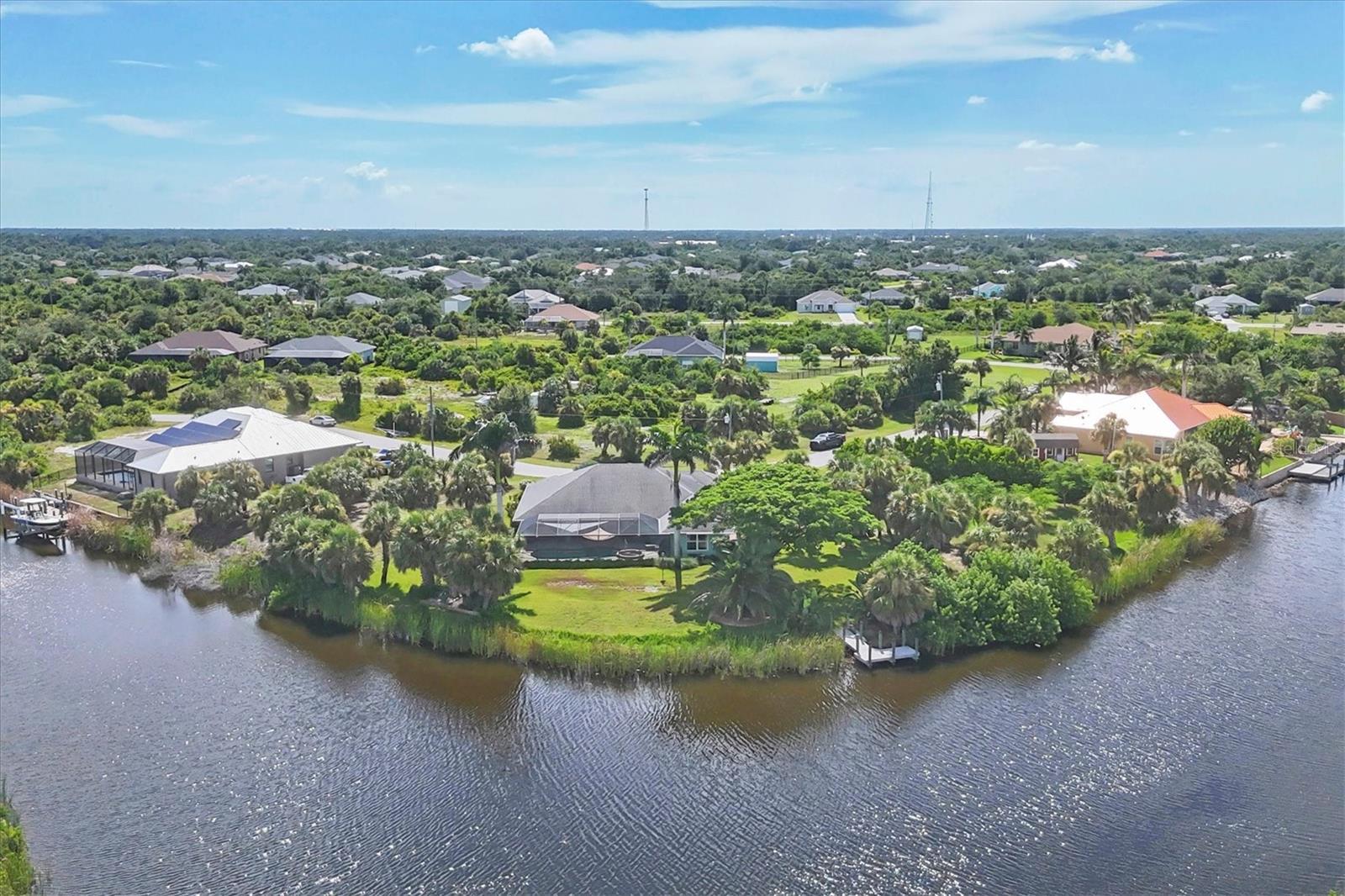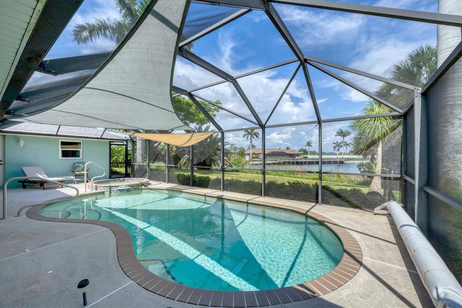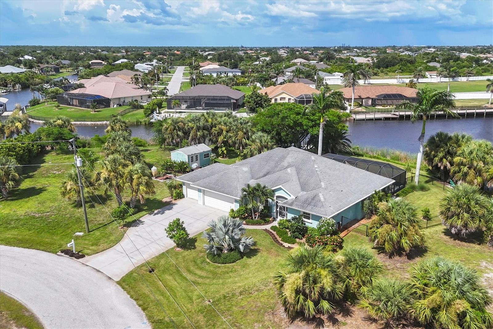 Welcome to your private slice of coastal paradise - A true lush tropical resort style estate with exceptional views, Gulf-access and sitting on just under an acre this beautiful expansive property has 319' of water frontage, and X FLOOD.. This estate blends refined elegance with tropical tranquility. The property is graced with an east-facing backyard, this rare offering has features that will wow you. With lush professionally landscaped grounds, and a resort-style heated pool and spa this property was designed for both relaxed living and sophisticated entertaining, to match the outstanding property the home delivers unmatched value and being offered below appraised value. Going into this home with equity has never felt better. This exquisite property and home are located in one of the most desirable waterfront neighborhoods; South Gulf Cove. Resilient & Secure- • Impact-rated windows & doors (with front door roll-down shutter) • Whole-house surge protection • generator connection • Security system in place for added peace of mind Efficient & Smart Design- • 2025 AC Unit installed • 2025 New Water Tank • Spray foam insulation in garage and living space • Dedicated 10x16 storage shed • Canal-fed irrigation system for lush landscaping • Oversized 3-car “screened” garage with additional 3rd door- tractor-bay door Outdoor Sanctuary & Entertainer’s Dream - • Heated pool and spa (chlorine-based system), complemented by a solar cover and overhead tarps for shade and year-round enjoyment • TREX dock offers low-maintenance, long-lasting waterfront access — just minutes to the Gulf by boat • Fenced southeast section of the property– perfect for pets, gardening, or privacy • Lush landscape designed by a Gardener/Master Naturalist, featuring native and tropical plants all the way to the water’s edge, creating a true backyard oasis Interior Highlights • Impressive chef’s kitchen features expansive granite countertops, abundant custom cabinetry, and a large breakfast bar overlooking stunning water views • 5x10 walk-in pantry • Office with custom built-in shelving – work in comfort and style • Open living spaces designed for entertaining and comfort • Elegant and functional layout with open-concept flow throughout the main living spaces • Positioned to take full advantage of serene canal and water views, this home is ideal for both entertaining and everyday luxury • New Carpet in bedrooms 9/2025 This home combines Florida waterfront living and exceptional value. Whether you're boating out to the Gulf, relaxing poolside, or enjoying the peaceful views, this property delivers lifestyle and luxury. A Truly Rare Offering. This estate presents a rare convergence of thoughtful design, engineering excellence, and tranquil waterfront lifestyle. From its robust construction and systems to the lush, curated grounds, every aspect of this home reflects quality and sophistication. South Gulf Cove has 10’ sidewalks, multiple parks, and is golf cart friendly. South Gulf Cove is considered a “Sportsman” community. The HOA is OPTIONAL Conveniently located between Sarasota and Fort Myers this location is perfect for anyone who loves the beach, boating, fishing, biking, kayaking and more. There are great restaurants, shopping, close to places of worship and medical facilities, close airports for easy travel, this is a prime location with all the conveniences you have grown accustomed to. Schedule your private showing today