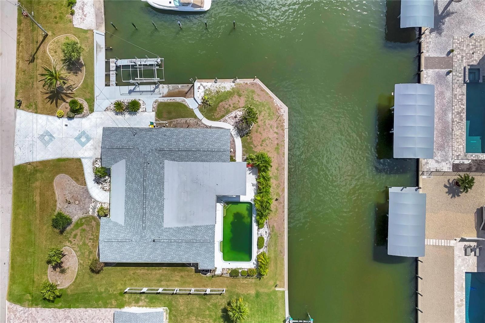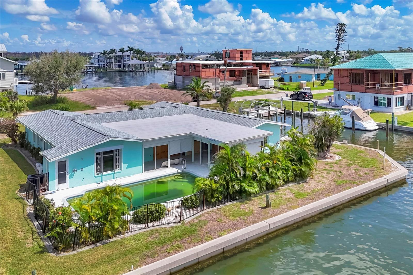 This waterfront home offers the perfect blend of location and potential, with quick and easy access with no bridges to Lemon Bay, Stump Pass and the Gulf of America for unbeatable Boating and Fishing. Featuring a private pool, and dock with boat lift, this property is a dream for water lovers. This unique property is situated on an extra large lot with a desirable south facing backyard. A very unique side cut in for extra large boats, and ample storage space for all of your boating needs. Some recent updates are newer seawall, and a new roof in 2022. The home sustained damage from the recent storms and now presents a blank canvas for you to design and customize to your taste, whether you’re looking to create a coastal retreat or a full-time waterfront paradise, this is your chance to bring your vision to life in an unbeatable location.