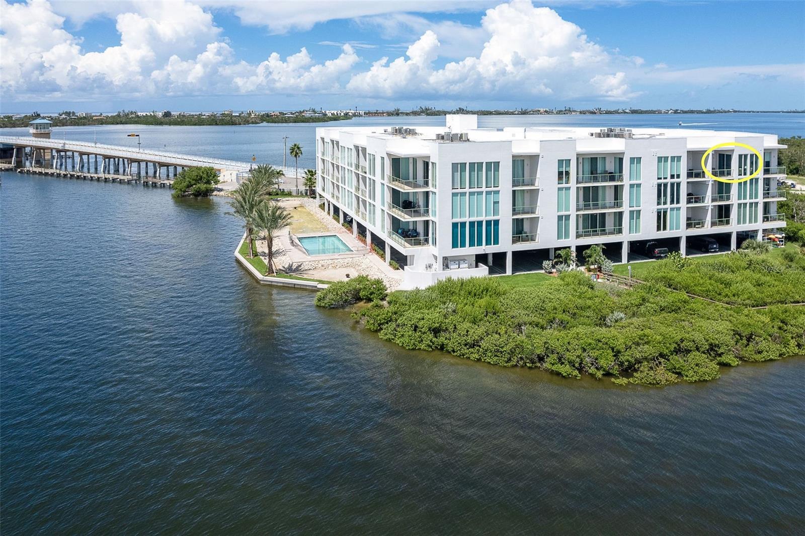 TOP FLOOR, SPECTACULAR VIEWS, BOAT SLIP #30, ONE MILE TO THE BEACH - Enjoy the Gulf Coast lifestyle at Redfish Key Villas with easy access to the beaches of Manasota Key, Palm Island and Boca Grande. Experience world class fishing, boating, golfing and dining in the heart of Englewood and surrounding villages of Venice and Boca Grande. There is nothing quite like Redfish Key Villas with its unique setting at the water’s edge, superior construction, modern design, and upscale residences. This top floor, open-concept, split plan residence delivers a luxury lifestyle like no other. Prepare to be wowed by twelve-foot ceilings and incredible views of Lemon Bay and Redfish Cove. Ten-foot, hurricane impact resistant windows and sliding glass doors allow natural light to pour in. The interior finishes include tile flooring in the main living areas, custom wood cabinetry with granite tops throughout, and luxury stainless appliances. Relax on your private balcony and enjoy endless views of osprey, dolphin, and manatee. Lounge by the heated pool or walk to local beaches, shops and restaurants. This stunning residence is ready for immediate enjoyment and includes assigned boat slip #30. Do not miss this opportunity!