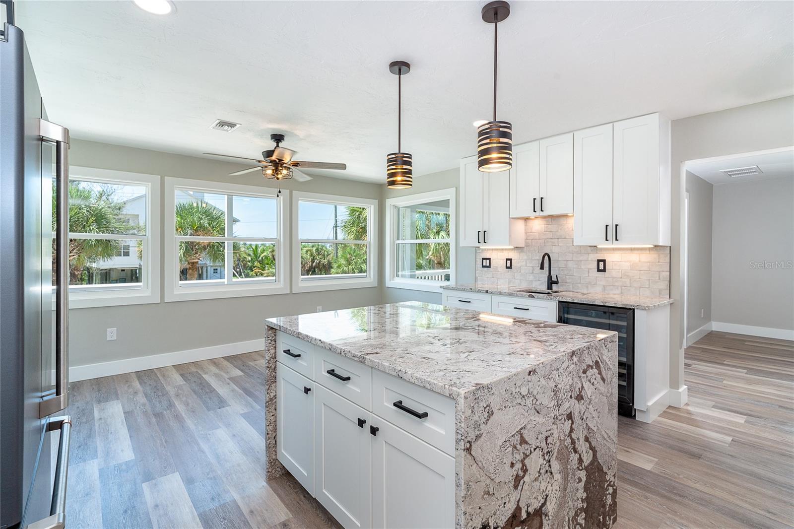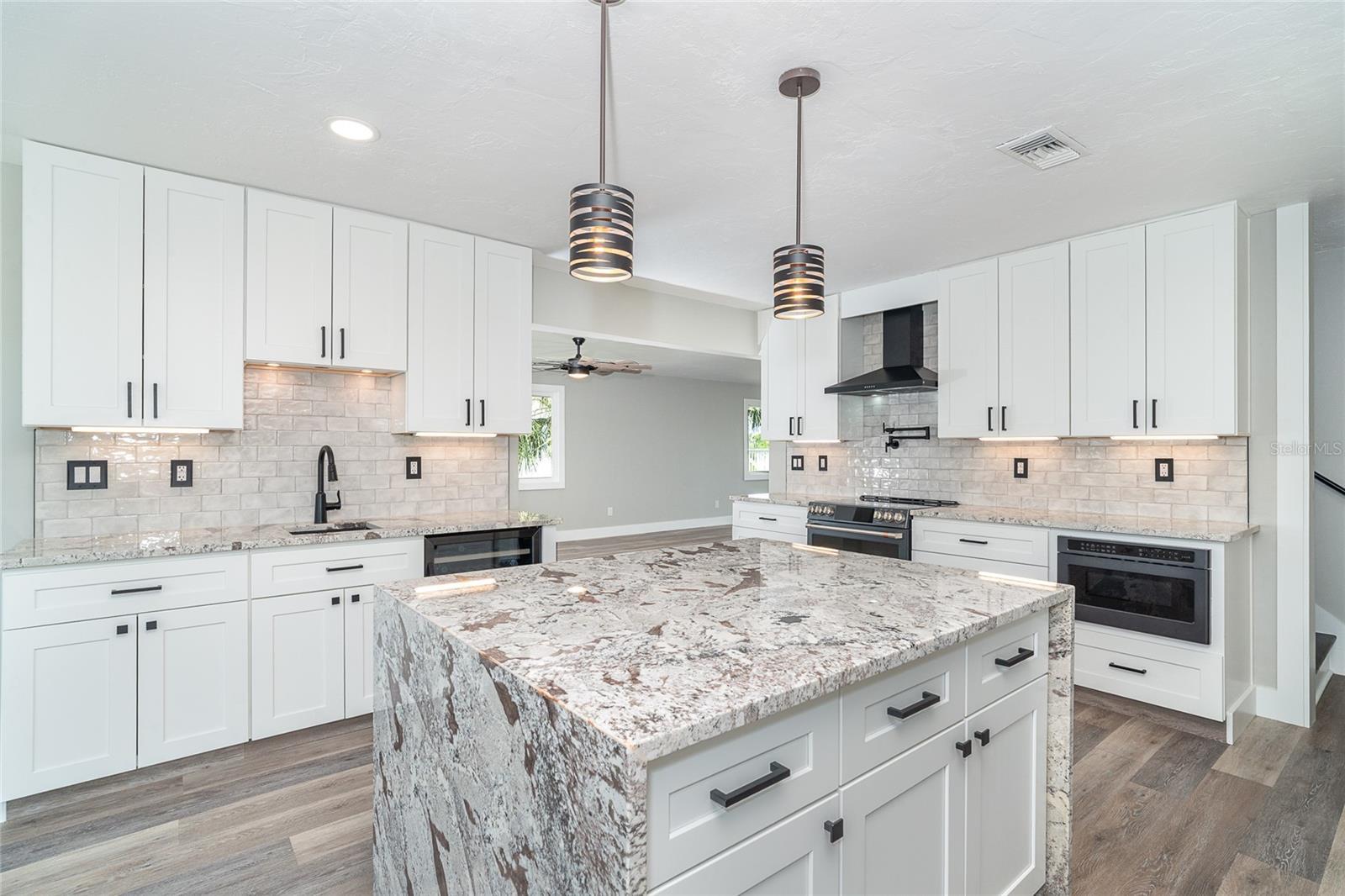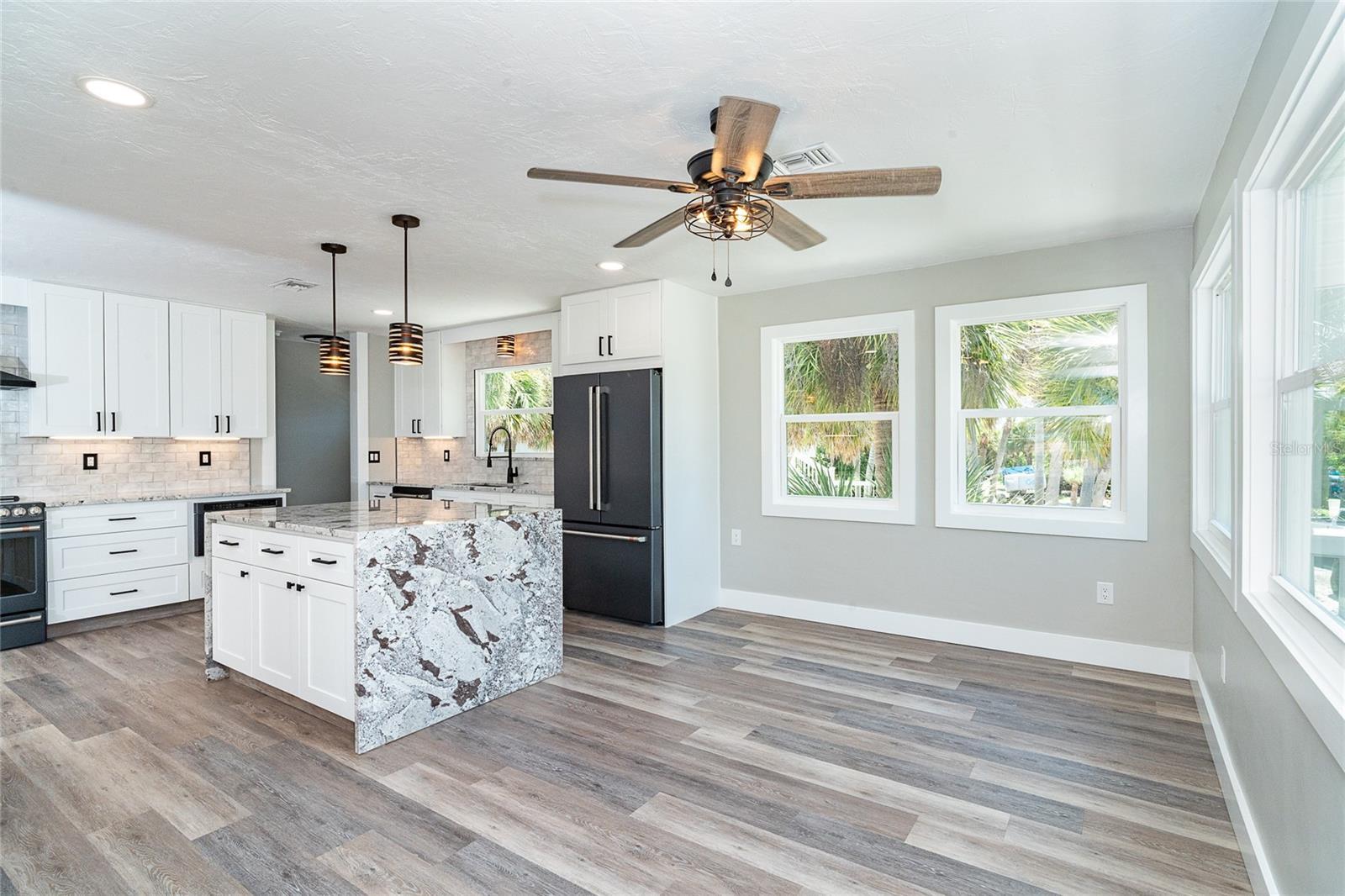 - Ceiling Fans(s), Eat-in Kitchen, Kitchen/Family Room Combo, Living Room/Dining Room Combo, Open Floorplan, Solid Wood Cabinets, Stone Counters